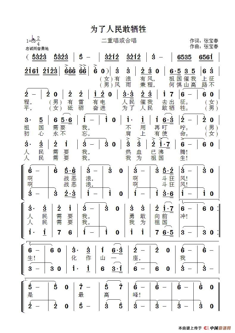 关于《为了人民敢牺牲》曲谱的评论