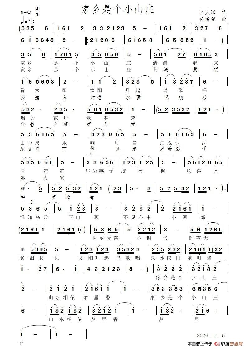 家乡是个小村庄(任清彪曲)(1)_原文件名:39 家乡是个小村庄.jpg