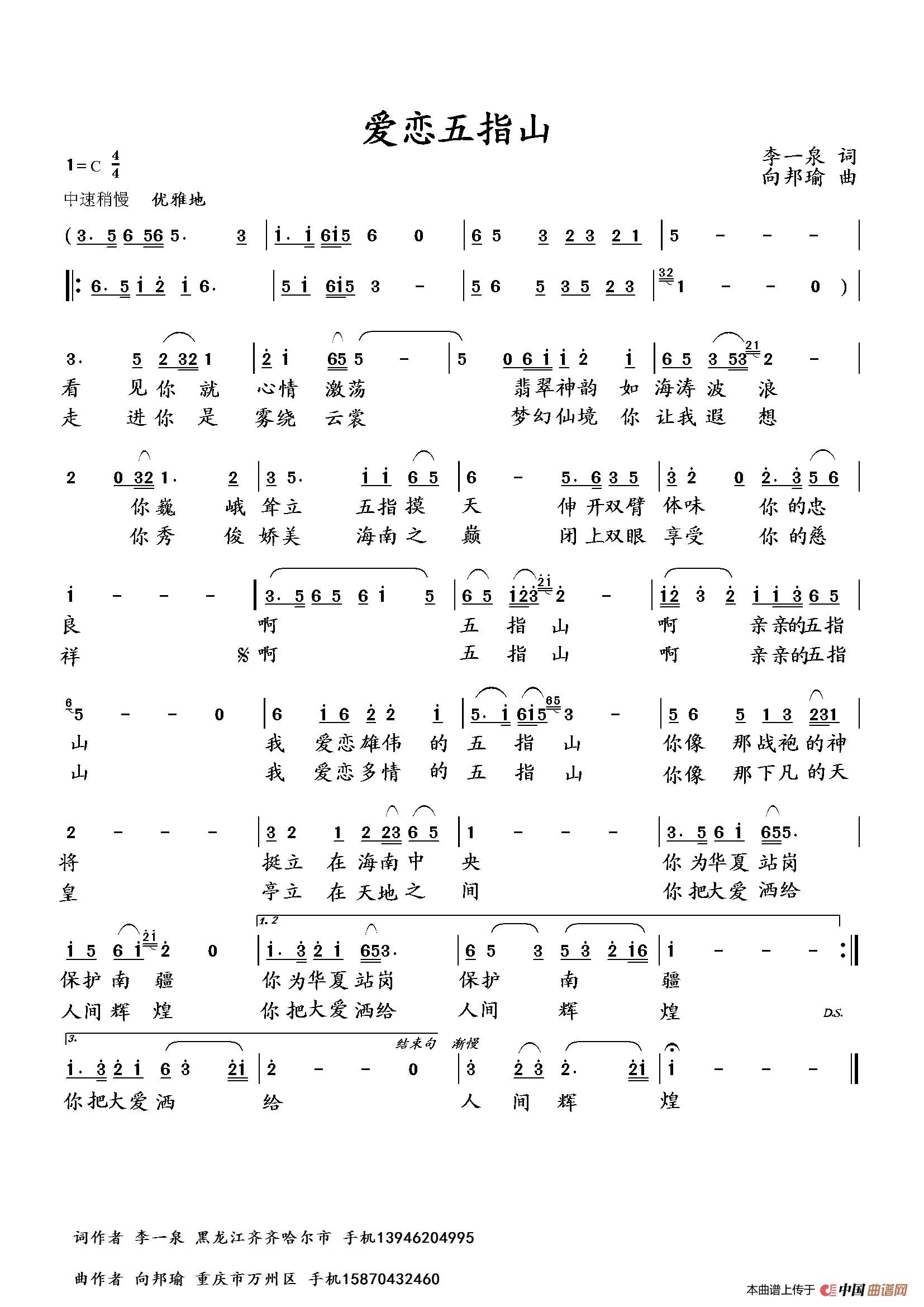 作词:李一泉   作曲:向邦瑜   演唱(奏):向邦瑜   来源:原创歌曲   上传:向邦瑜   日期:2020-02-24   浏览次数: