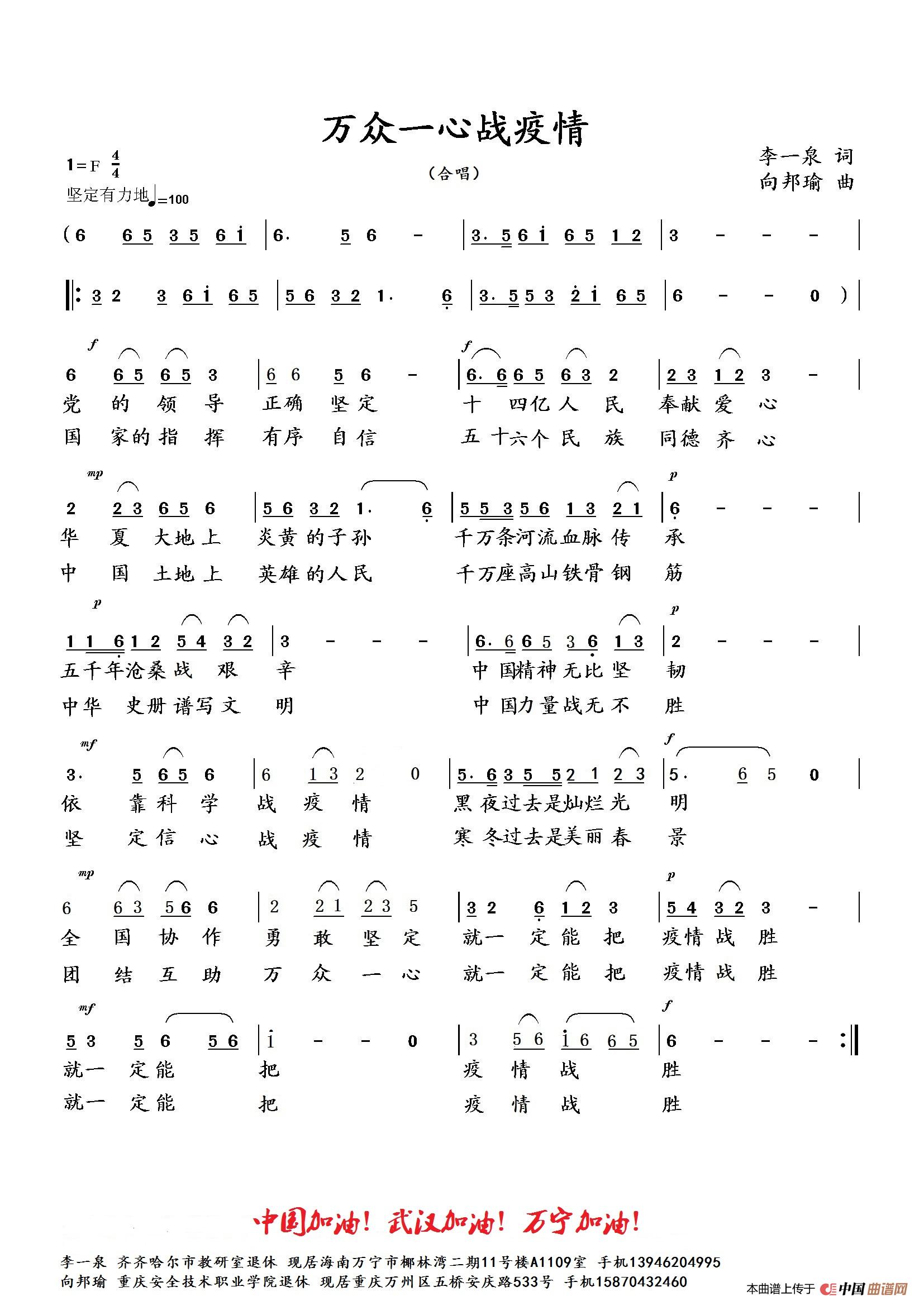 作词:李一泉   作曲:向邦瑜   演唱(奏):向邦瑜   来源:原创歌曲   上传:向邦瑜   日期:2020-02-24   浏览次数: