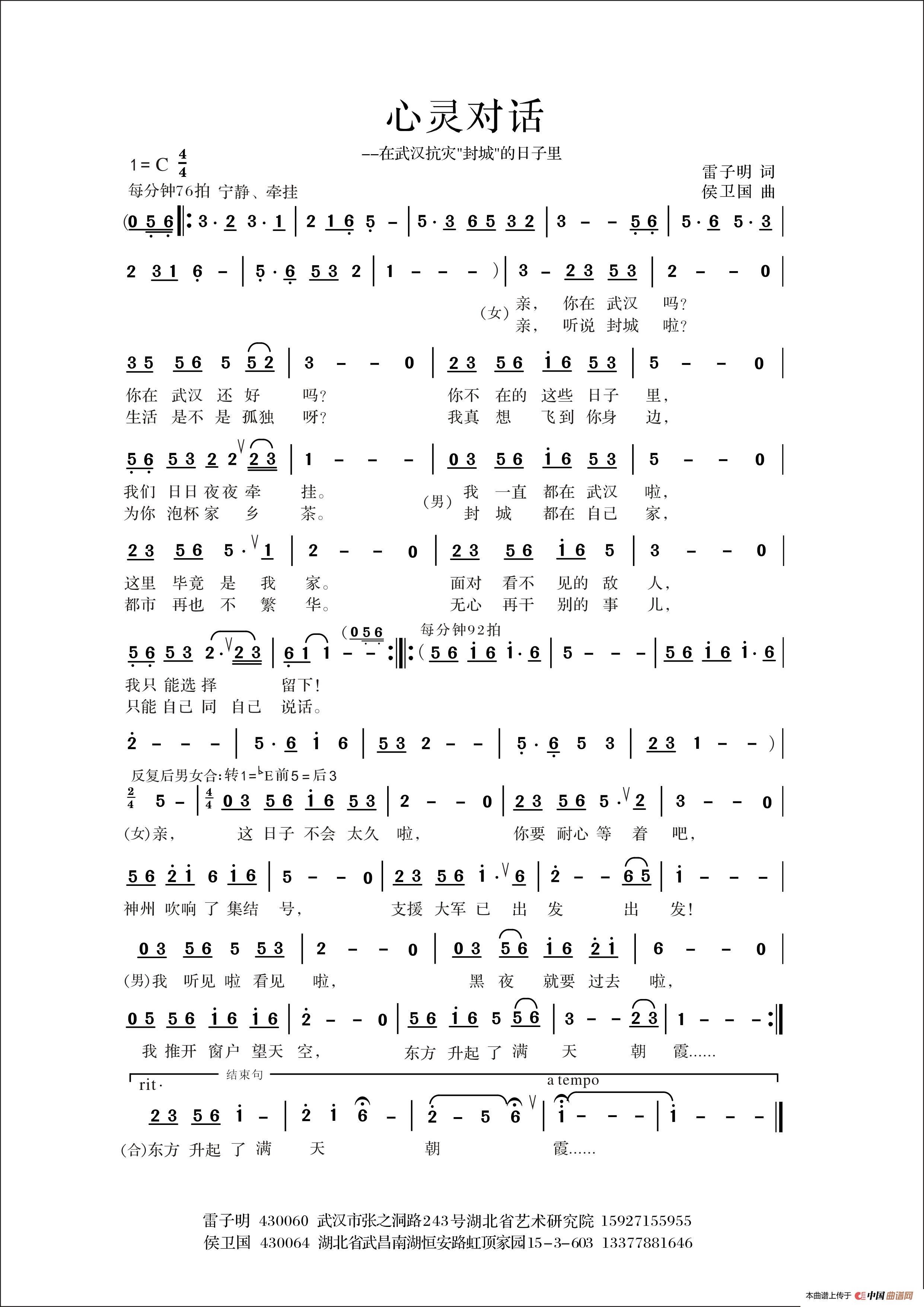 关于《心灵对话》曲谱的评论
