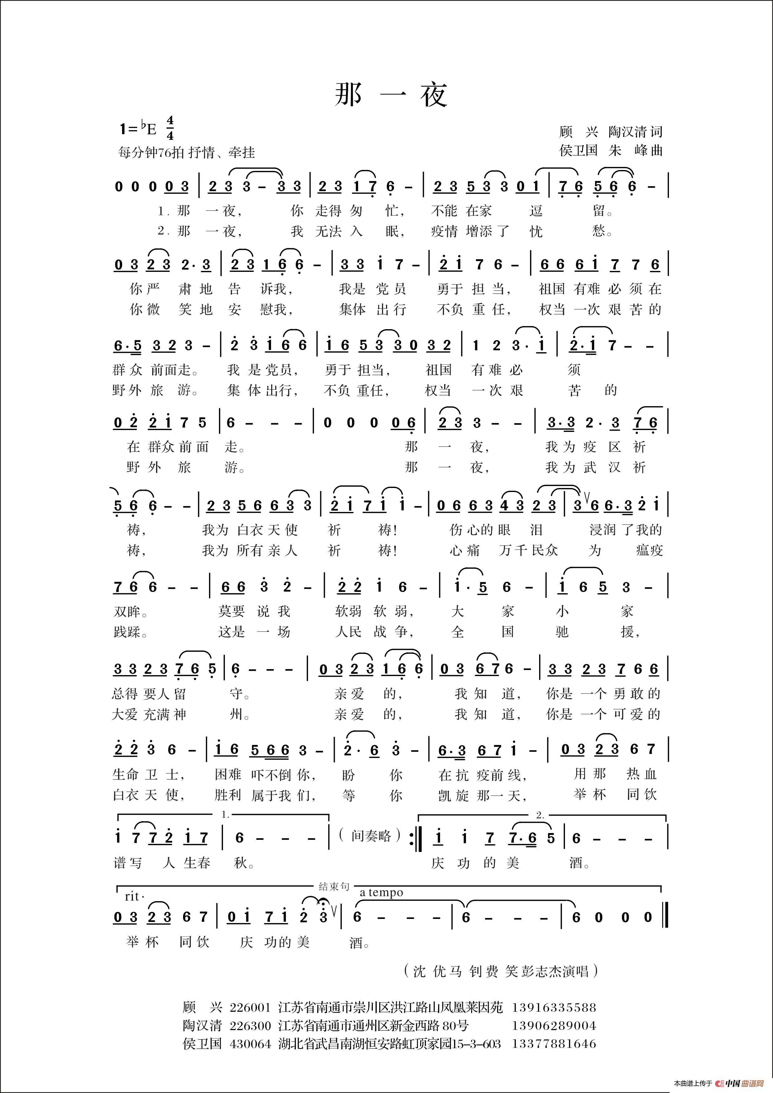 作词:顾兴 陶汉清 作曲:侯卫国 朱峰 演唱(奏):沈优 马钊 费笑 彭志杰 来源:谱友侯卫国上传 上传:侯卫国