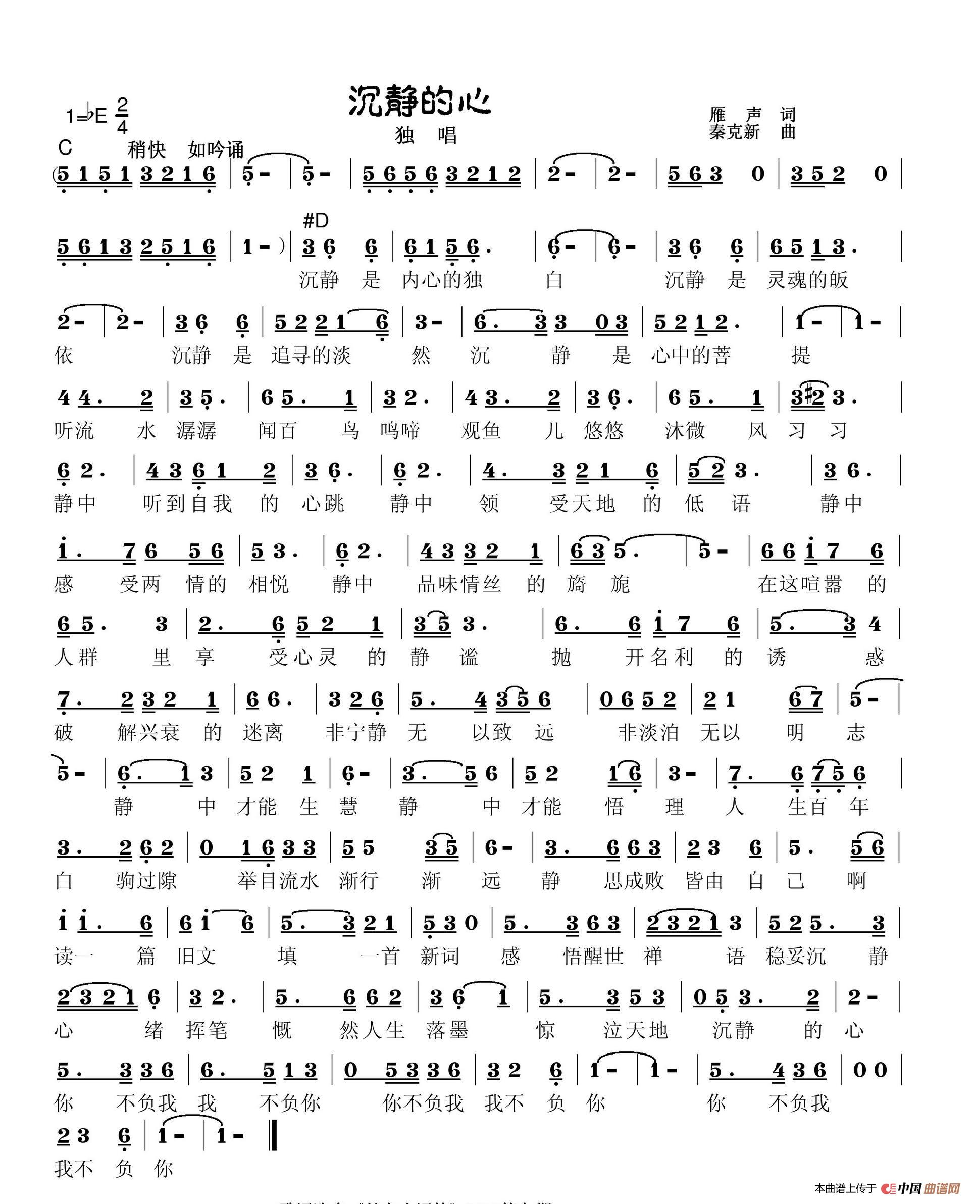 作词:雁声   作曲:秦克新   来源:谱友雁声上传   上传:雁声   日期:2020-02-27   浏览次数: