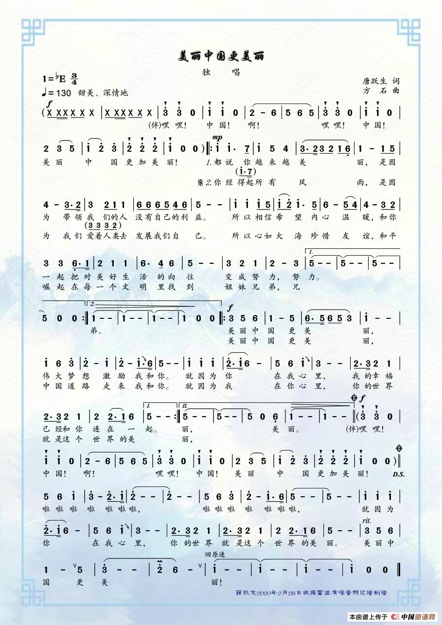 关于《美丽中国更美丽》曲谱的评论