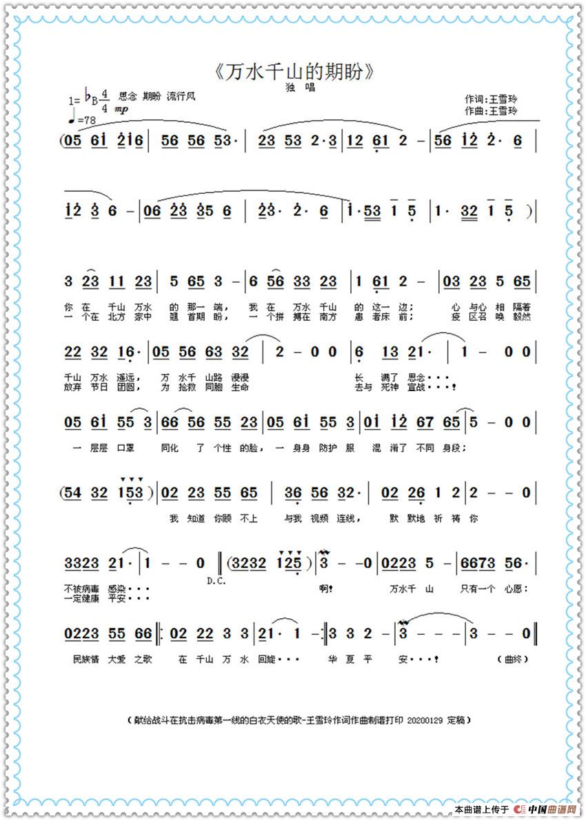 (献给找都在抗疫第一线的白衣天使们的赞歌 王雪玲作词作曲制谱打印 2020-03-08 上传中国曲谱网)三八节快乐!