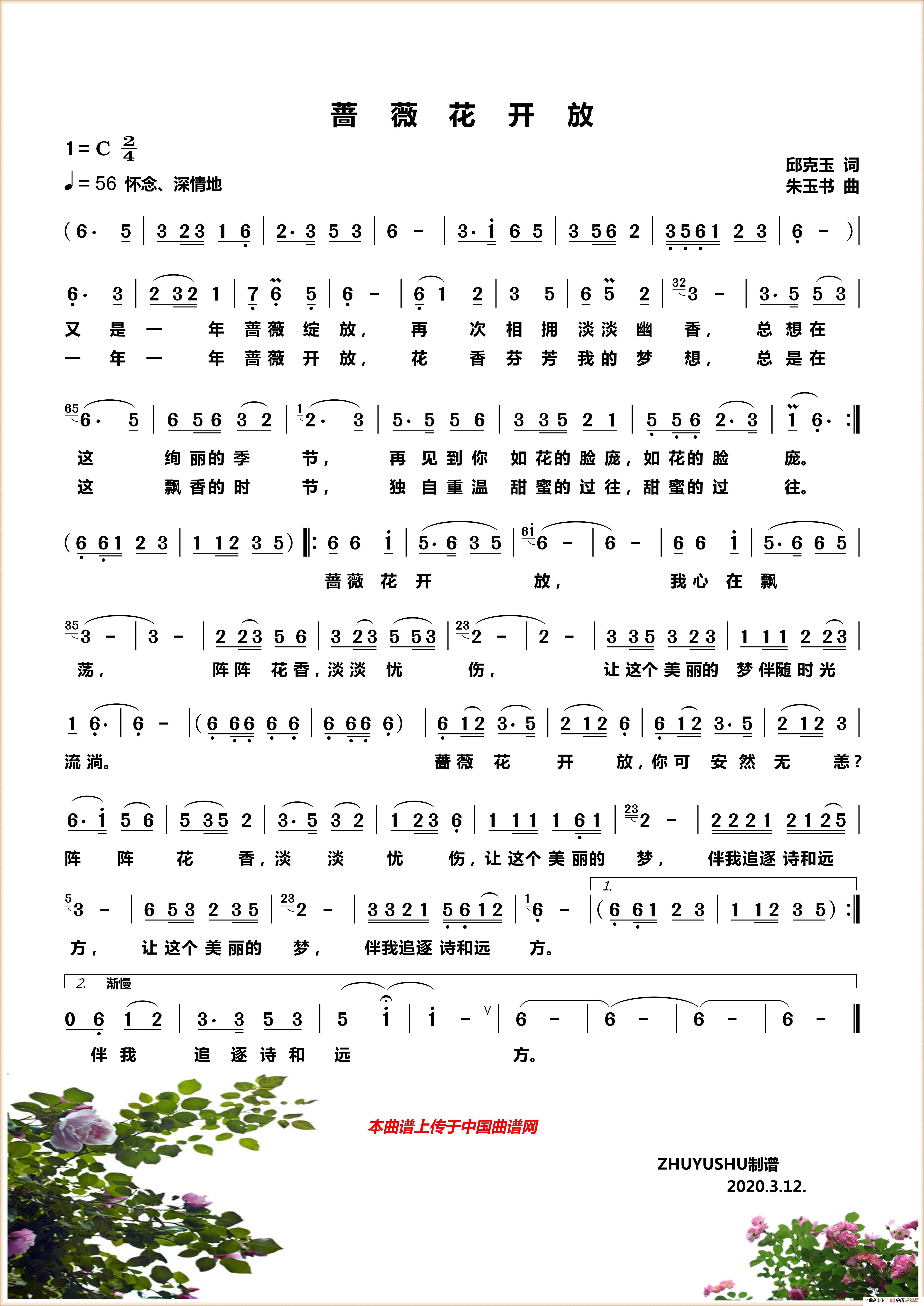 关于《蔷薇花开放》曲谱的评论