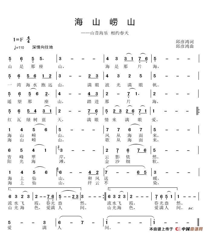 作词:邱彦鸿   作曲:邱彦鸿   来源:原创   上传:邱qyhlyg   日期:2020-03-17   浏览次数: