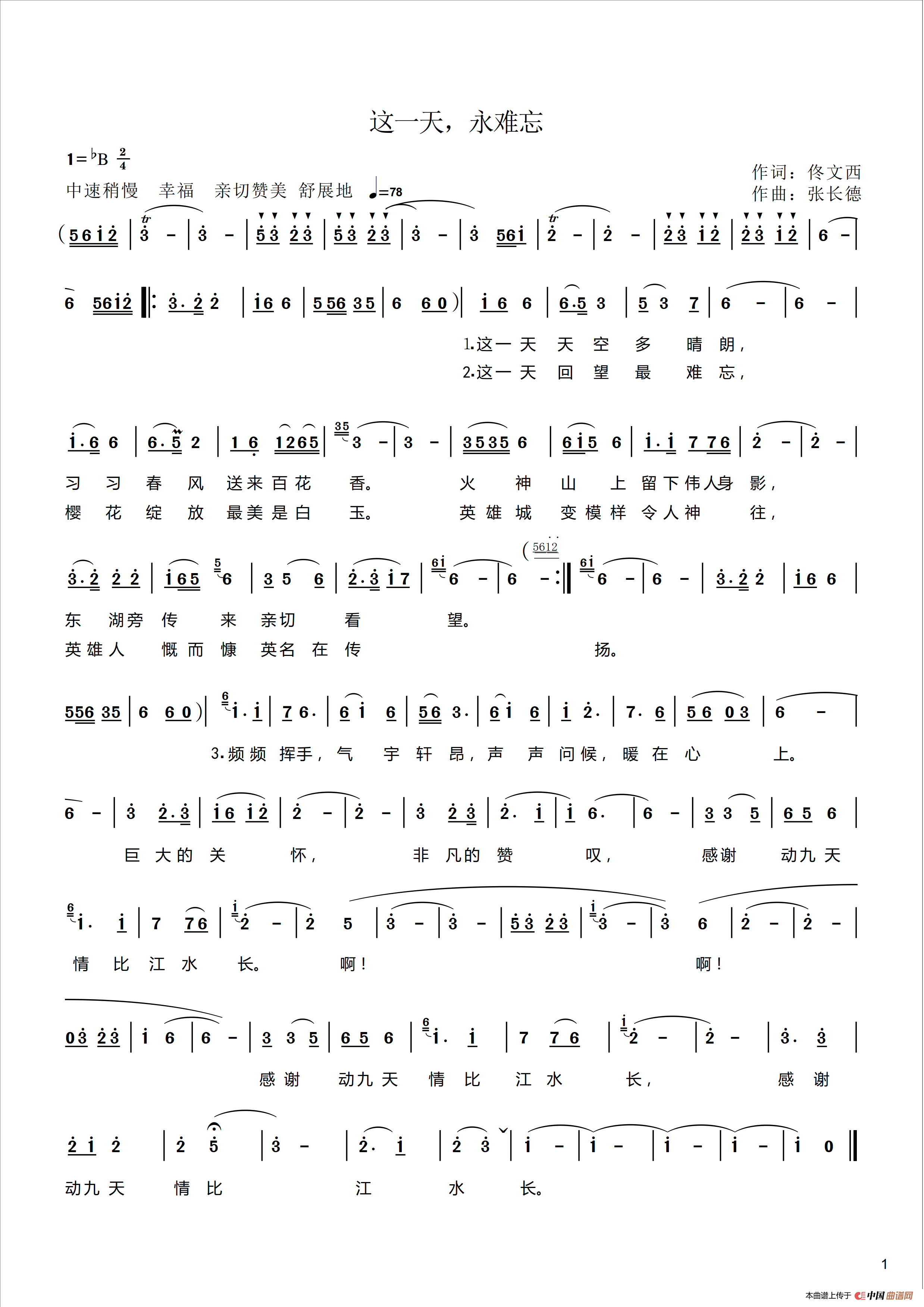 作词:佟文西   作曲:张长德   来源:谱友张长德上传   上传:张长德   日期:2020-03-23   浏览次数: