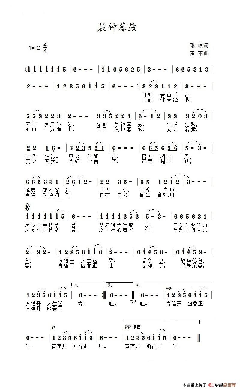 关于《晨钟暮鼓》曲谱的评论