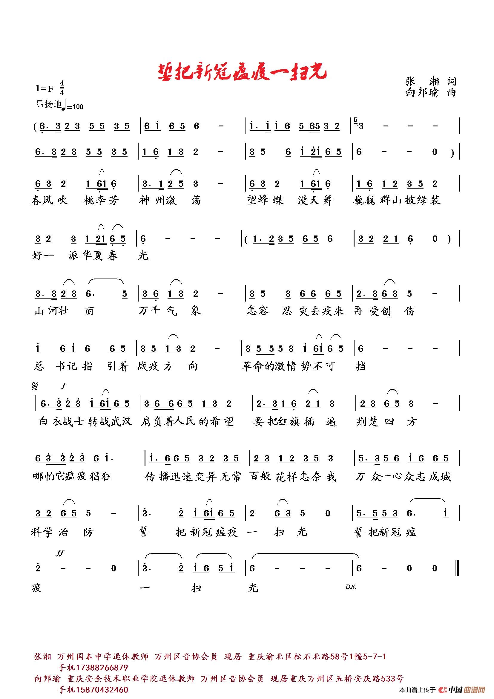 作词:张湘   作曲:向邦瑜   演唱(奏):向邦瑜   来源:原创歌曲   上传:向邦瑜   日期:2020-04-03   浏览次数:
