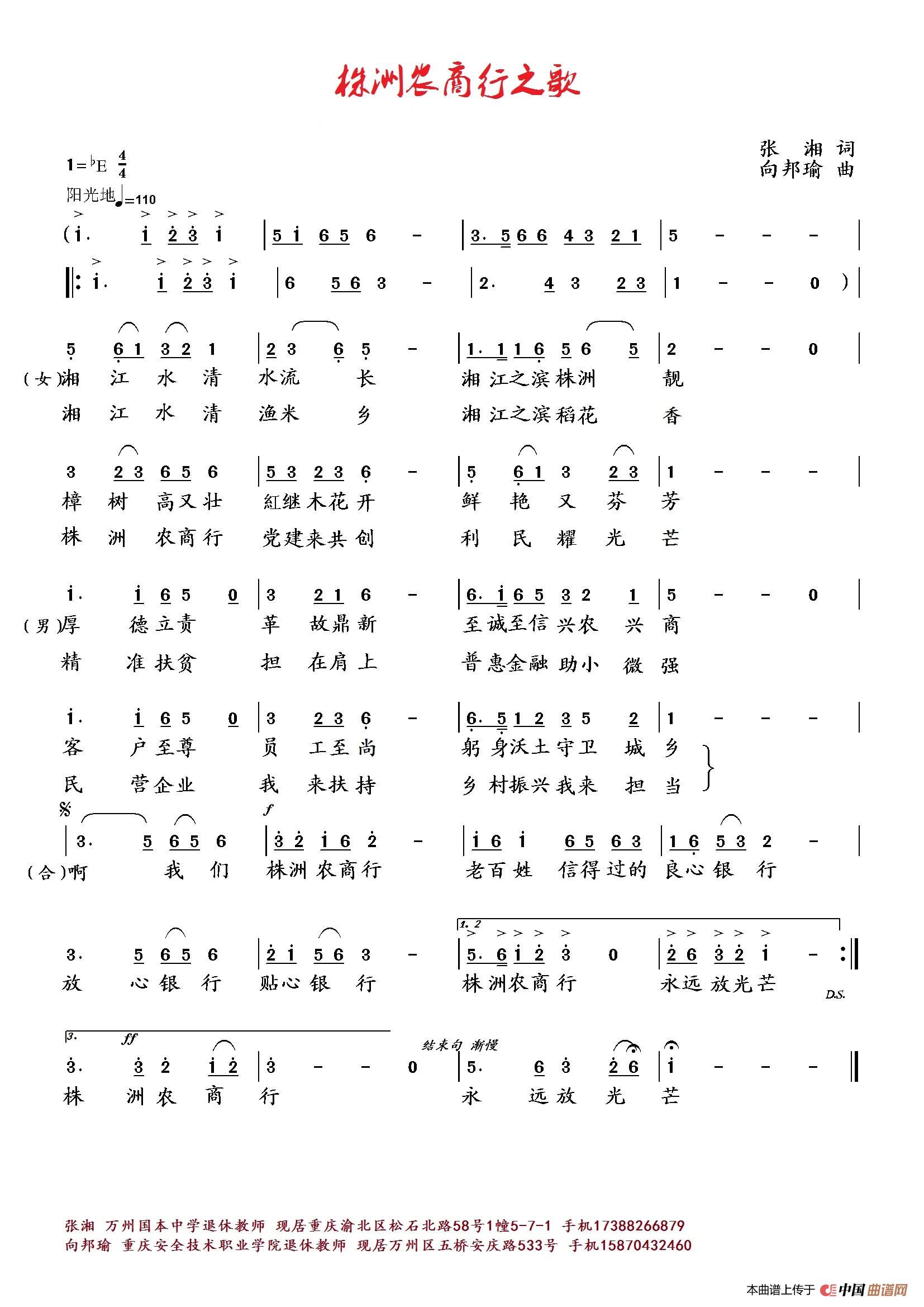 《株洲农商行之歌》文本歌词