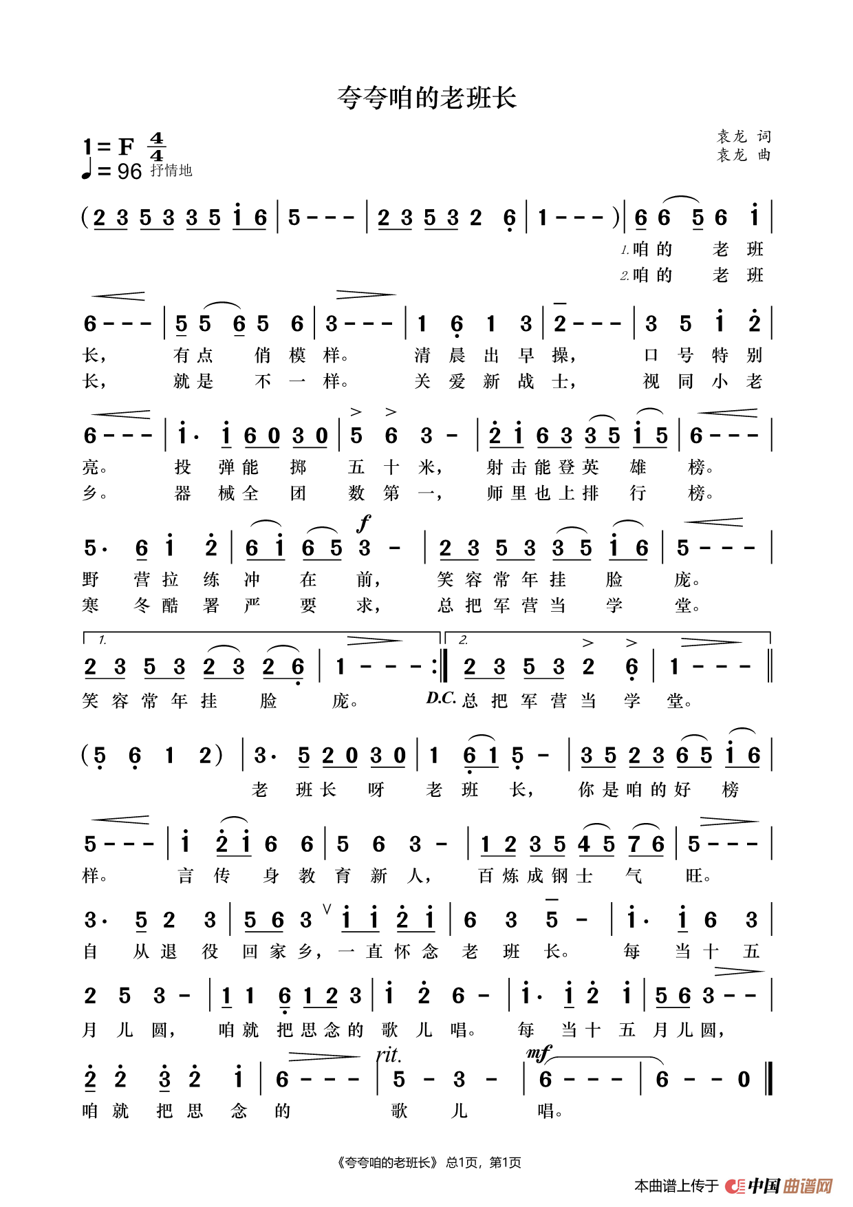 咱的老班长,有点俏模样。清晨出早操,口号特别亮。投弹能掷五十米,射击能登英雄榜。野营拉练冲在前,笑容常年挂脸庞。咱的老班长,就是俏模样。