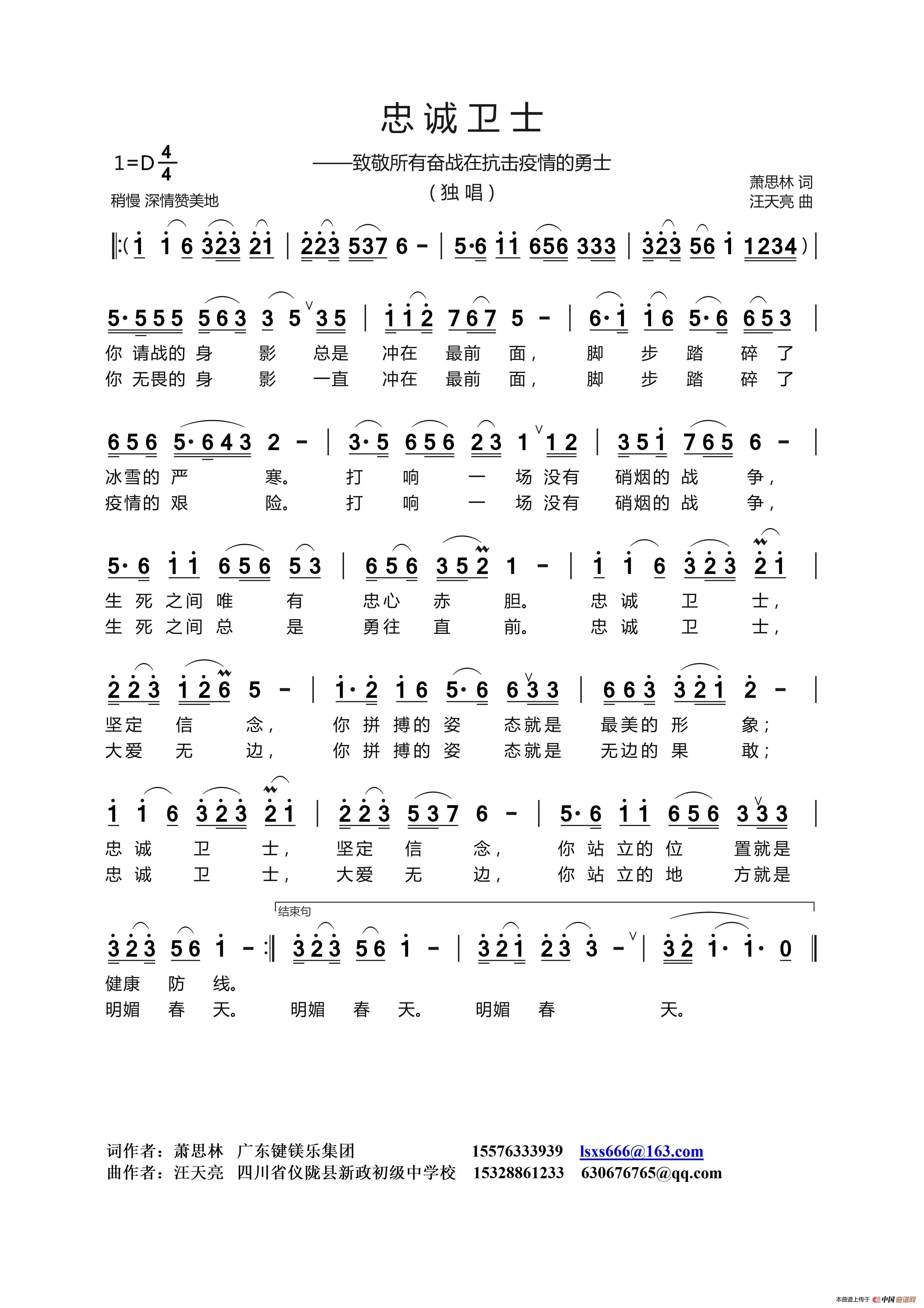 作词:萧思林   作曲:汪天亮   来源:原创曲谱   上传:汪天亮   日期:2020-05-18   浏览次数: