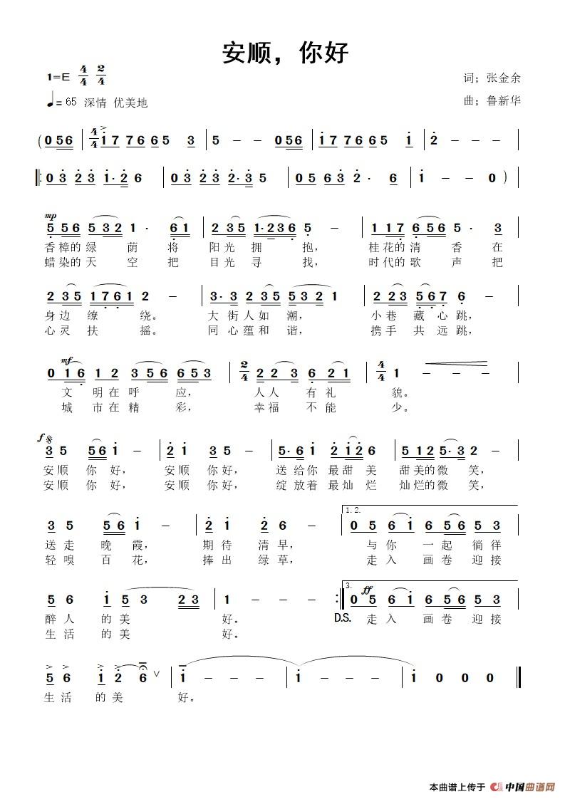 关于《安顺,你好》曲谱的评论