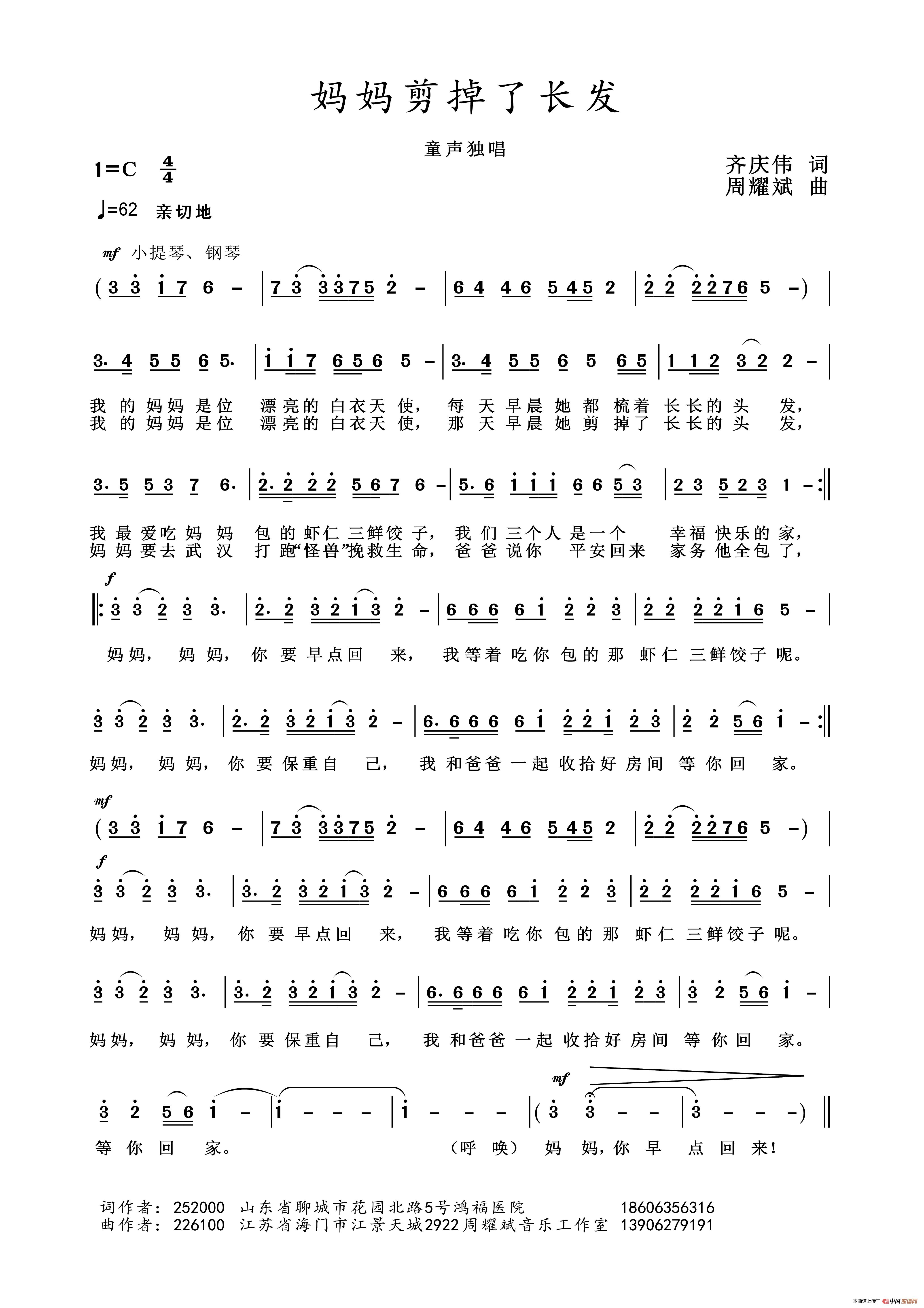 2020抗疫组歌《妈妈剪掉了长发》(齐庆伟作词、周耀斌作曲)