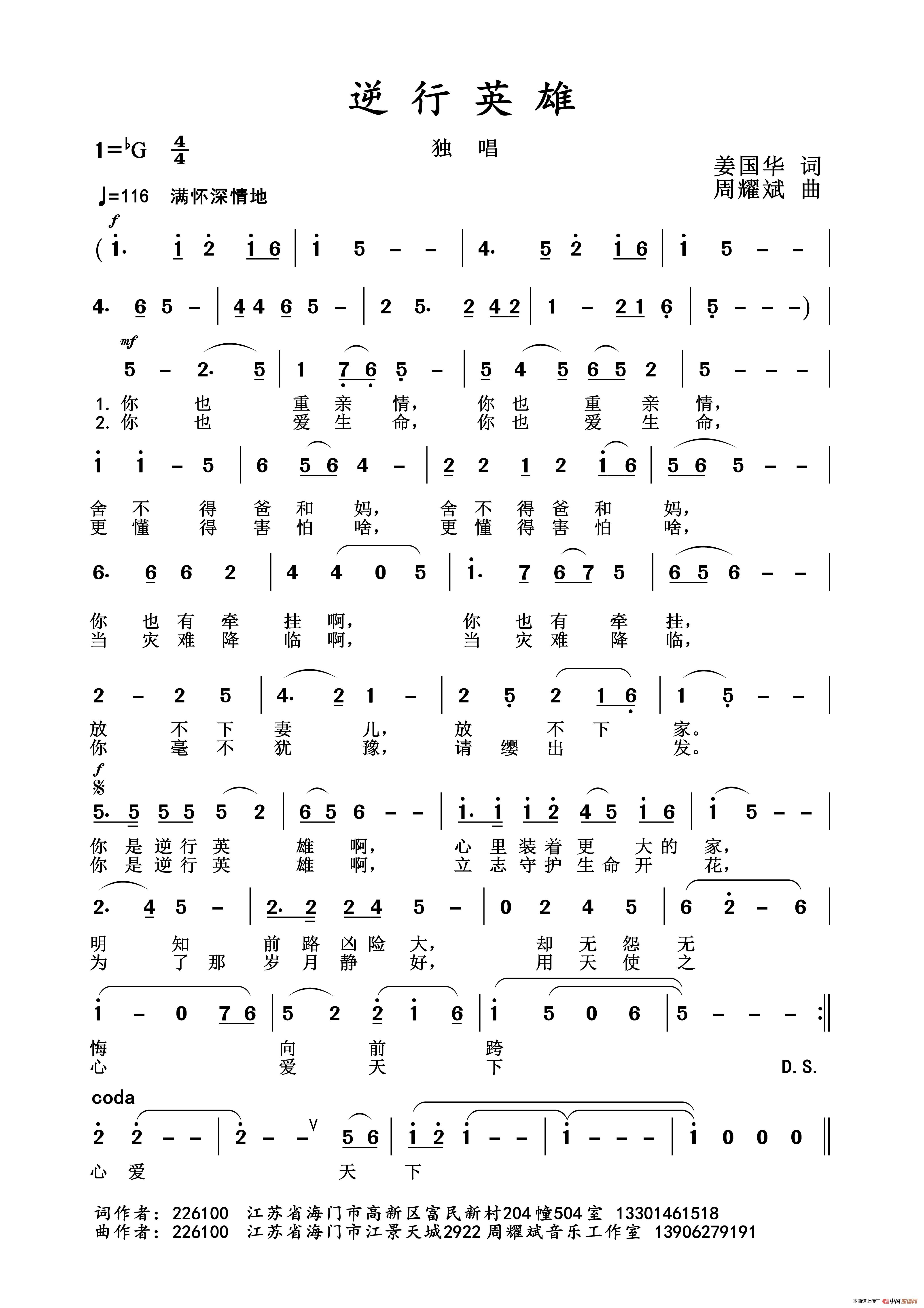 2020抗疫组歌《逆行英雄》(姜国华作词、周耀斌作曲)(1)_原文件名:逆行英雄@.jpg