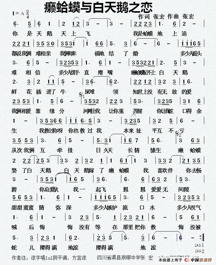 关于《癞蛤蟆与白天鹅之恋》曲谱的评论