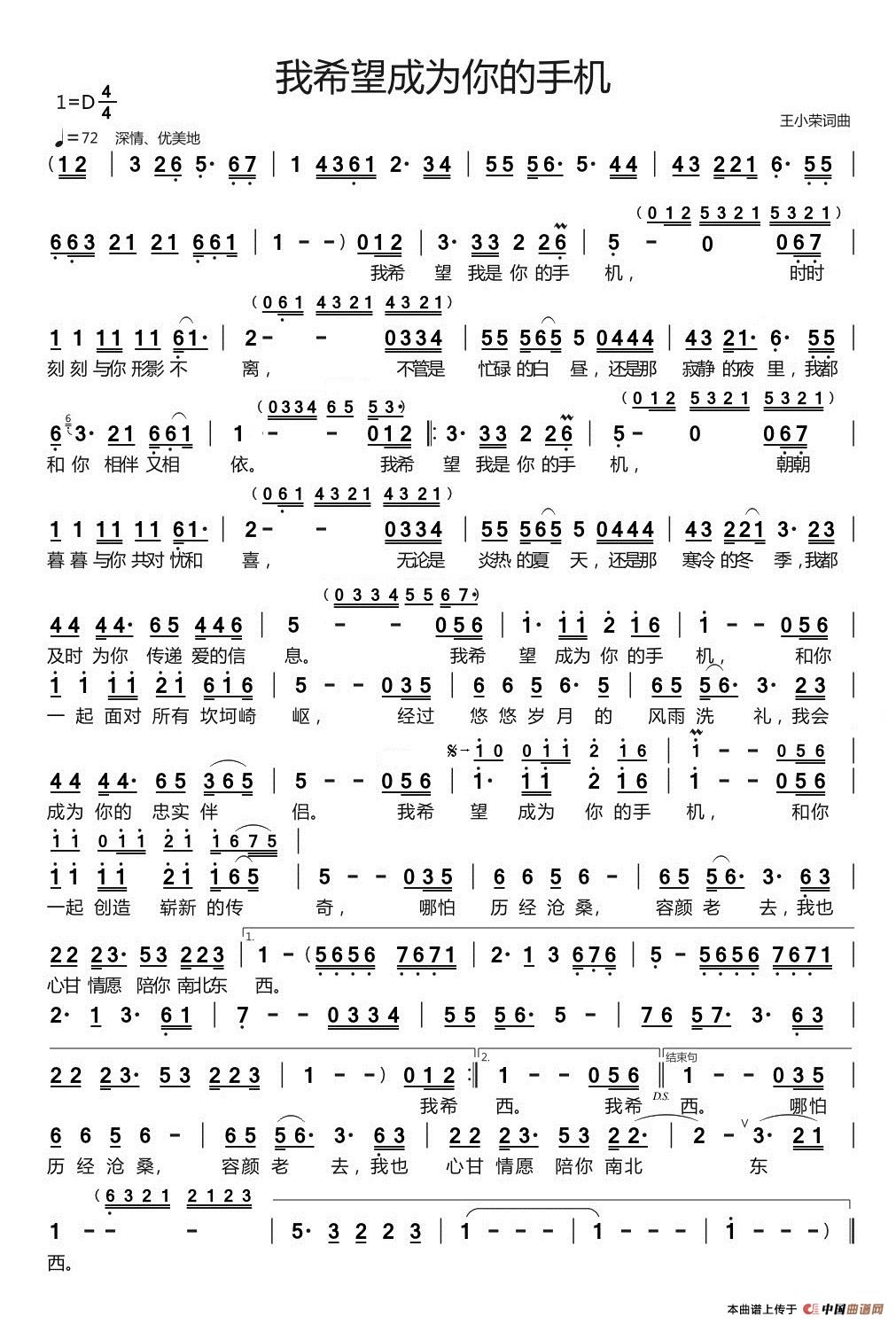 王小荣作词作曲并和肖萍共同演绎的《我希望成为你的手机》歌词很有现代气息。现代人都手不离机,手机成为了当今社会的重要工具,为人们的工作、学习、生活等带来了很多的方便和帮助。歌曲节奏明快,旋律优美,朗朗上口,唱出了当代人的心声,愿我们都成为爱人的手机,永生不离不弃,共创美好生活。
