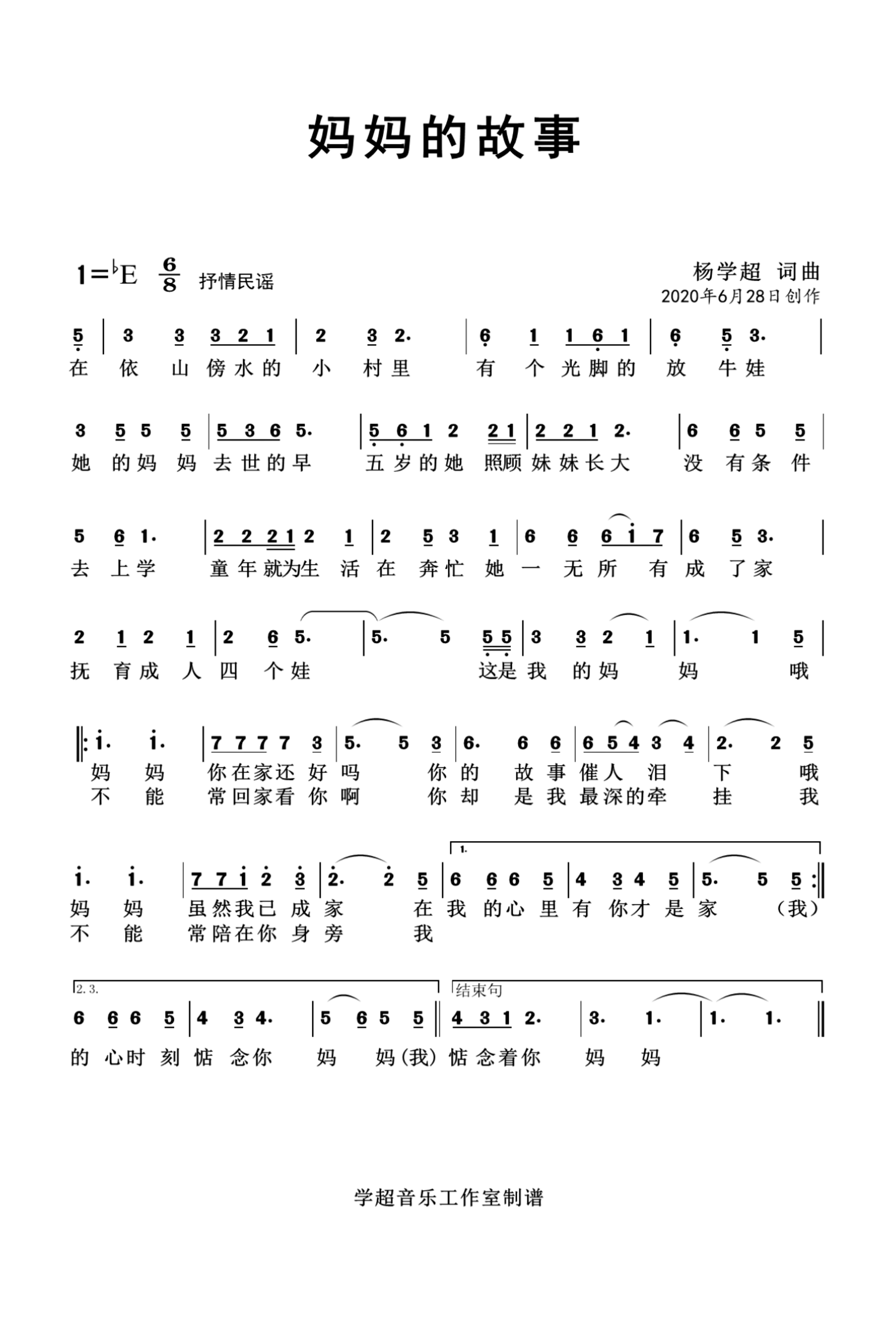 音乐人杨学超原创曲谱专栏