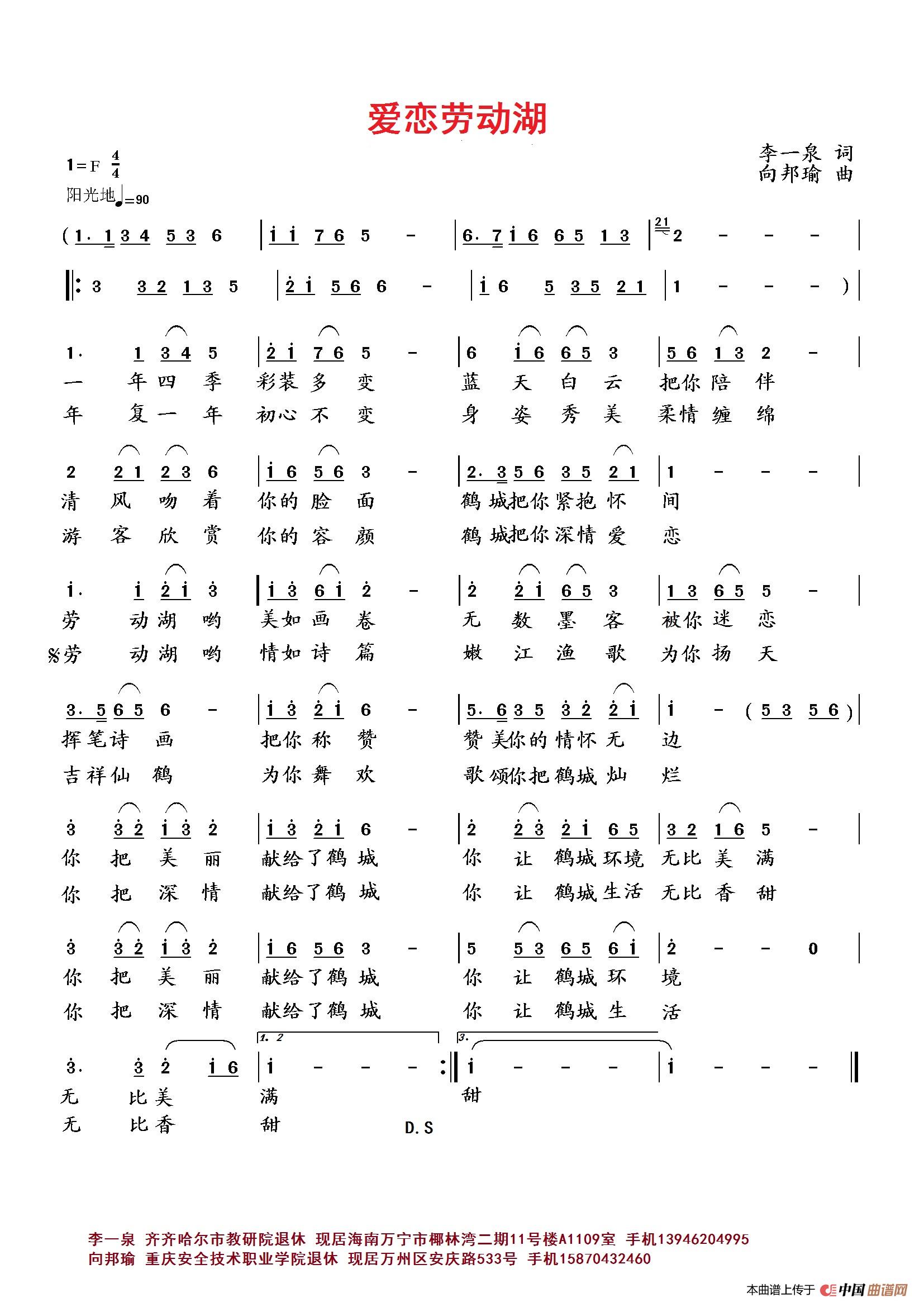 劳动湖哟情如诗篇,嫩江渔歌为你扬天;吉祥仙鹤为你舞欢,歌颂你把鹤城灿烂!