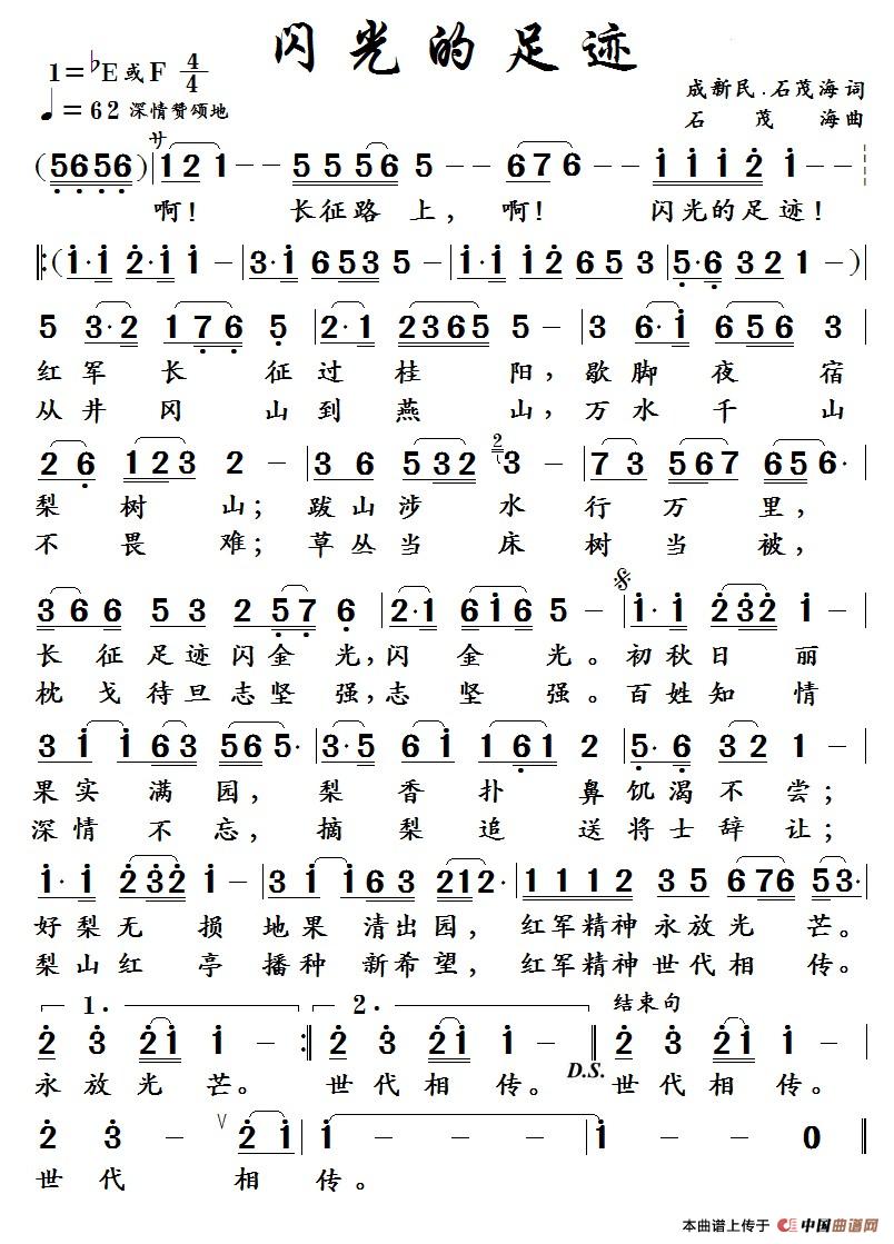《闪光的足迹 (红军夜宿梨山之歌)》文本歌词