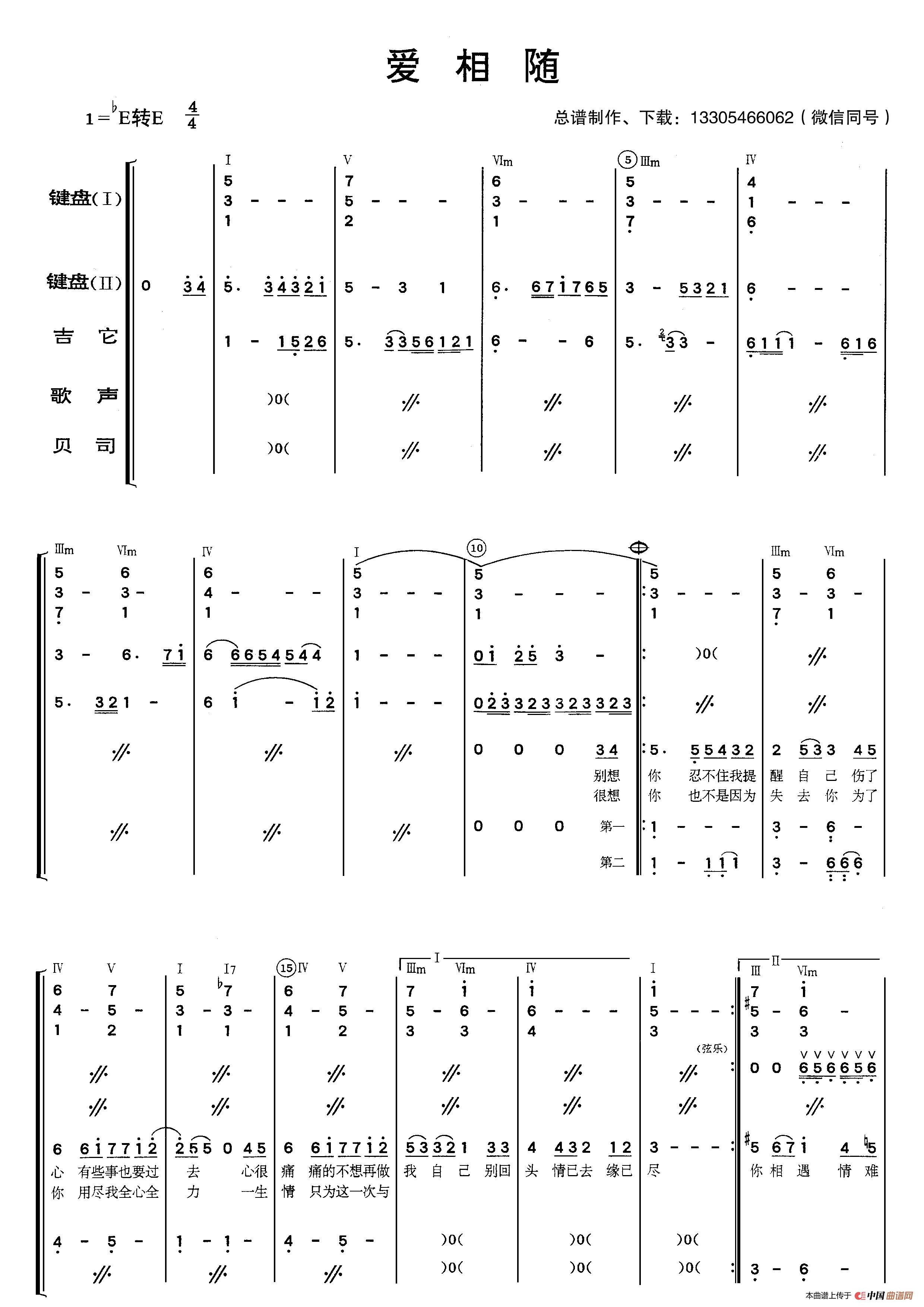 提示:在曲谱图片上单击右键,选择"图片另存为..."即可将曲谱保存到您的电脑中,打印时候可将图片插入到WORD中,调整合适大小打印即可。