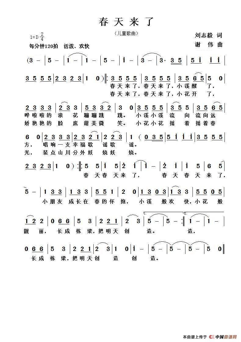 春天来了(刘志毅词  谢伟曲)(1)_原文件名:春天来了..JPG