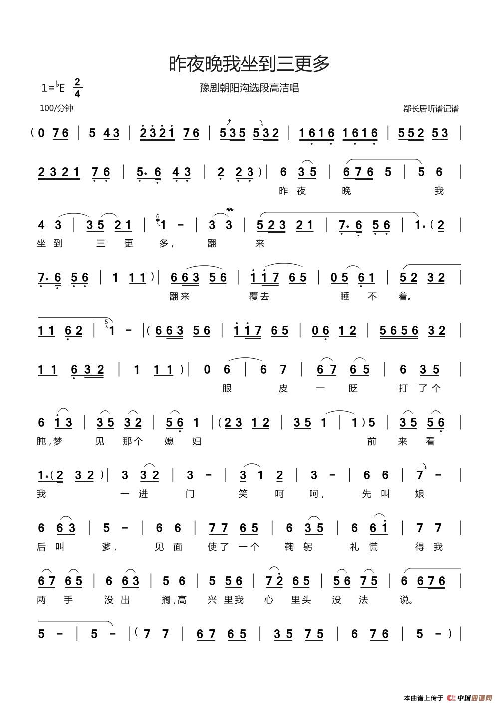 关于《昨夜晚我坐到三更多》曲谱的评论