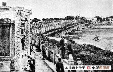 (三)引用著名抗战歌曲(创作歌曲)作为素材,以全曲或片段作为音乐主题、音乐动机,创作改编为《华北抗日民歌音乐史诗》某些乐章之前的器乐短曲,称为《前奏曲》,作为民歌合唱出现之前的铺垫、导引、烘托,收得抗日民歌与抗战创作歌曲相得益彰的效果。