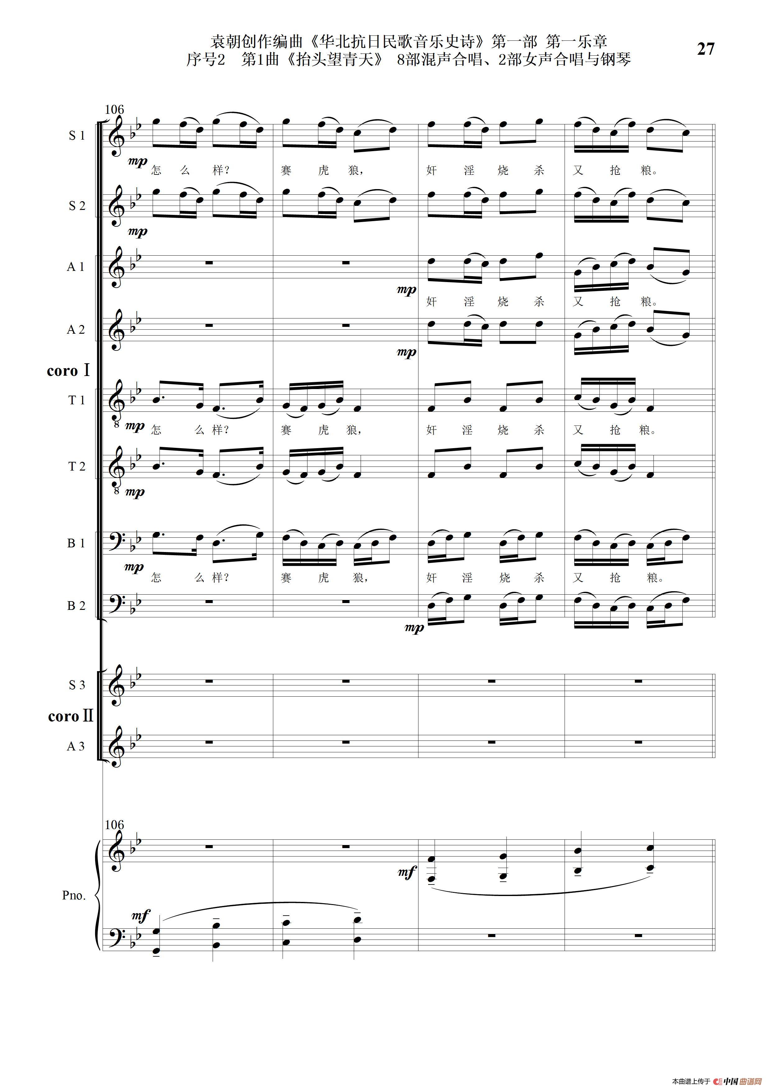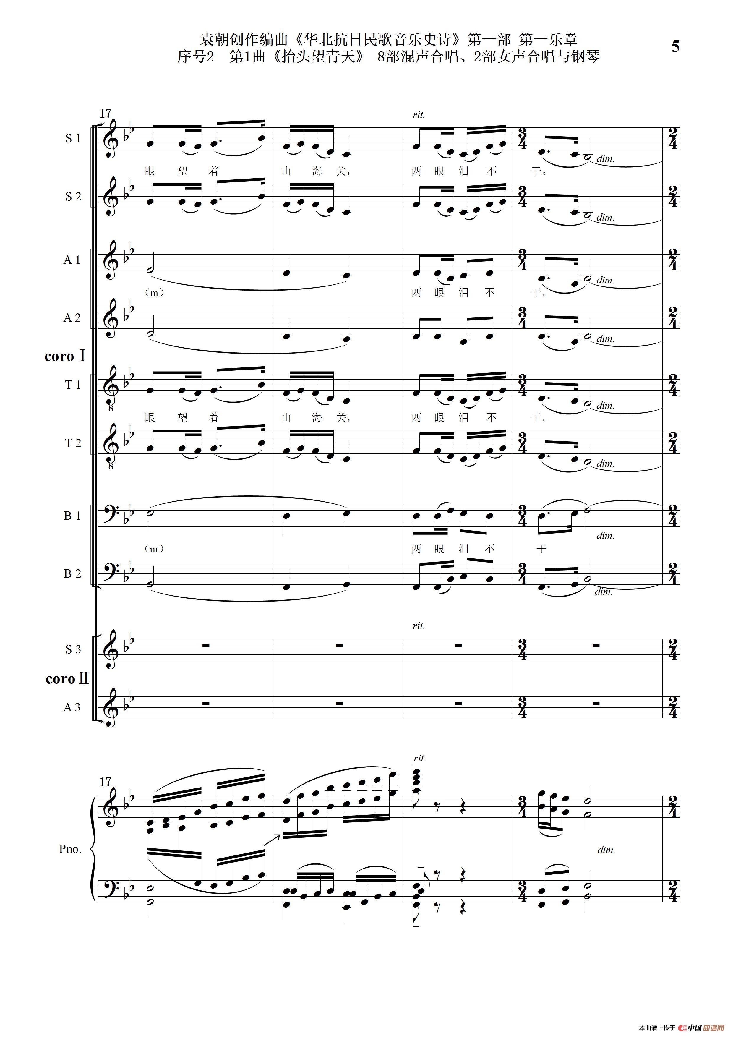 序号2第1曲《抬头望青天》双合唱团与钢琴