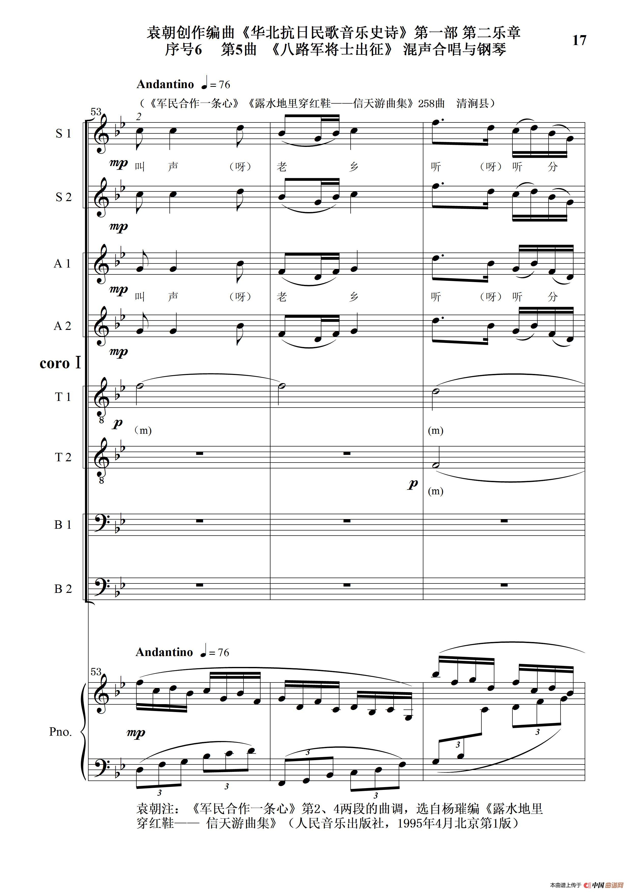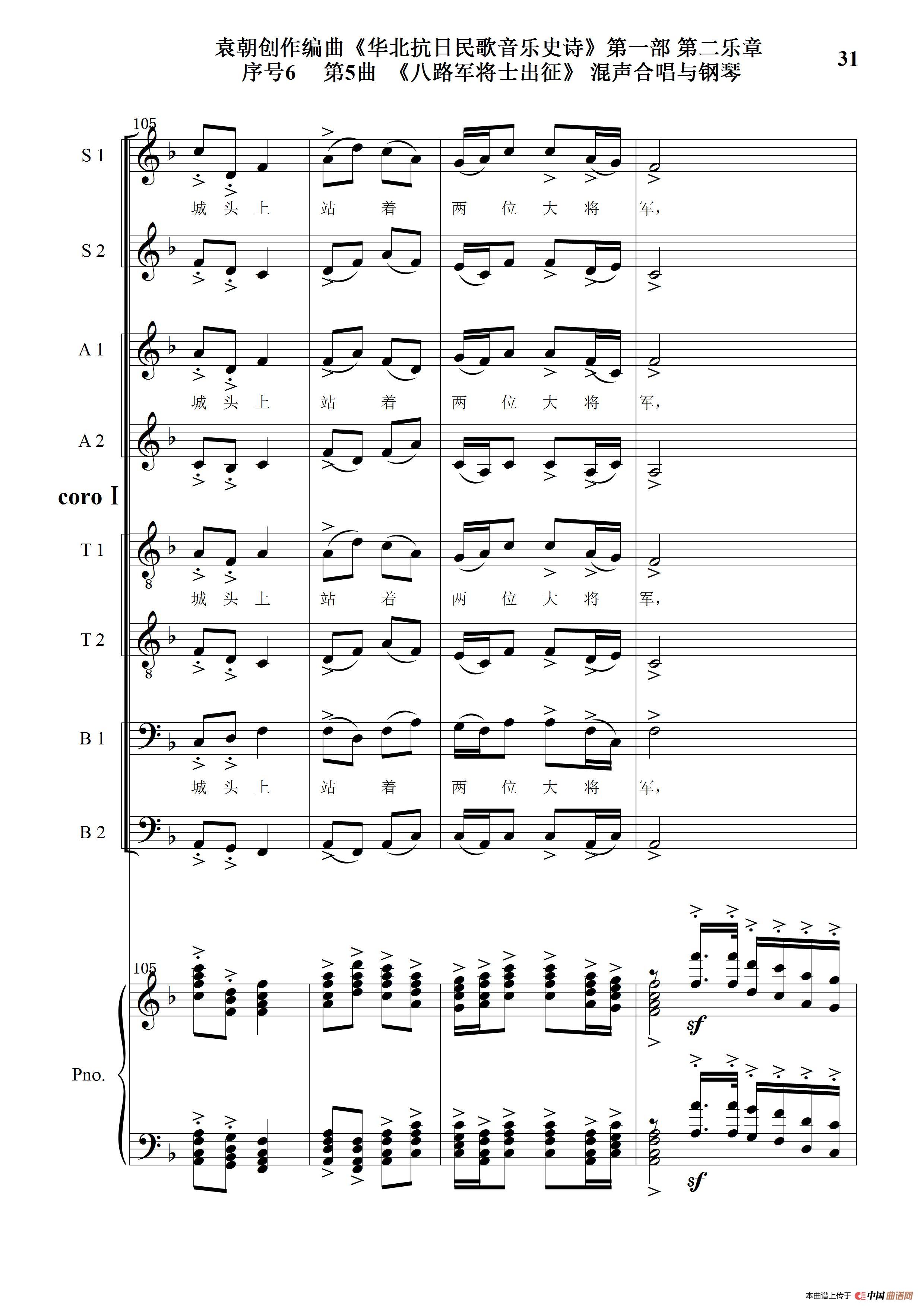 序号6第5曲《八路军将士出征》Ⅰ合唱团与钢琴
