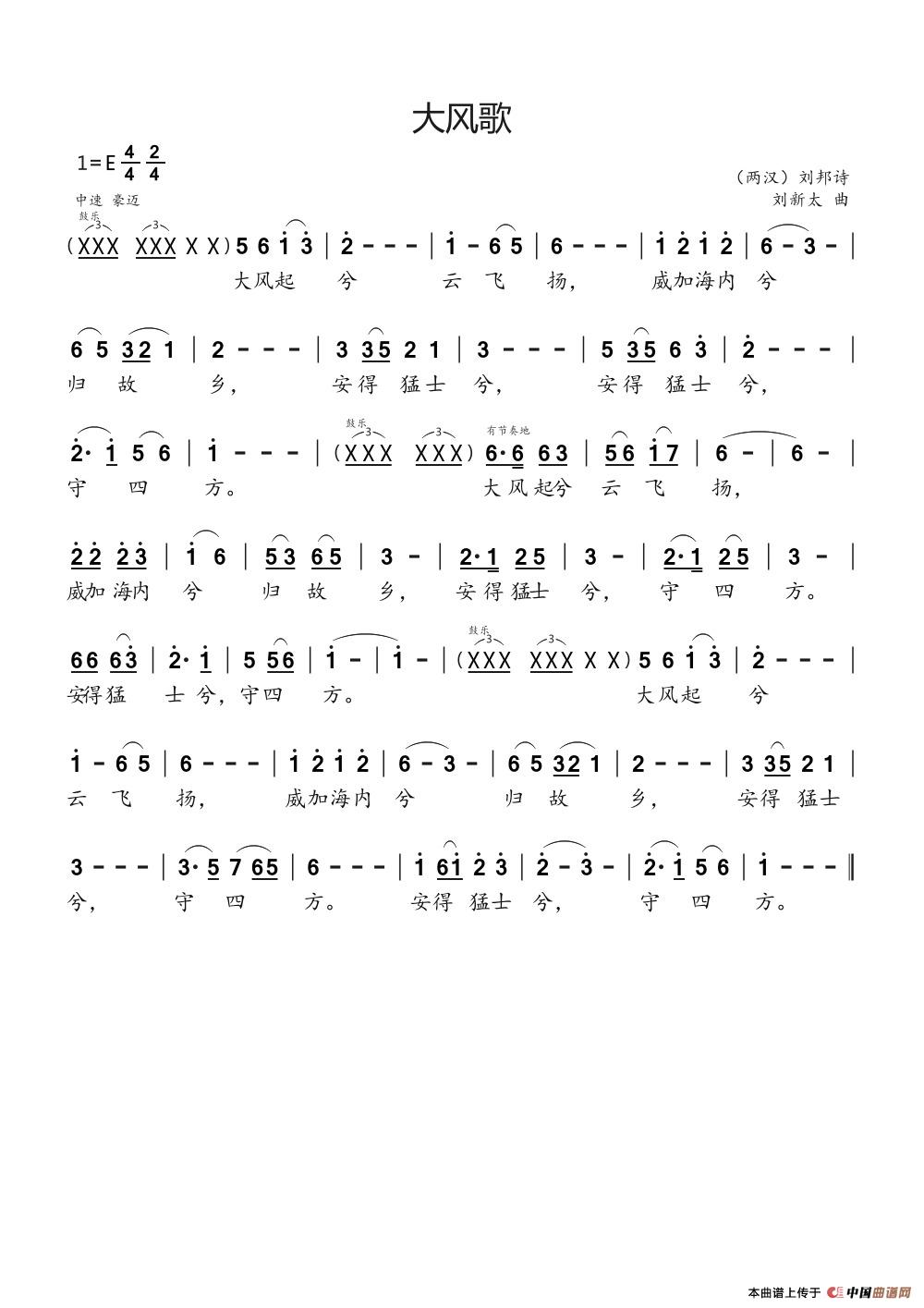 关于《大风歌》曲谱的评论
