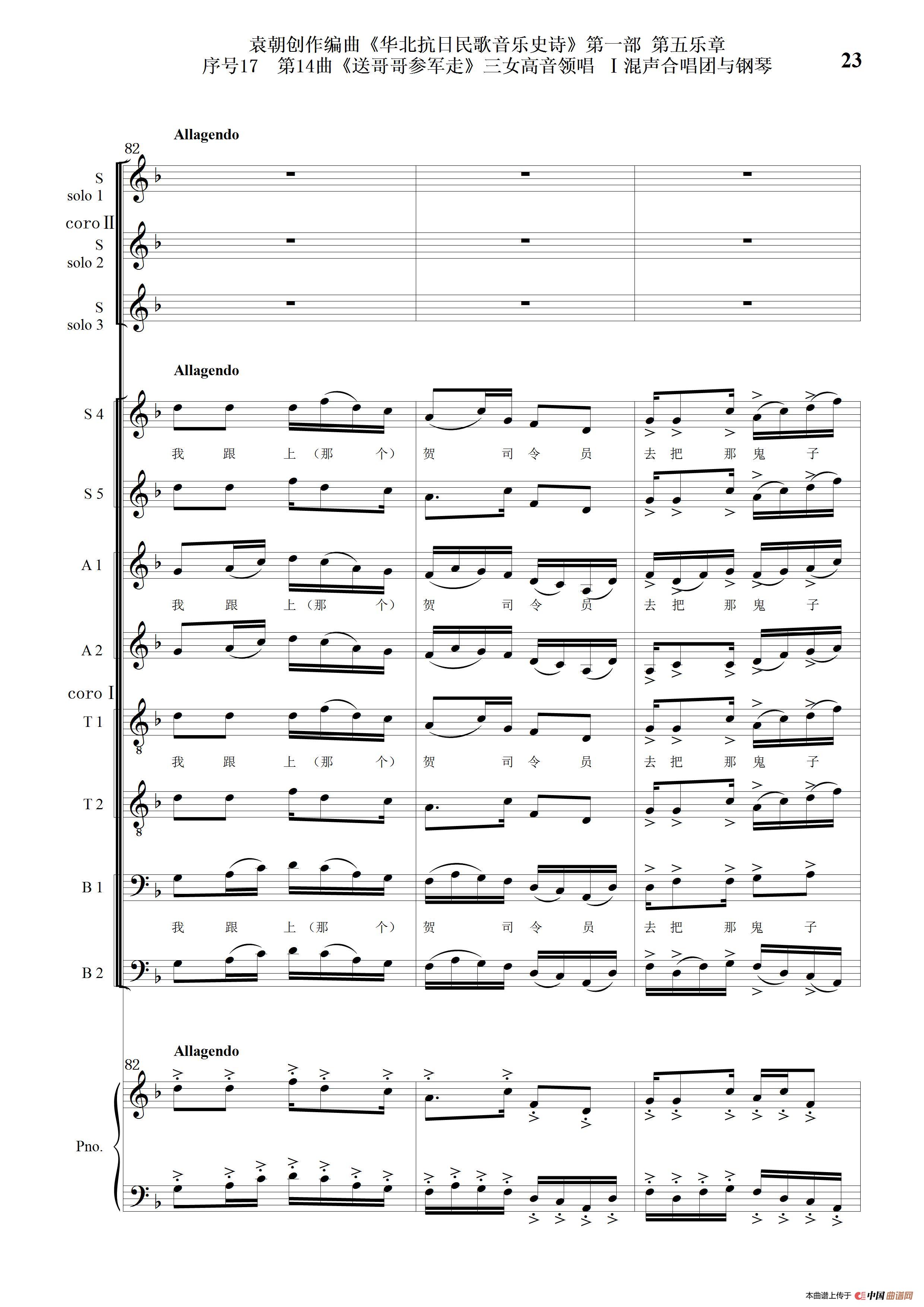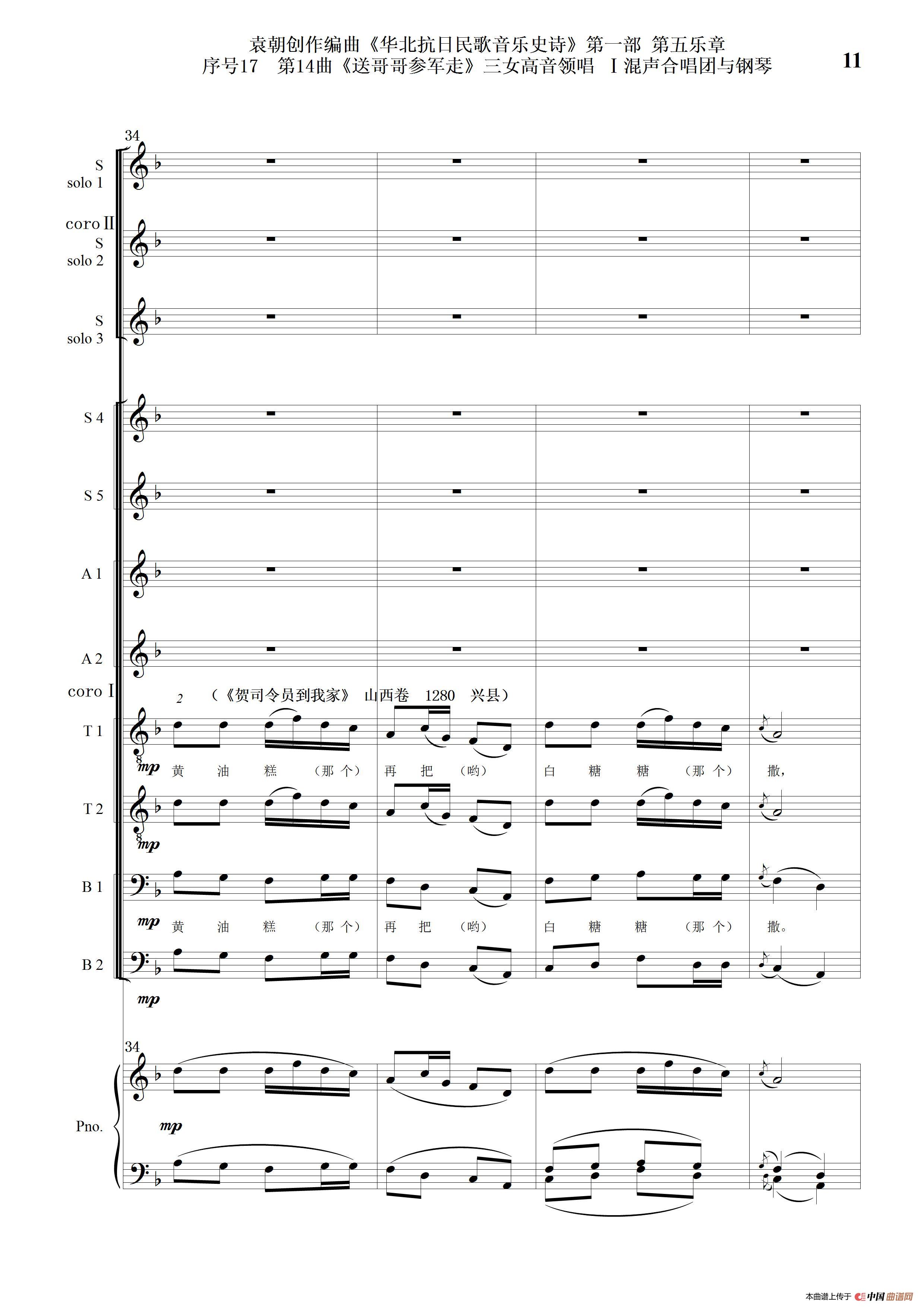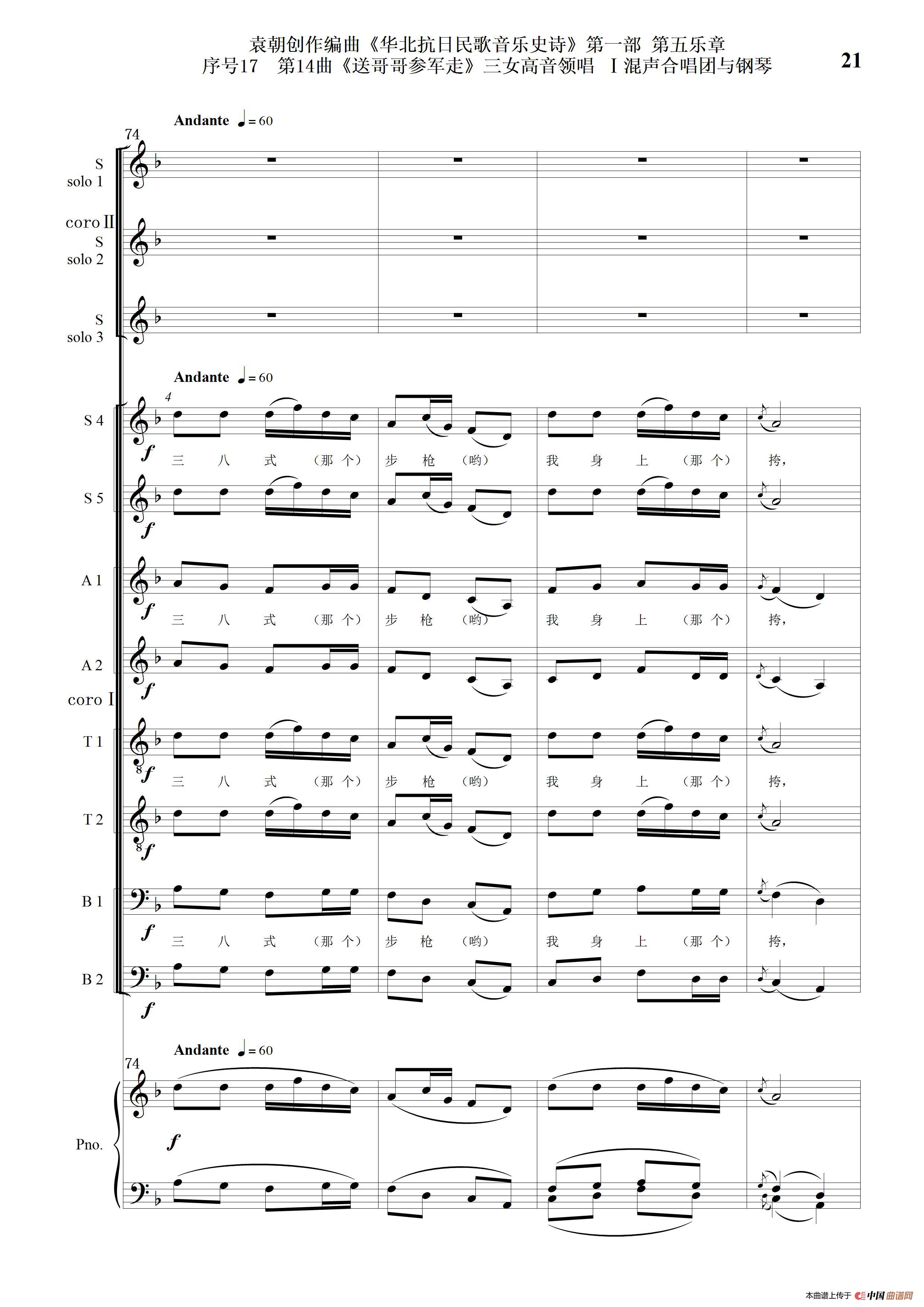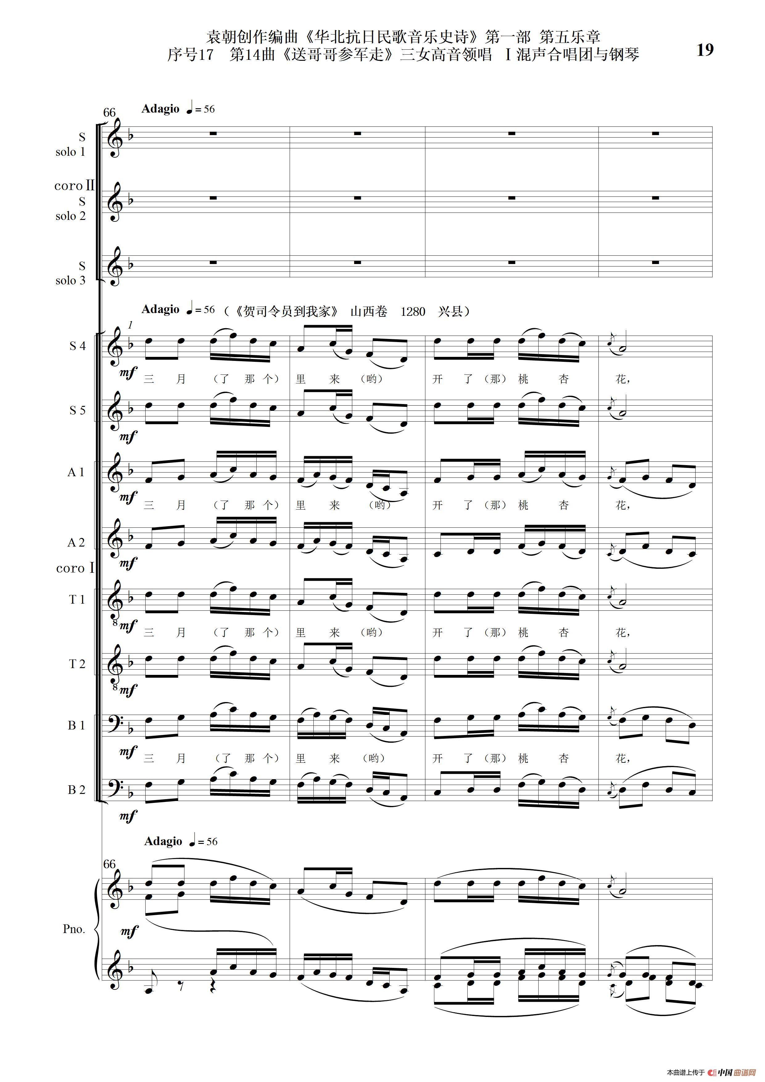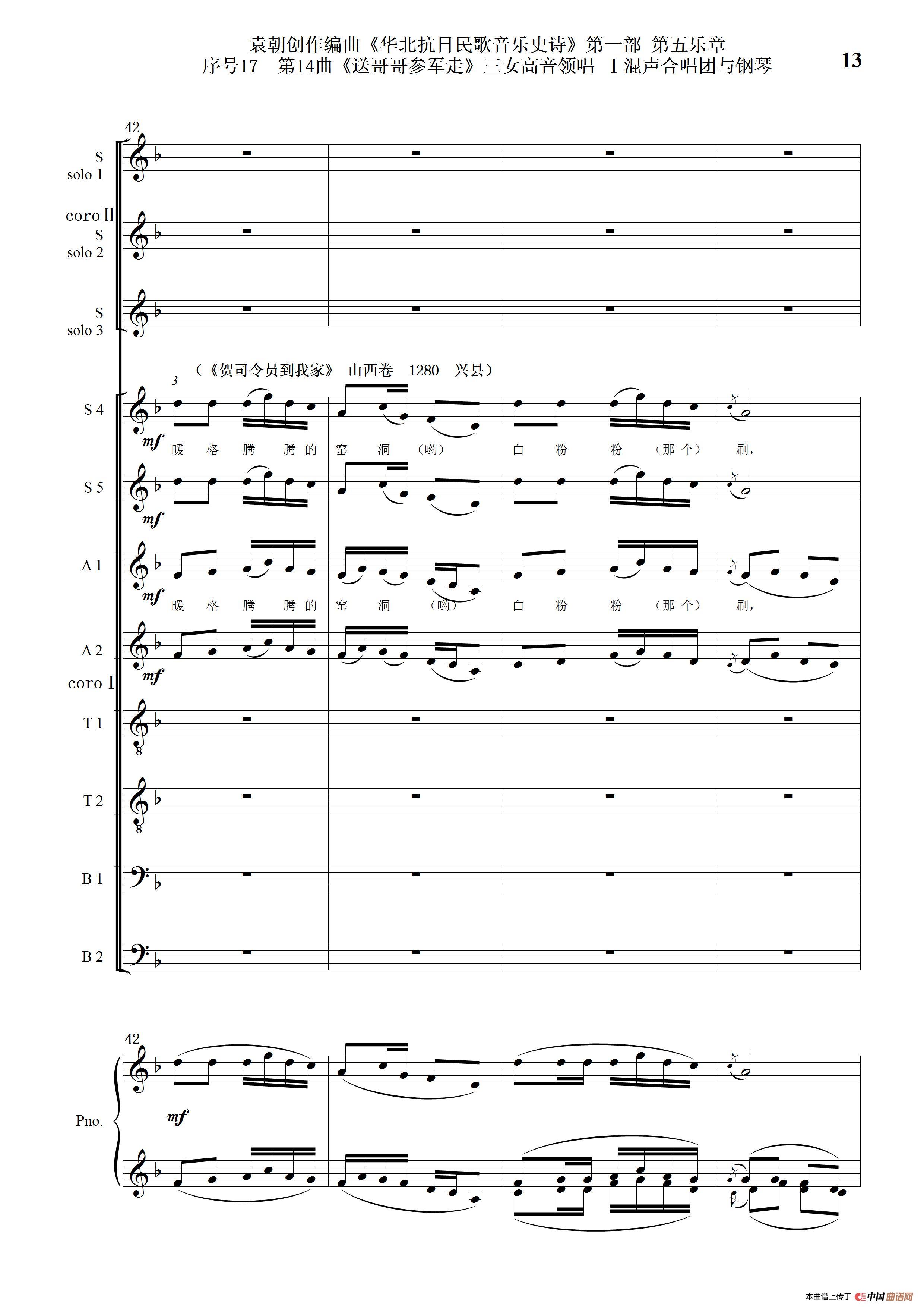 序号17第14曲《送哥哥参军走》三女高音领唱 Ⅰ合唱团与钢琴