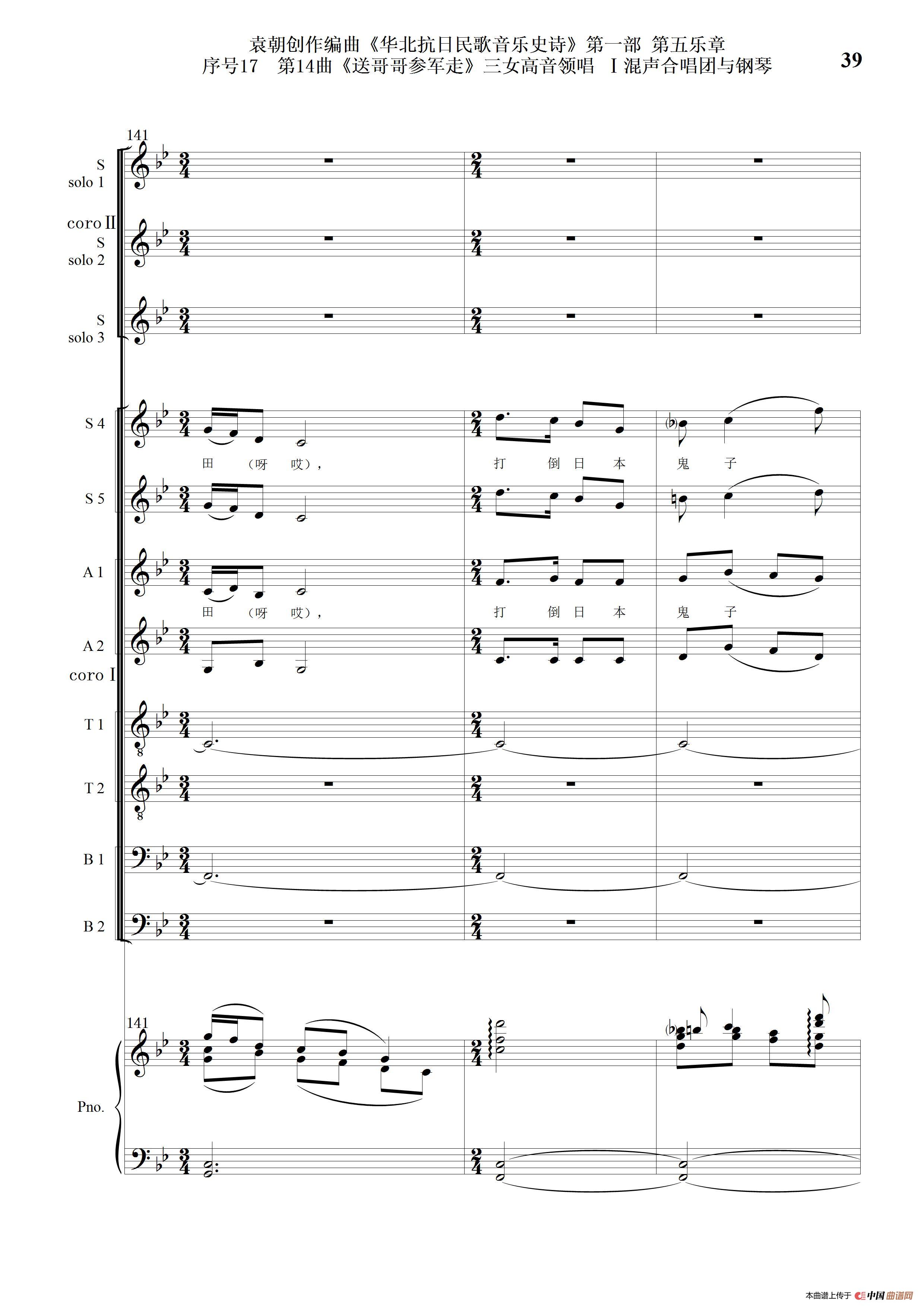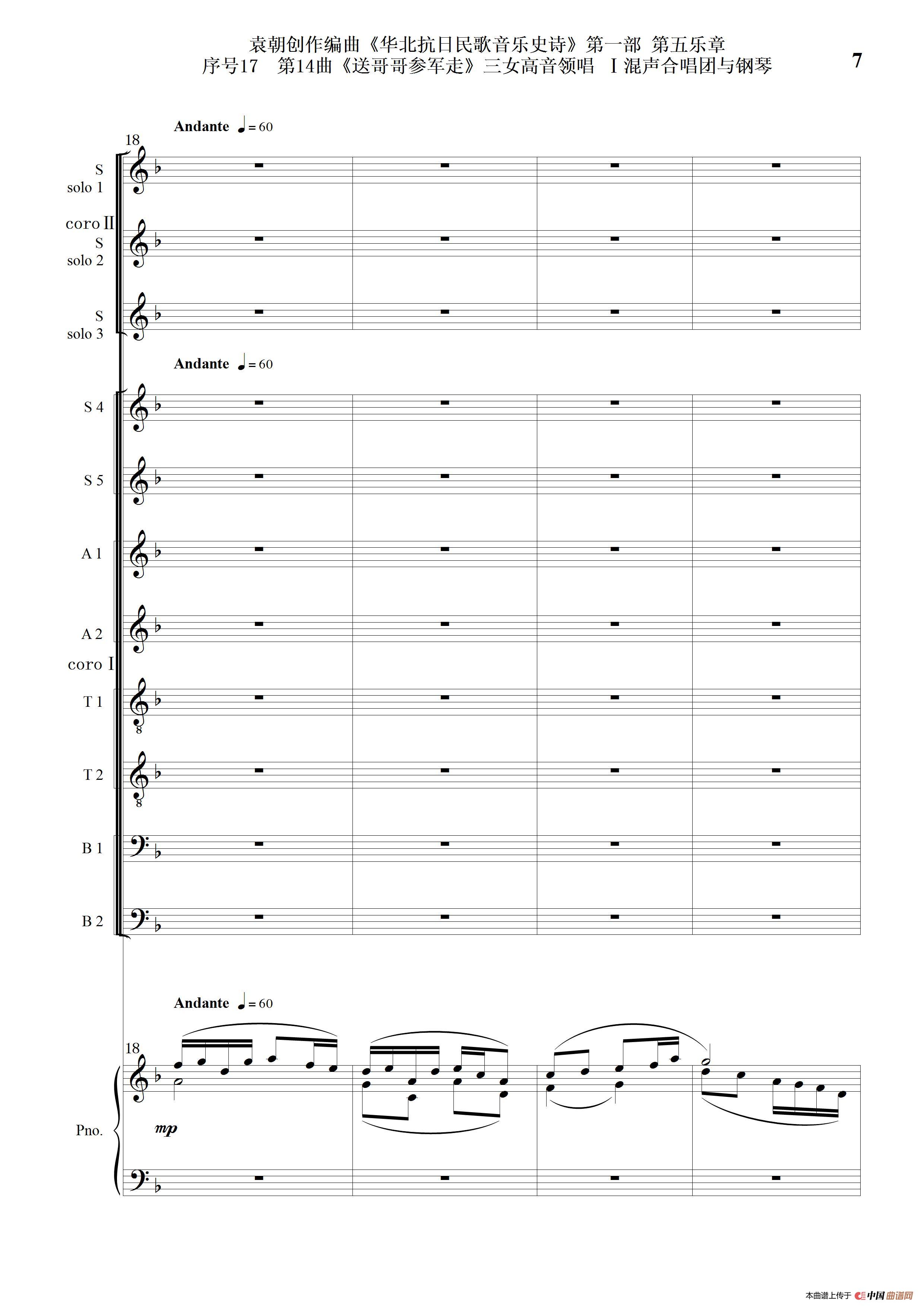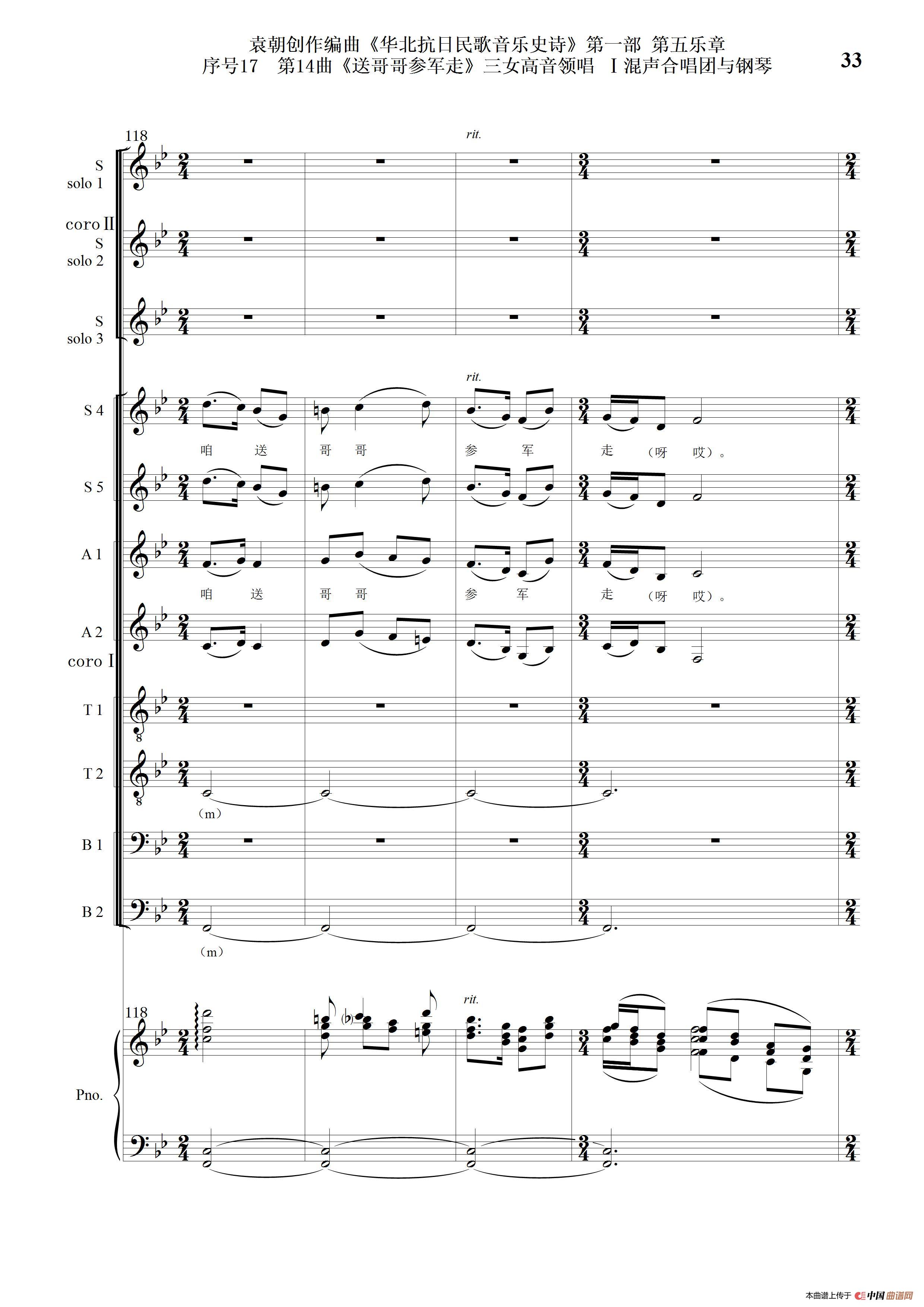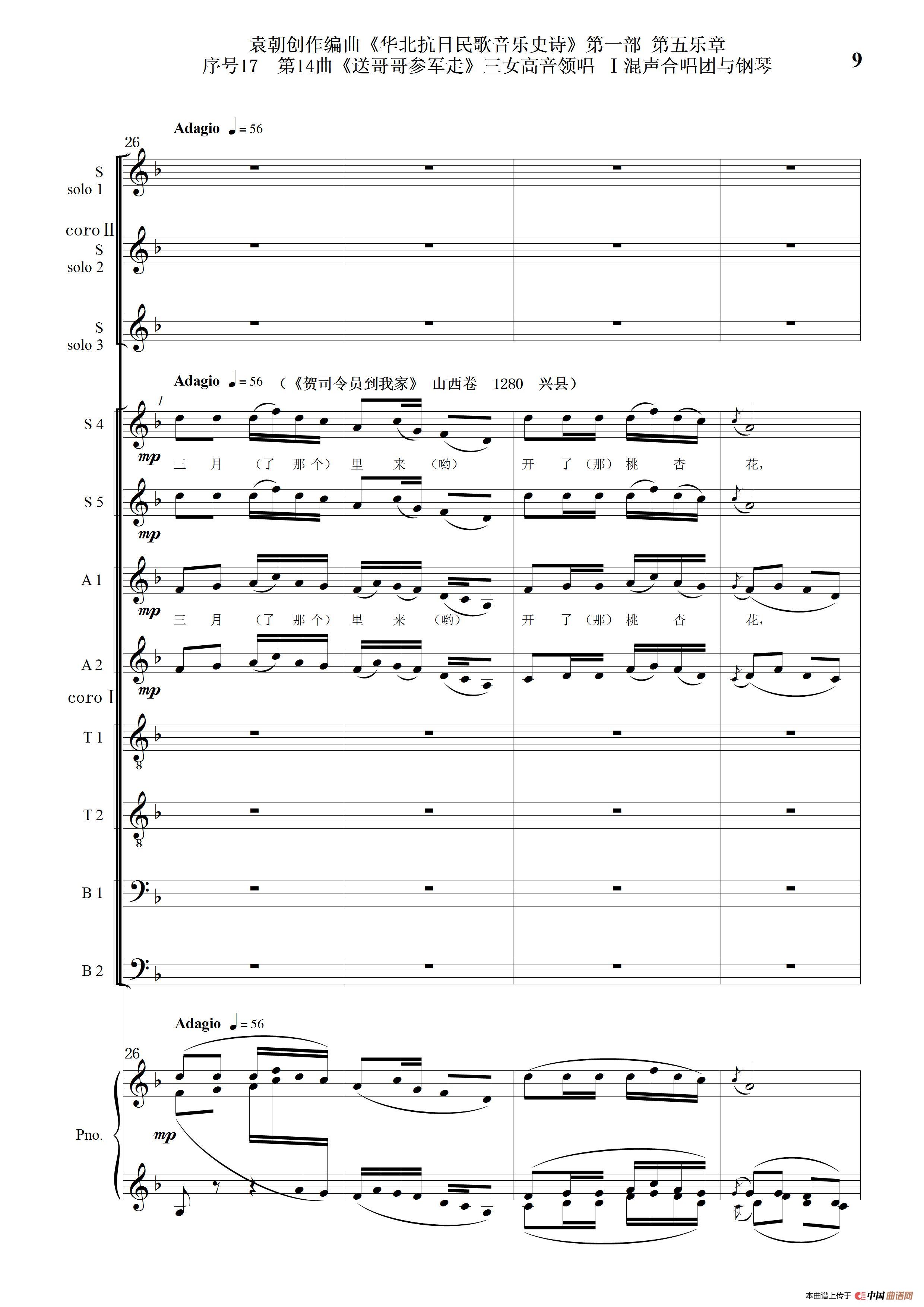 序号17第14曲《送哥哥参军走》三女高音领唱 Ⅰ合唱团与钢琴