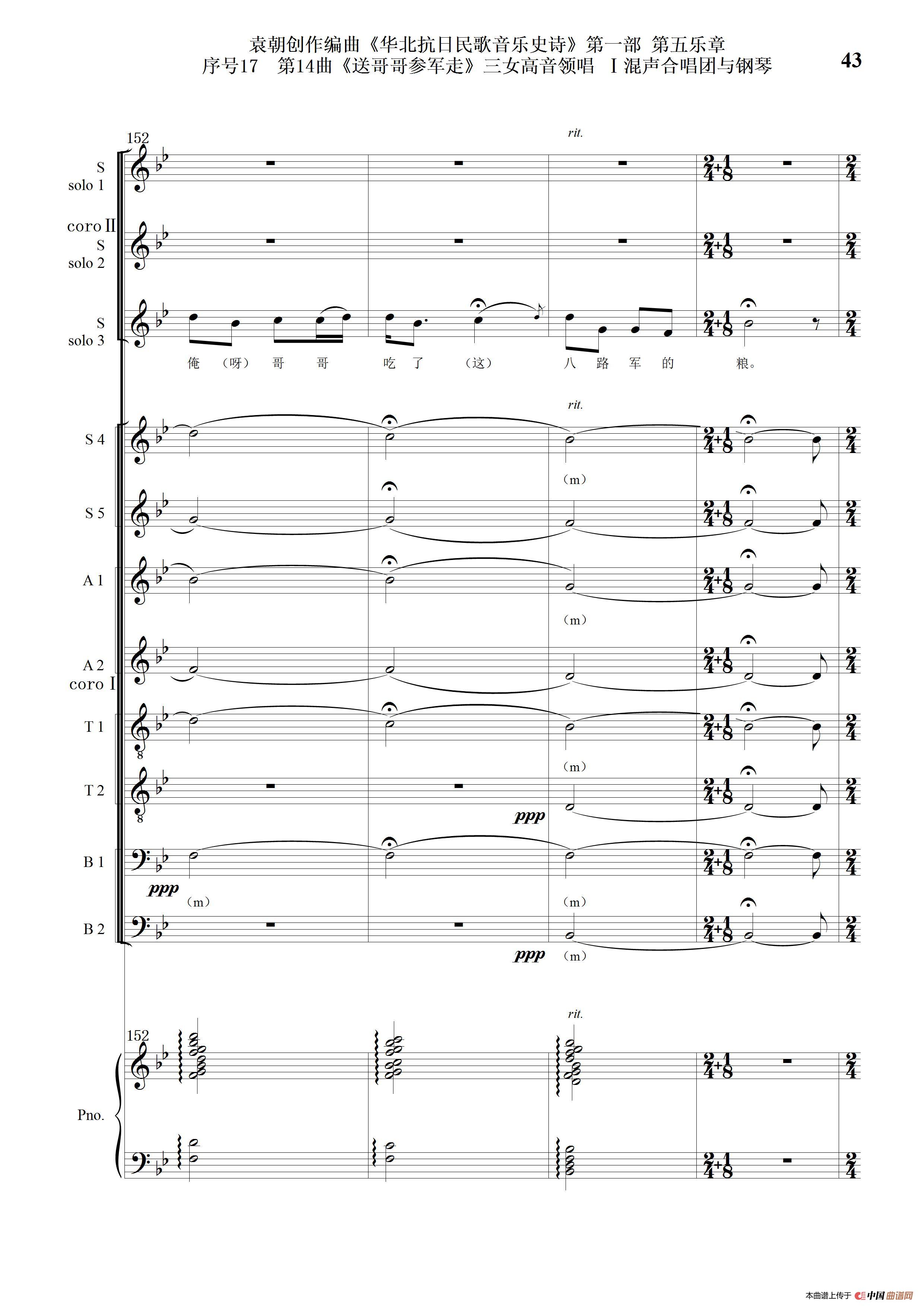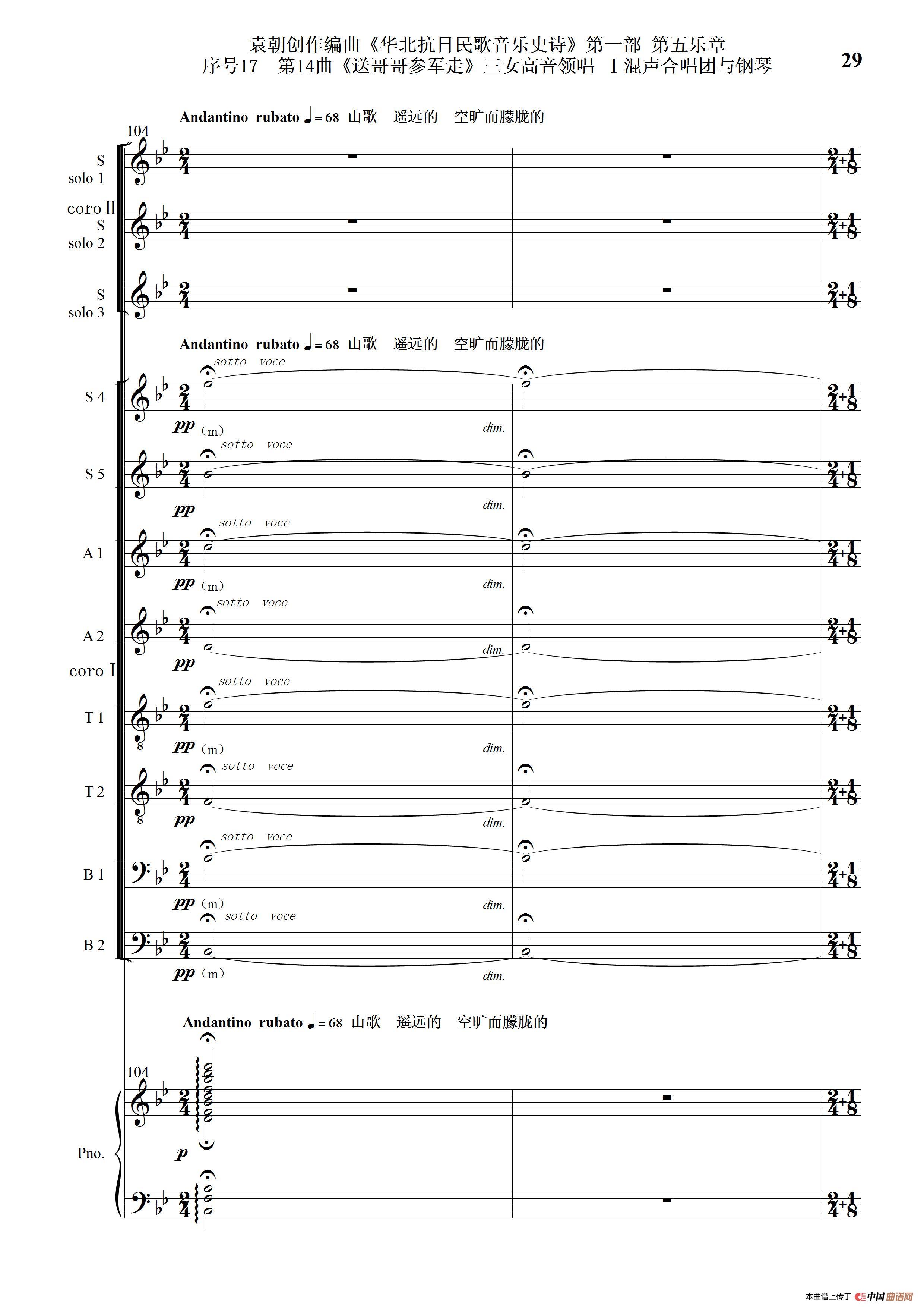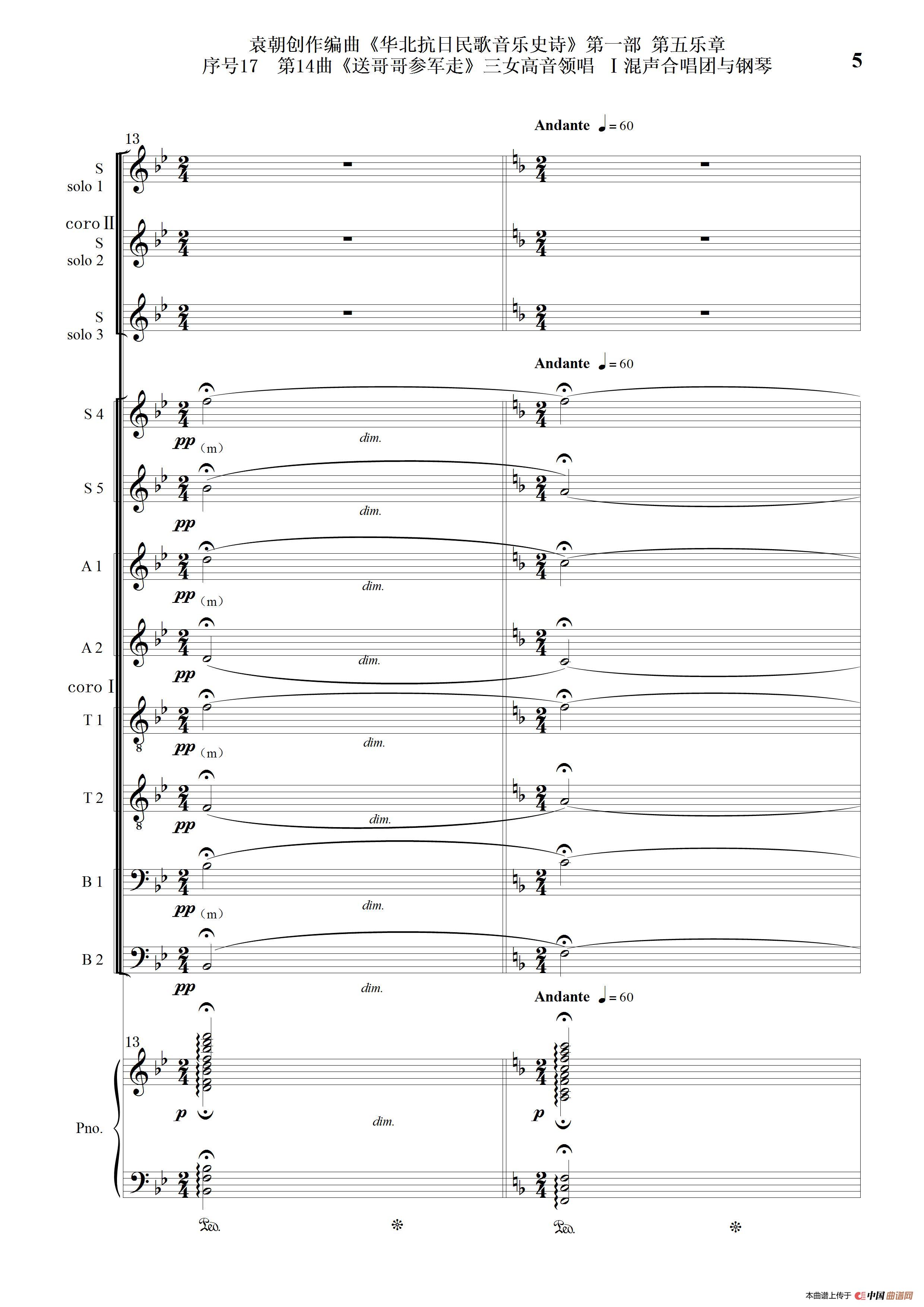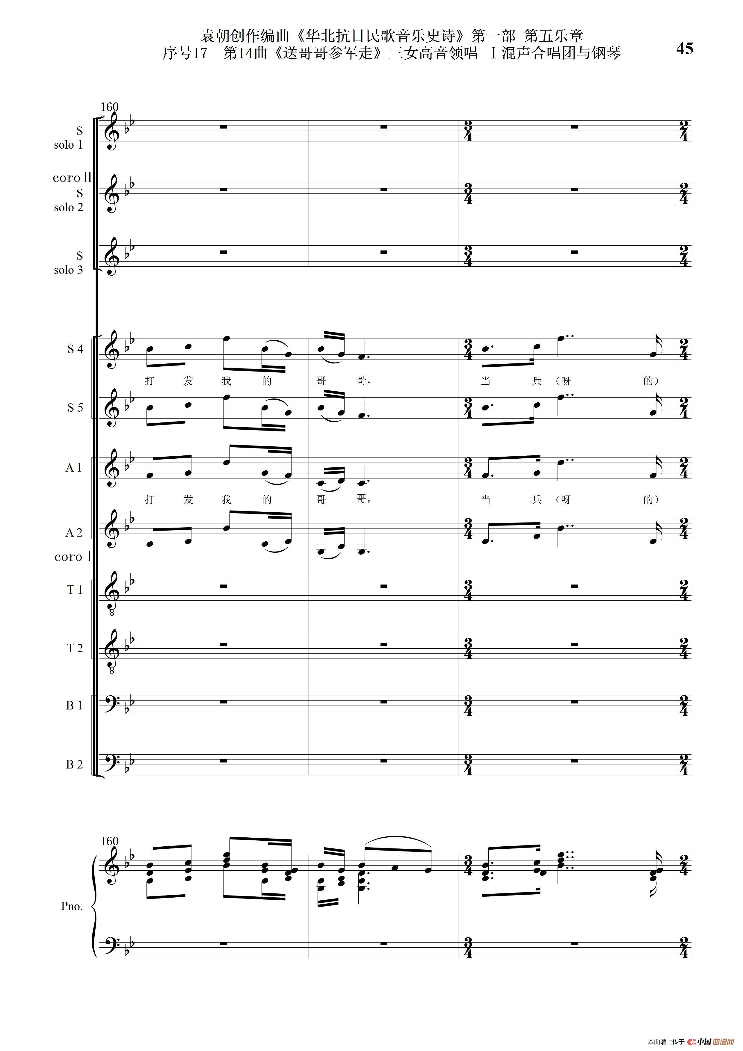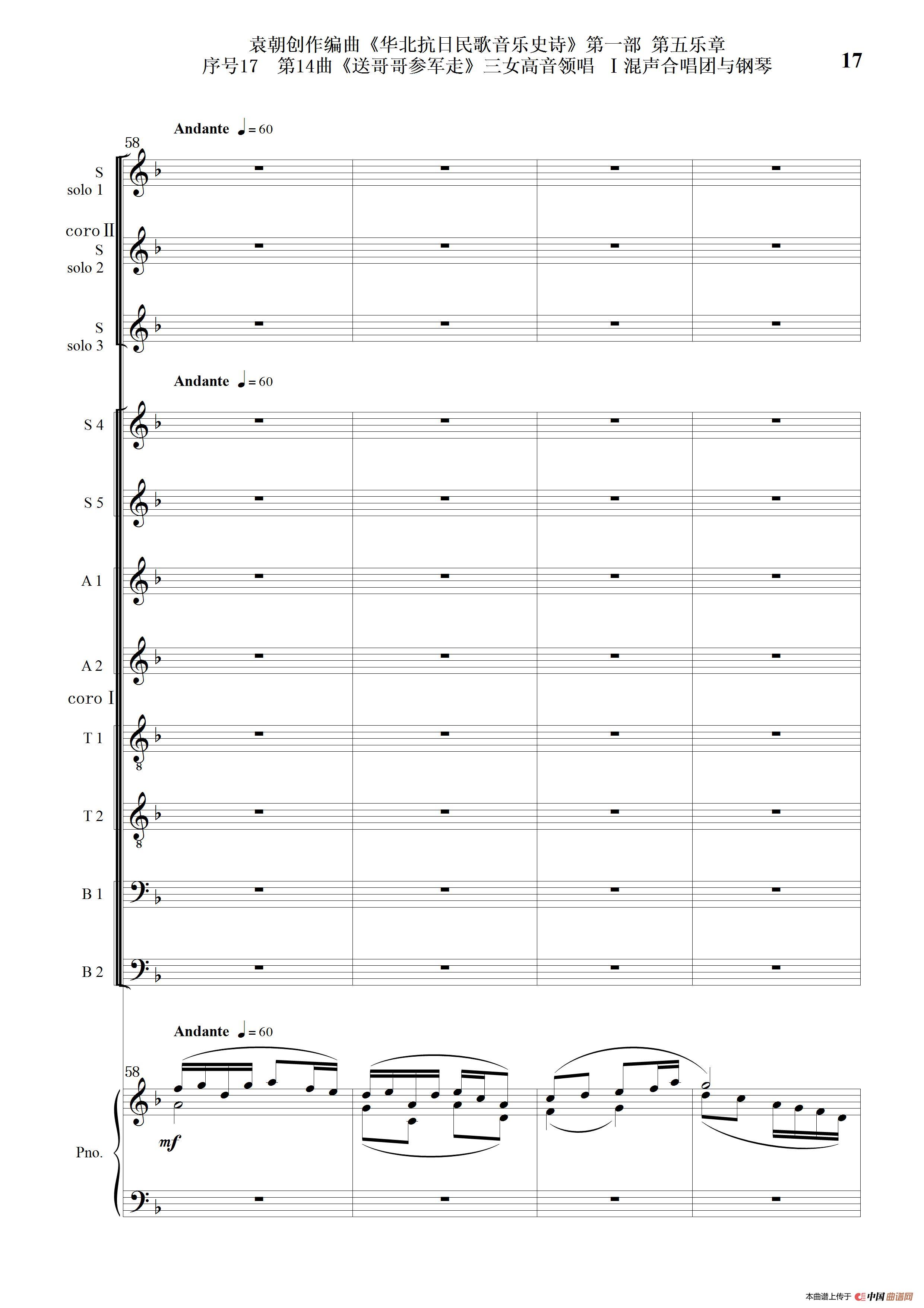 序号17第14曲《送哥哥参军走》三女高音领唱 Ⅰ合唱团与钢琴