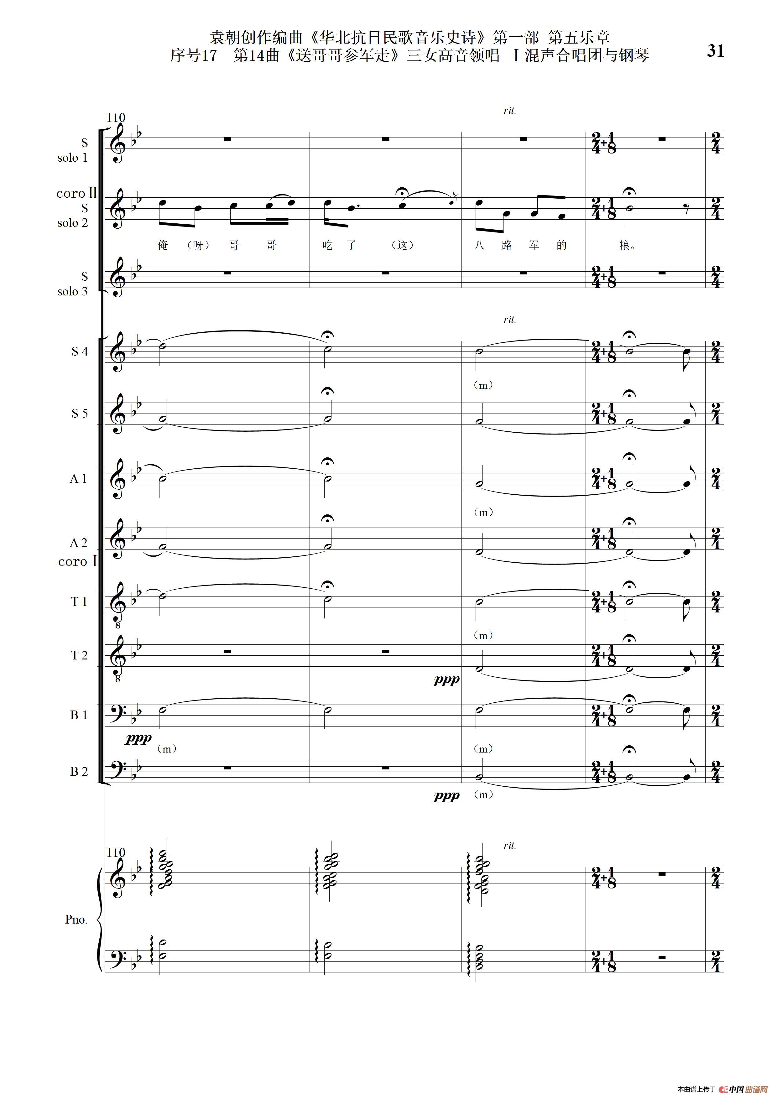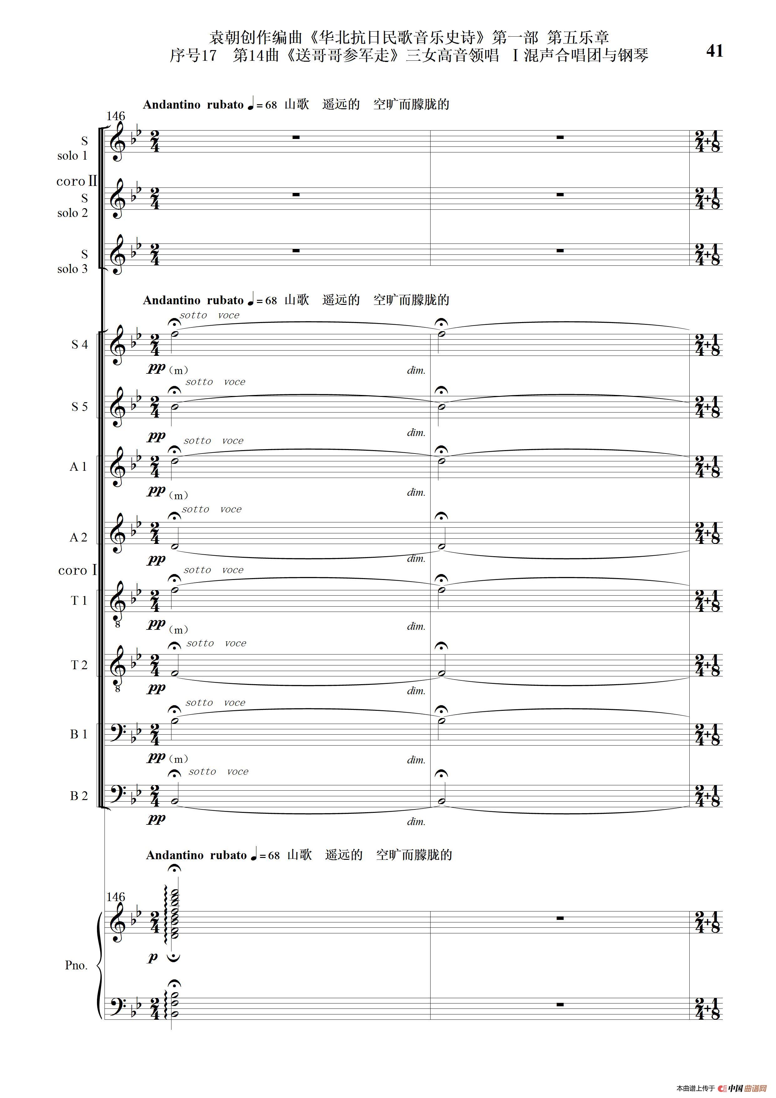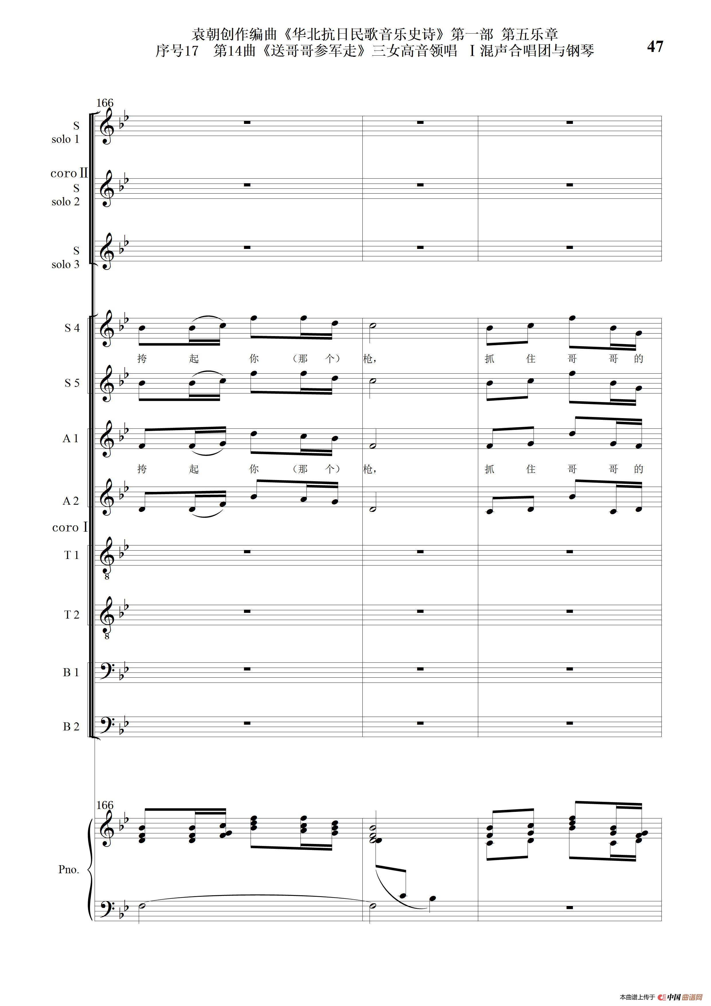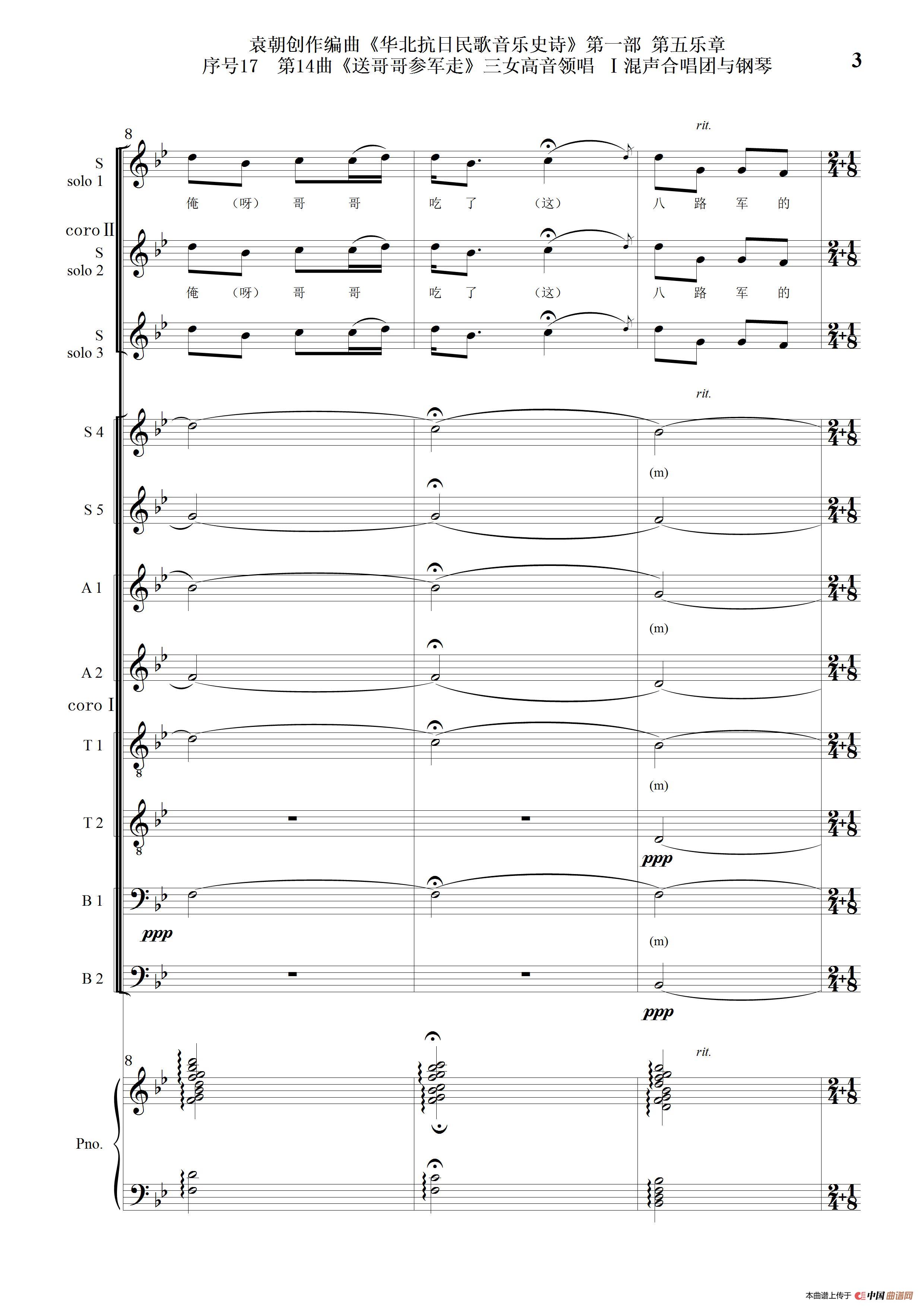 序号17第14曲《送哥哥参军走》三女高音领唱 Ⅰ合唱团与钢琴