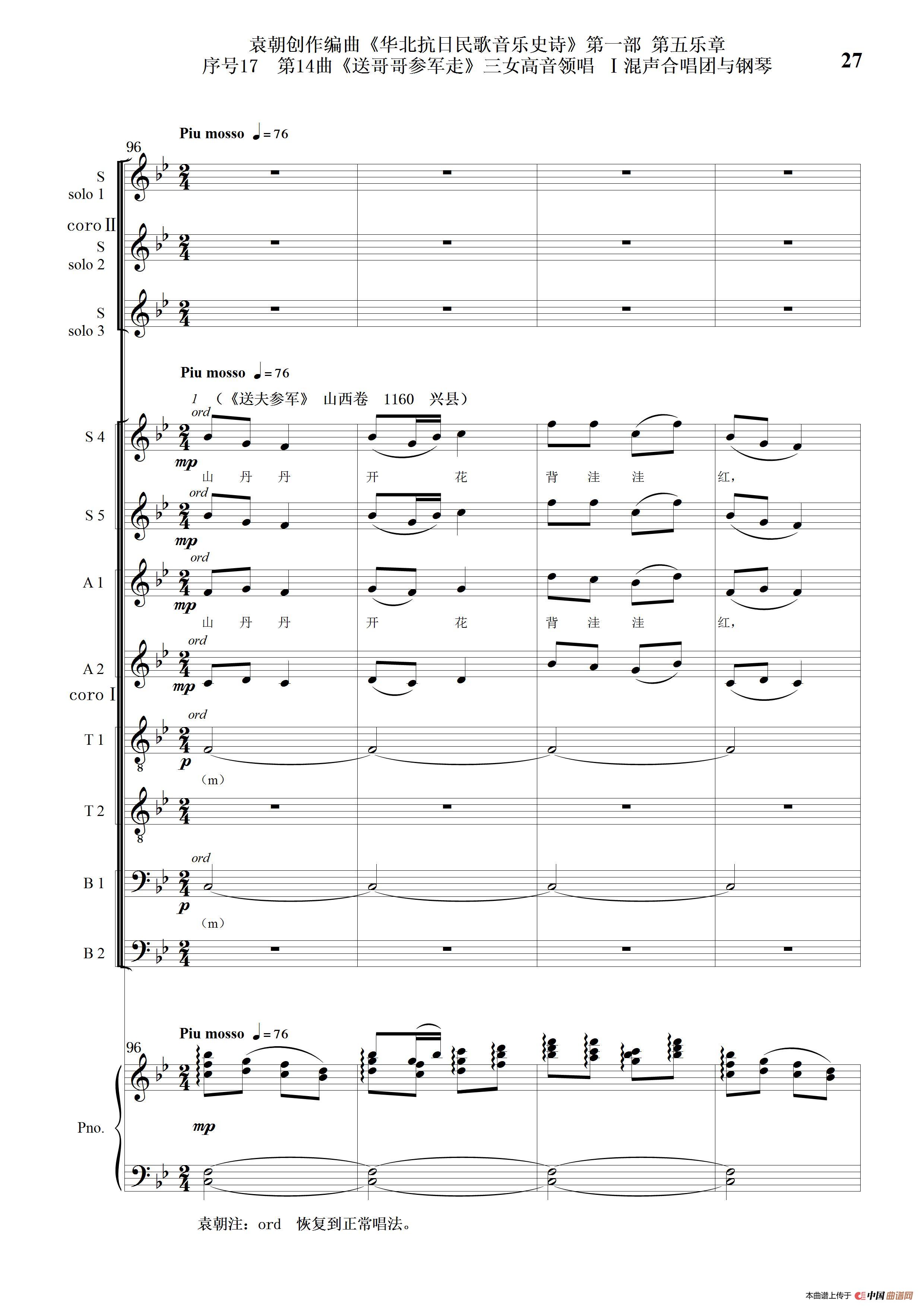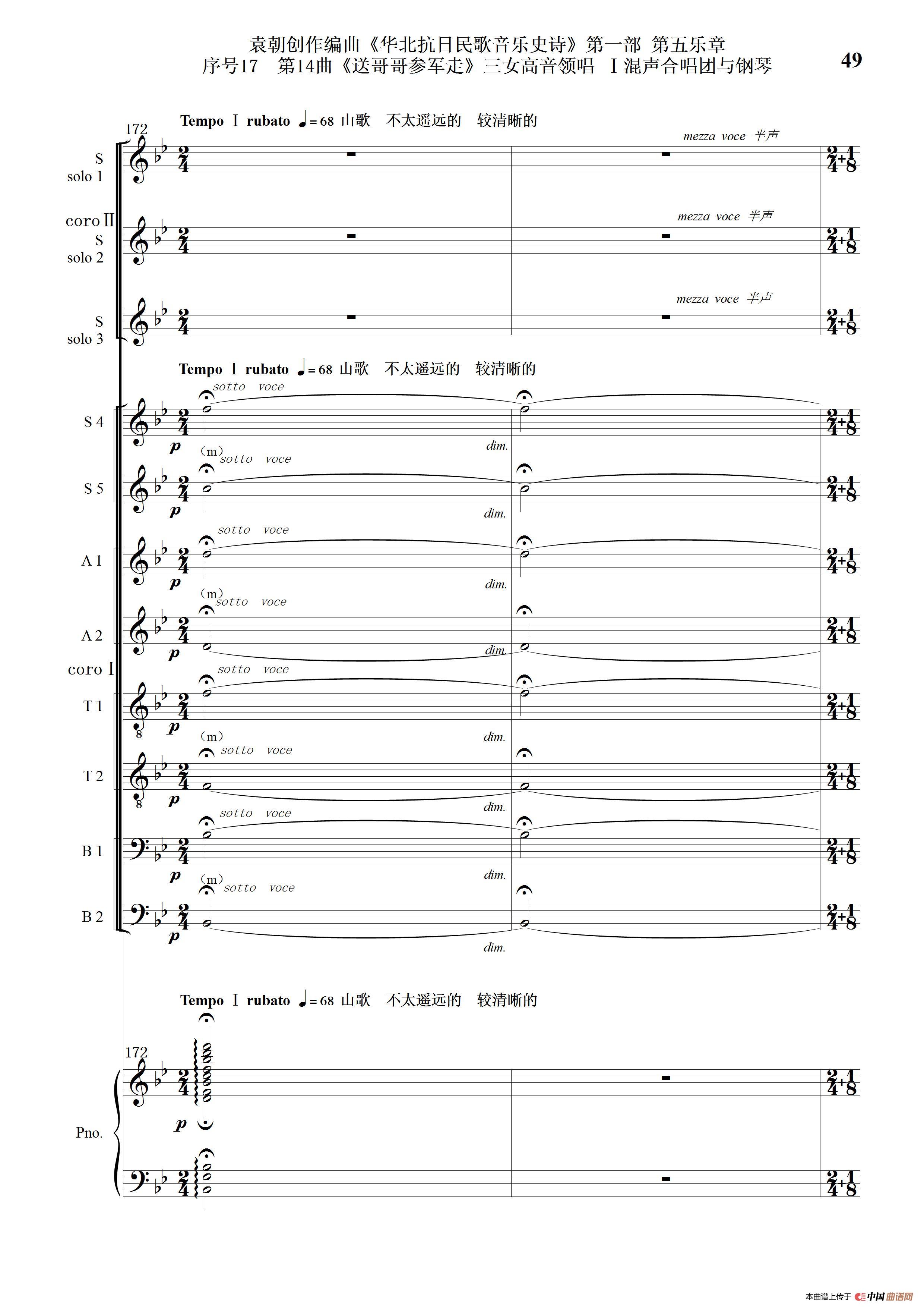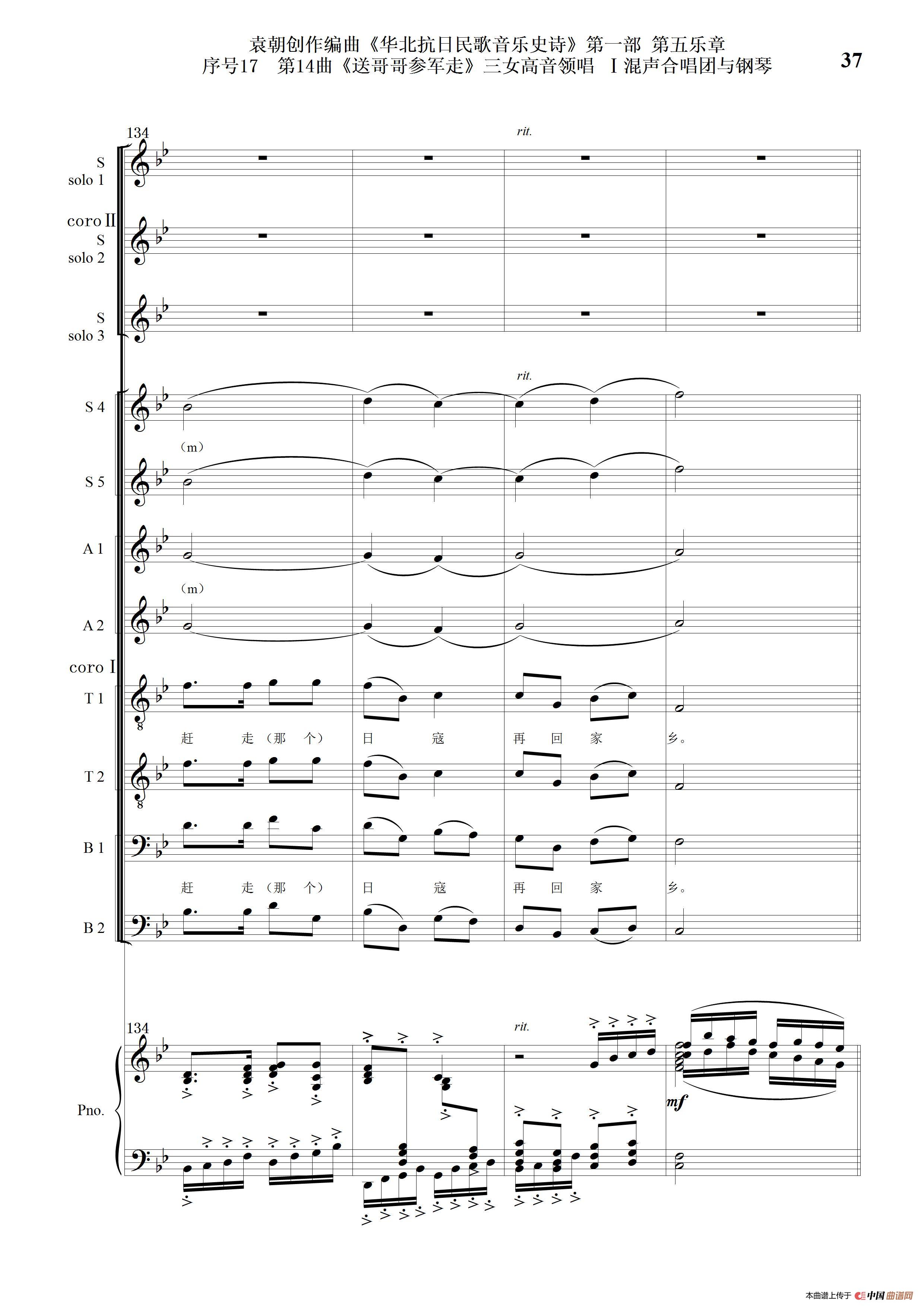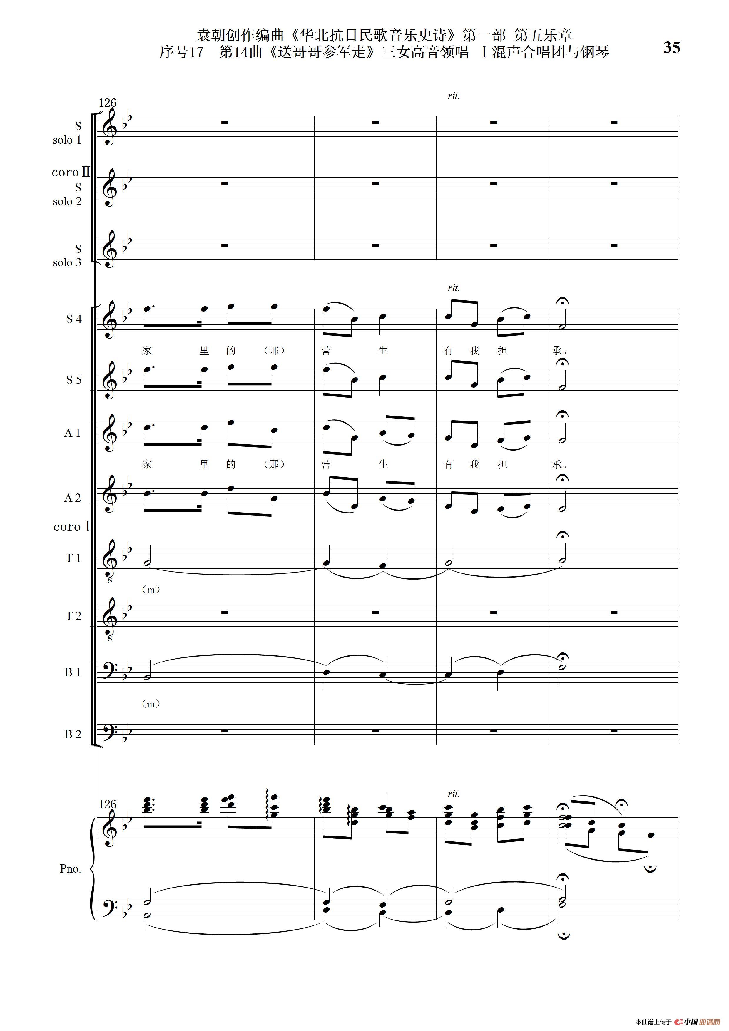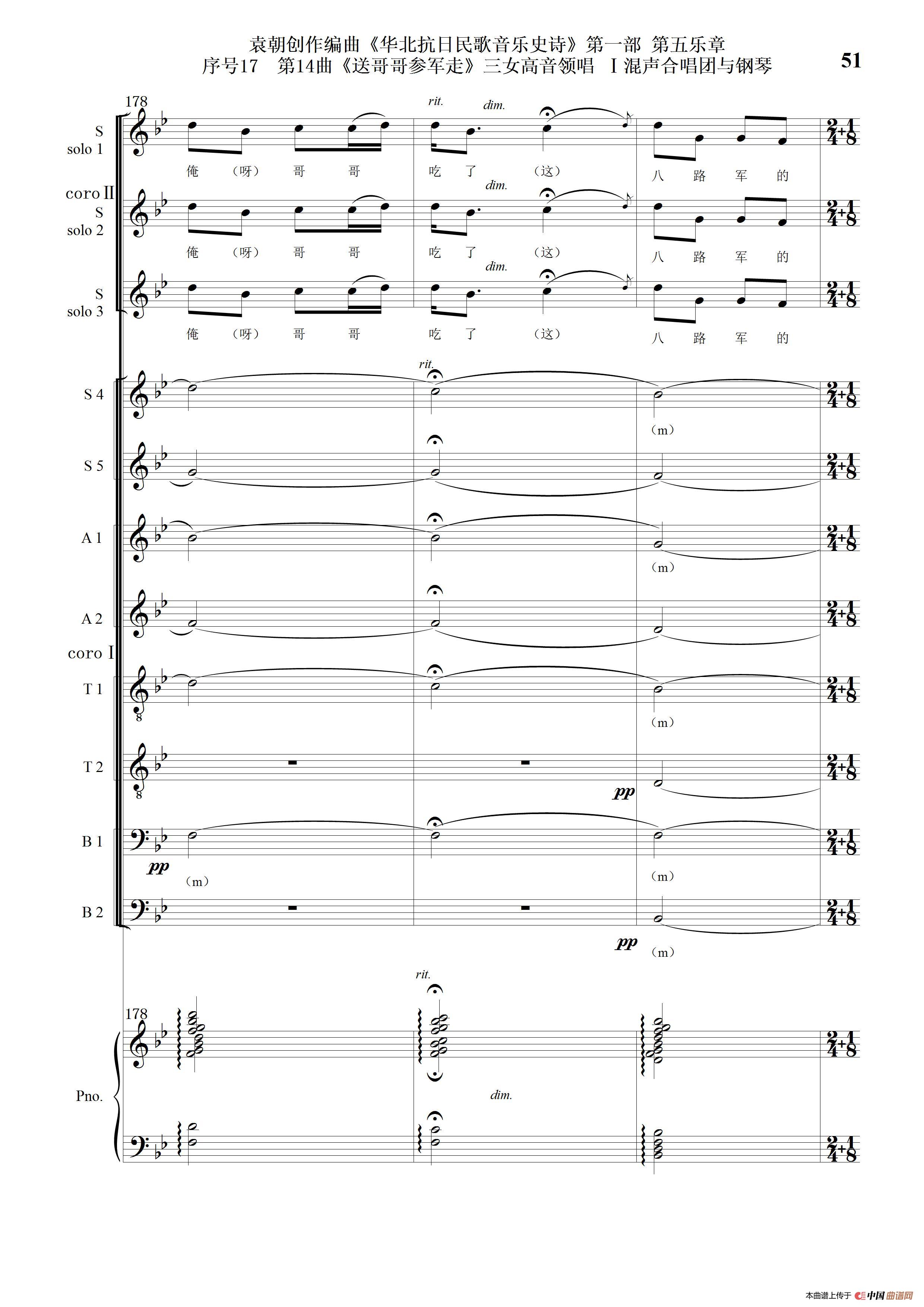 序号17第14曲《送哥哥参军走》三女高音领唱 Ⅰ合唱团与钢琴