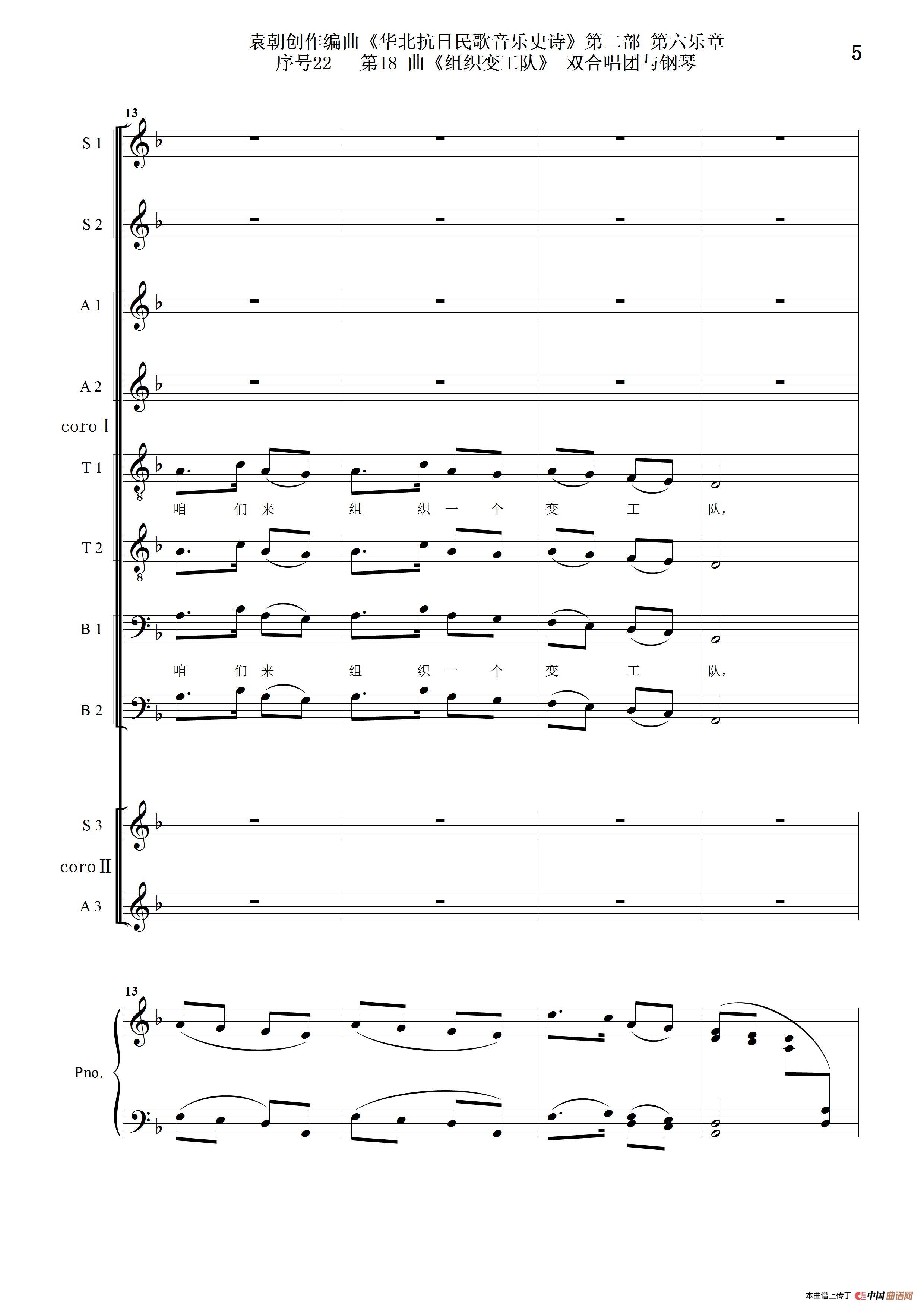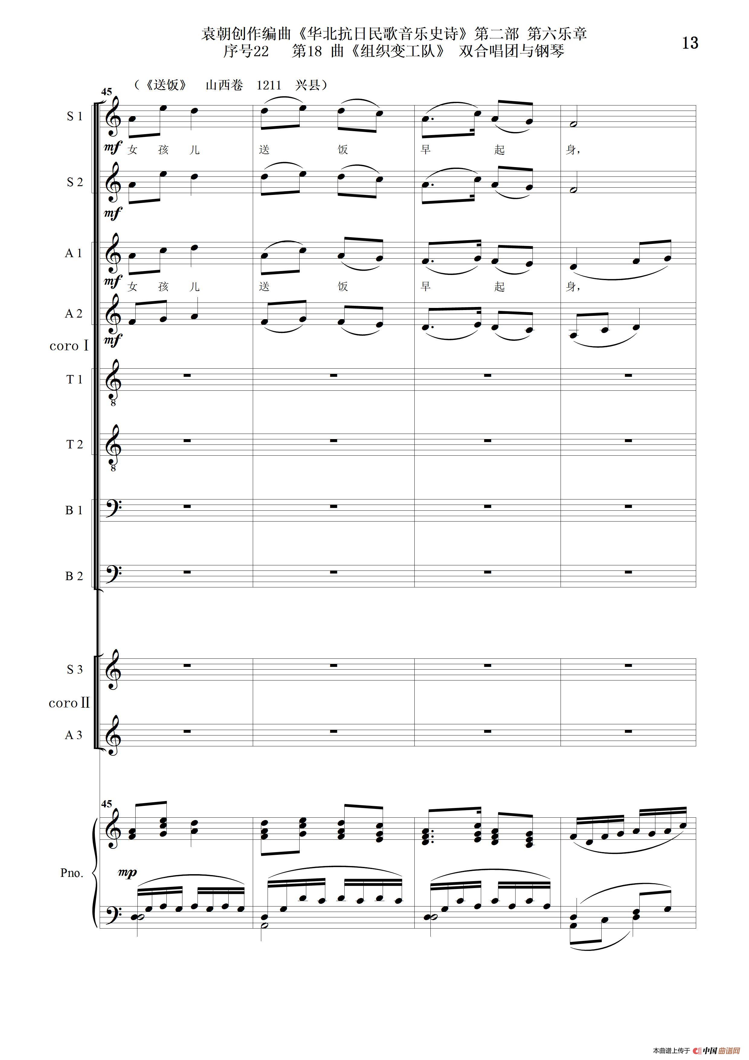 序号22第18曲《组织变工队》双合唱团与钢琴