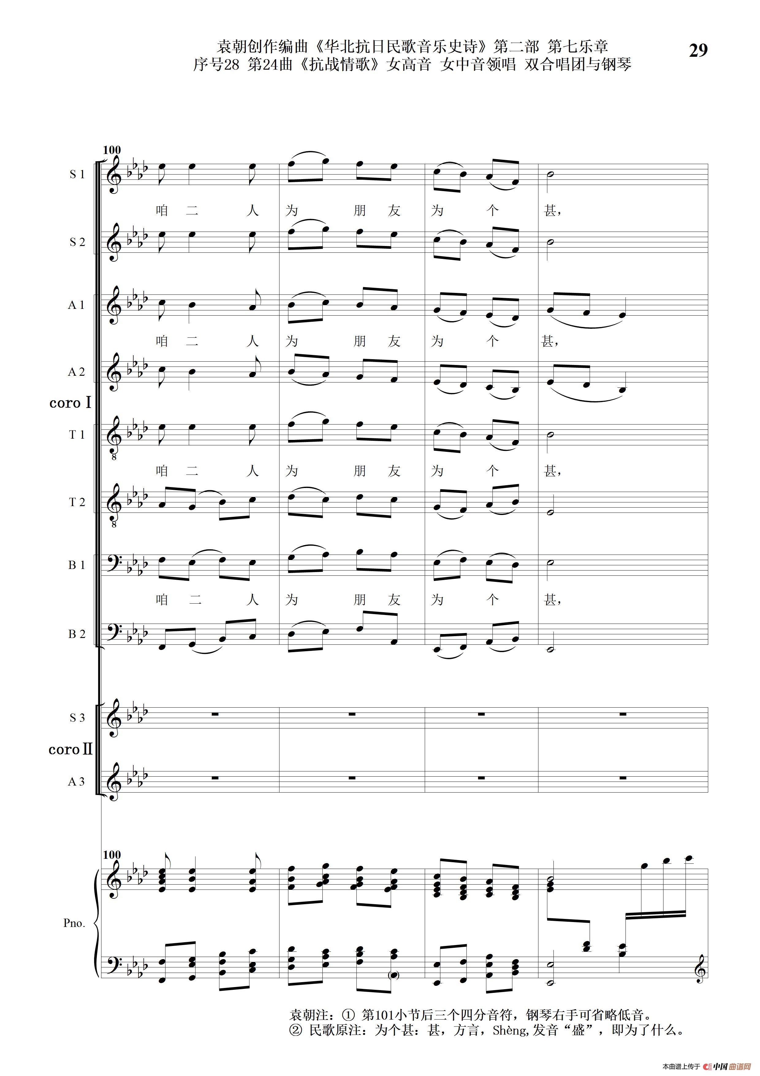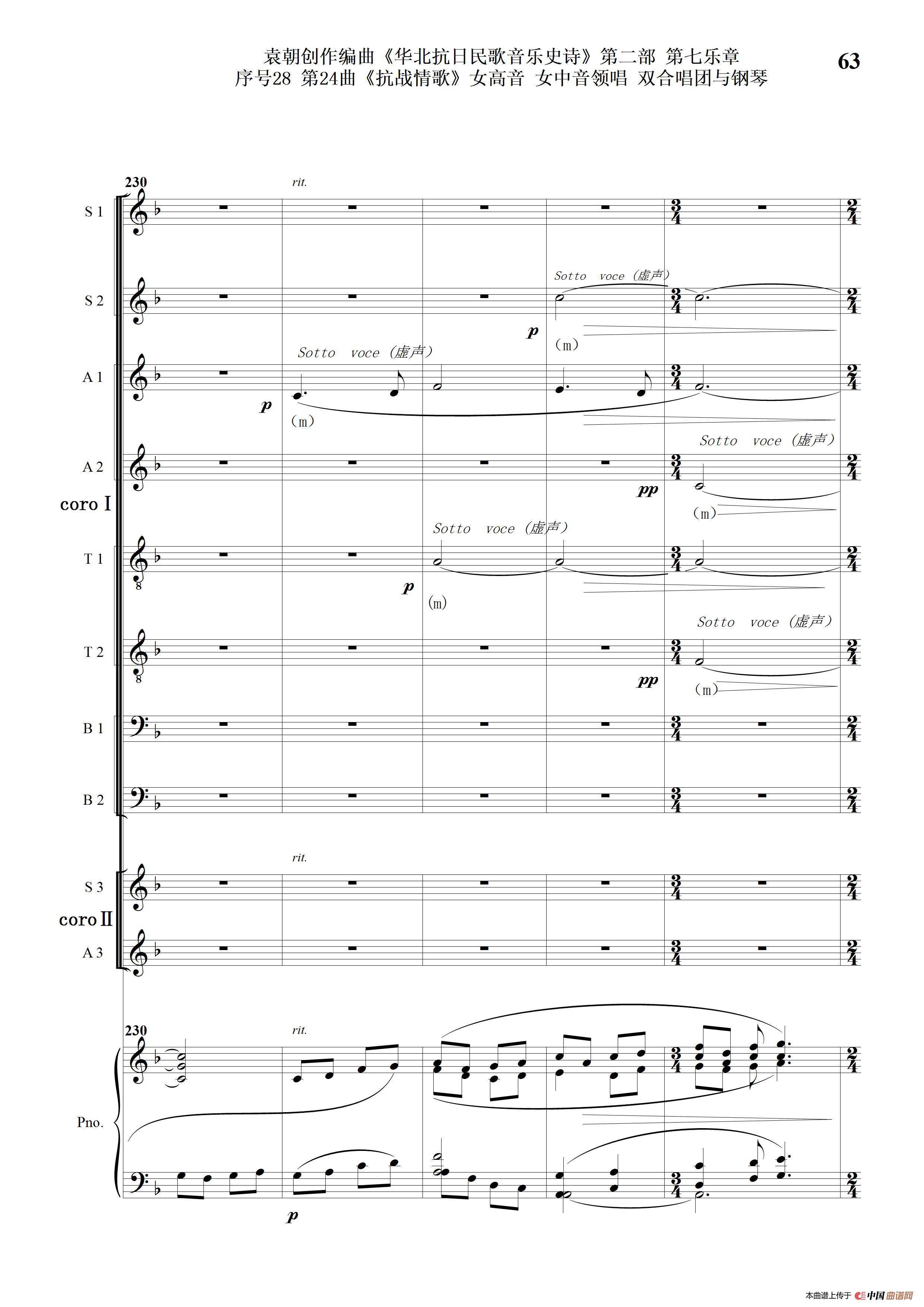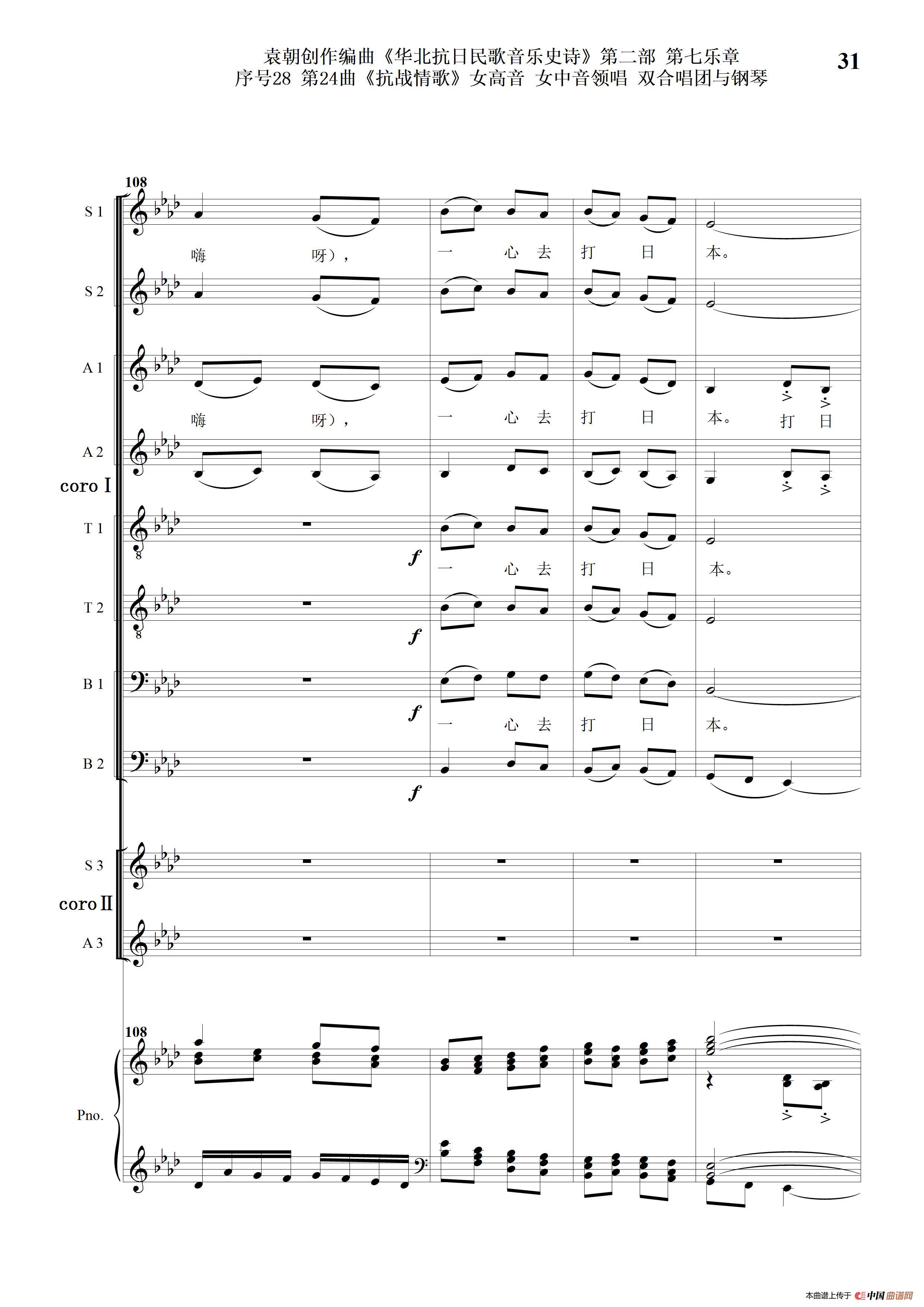 序号28第24曲《抗战情歌》女高音 女中音领唱 双合唱团与钢琴
