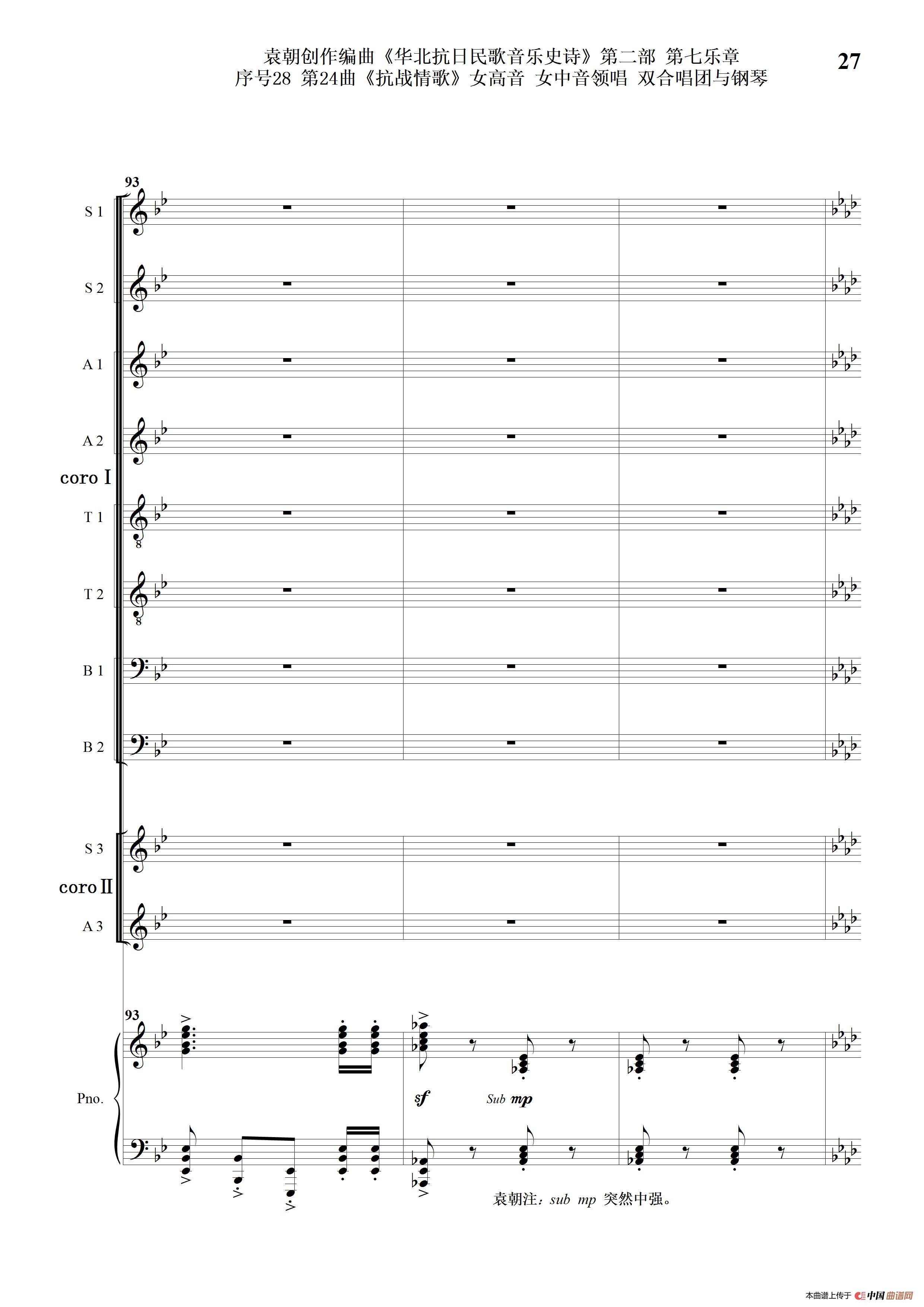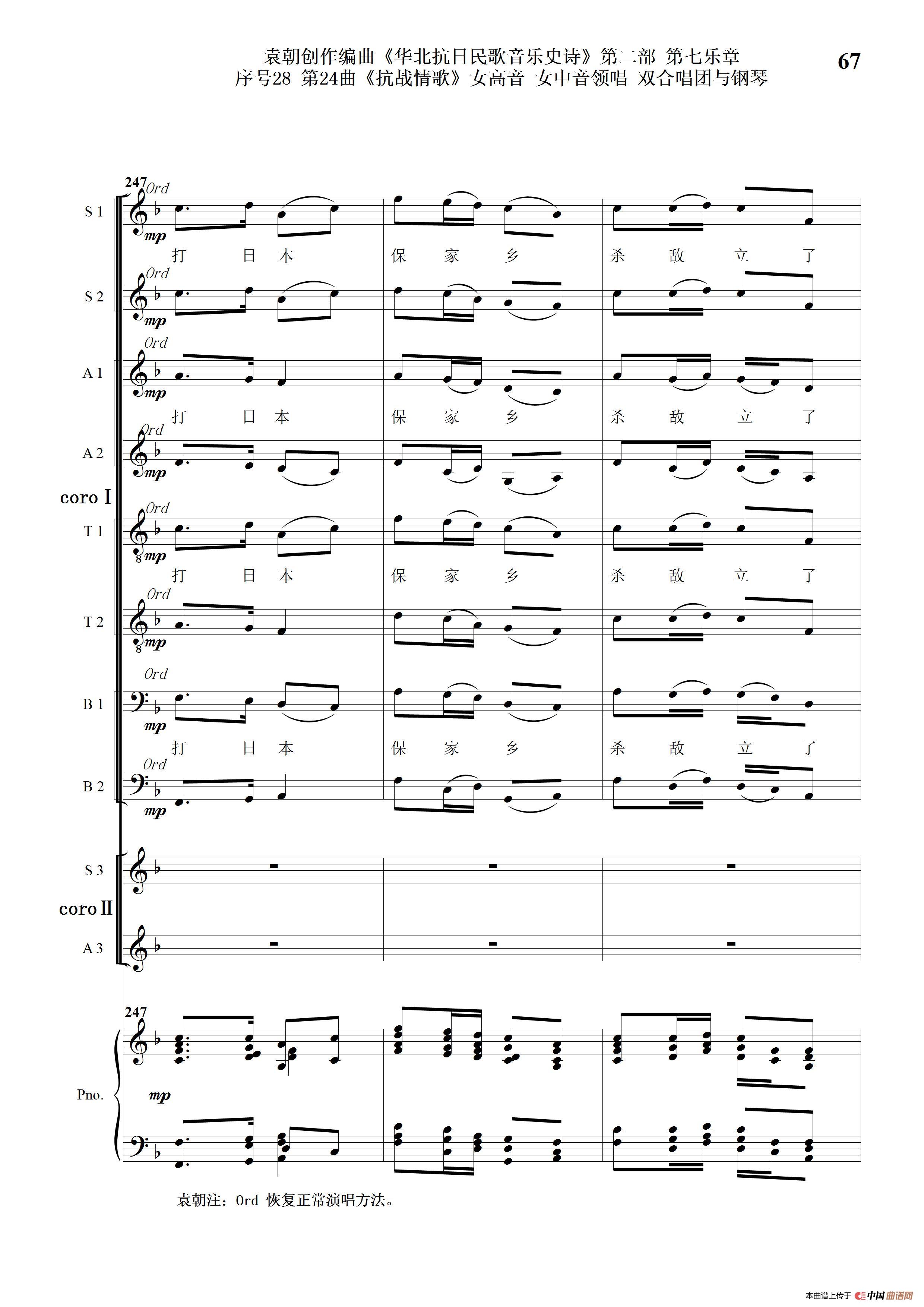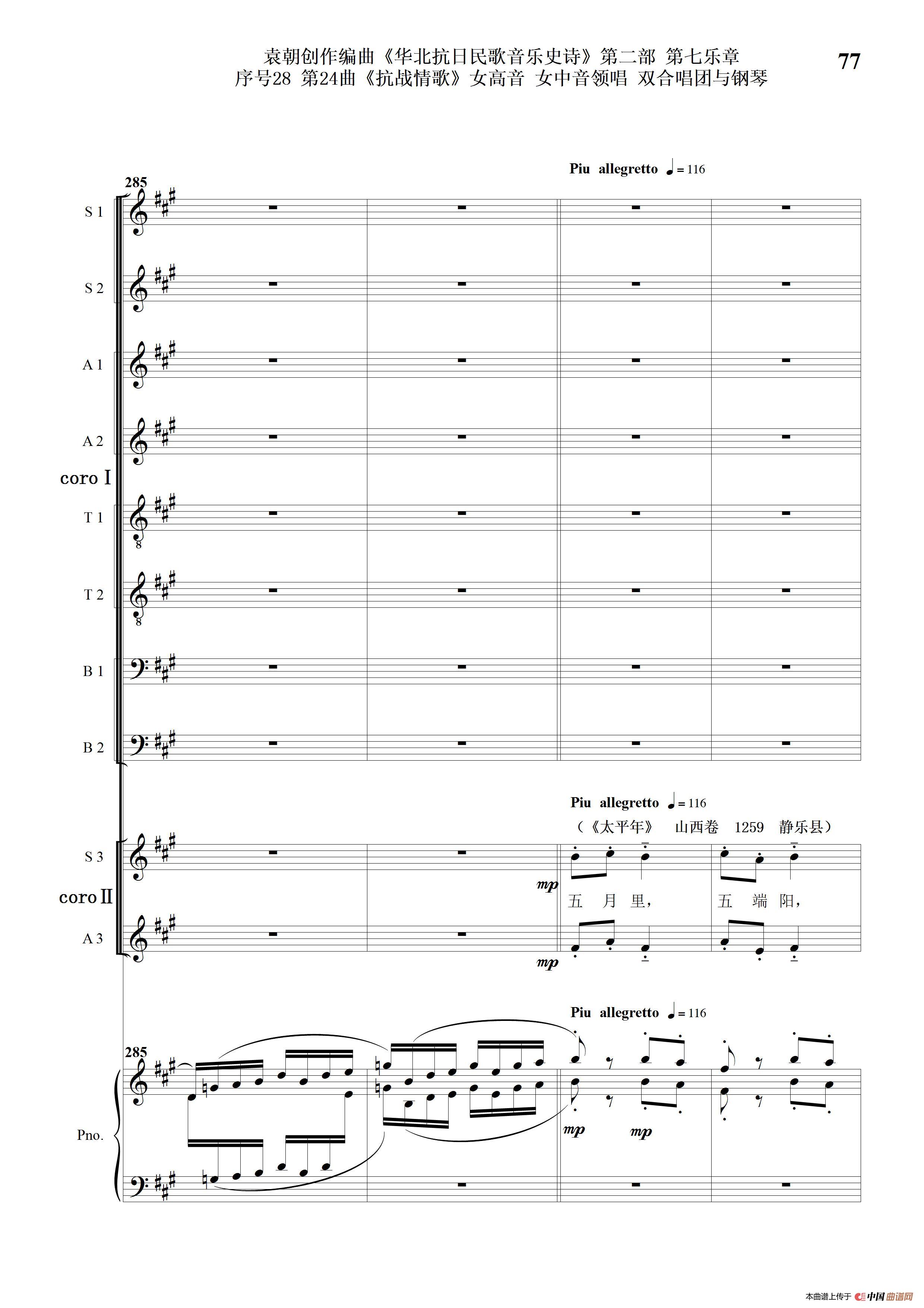 序号28第24曲《抗战情歌》女高音 女中音领唱 双合唱团与钢琴