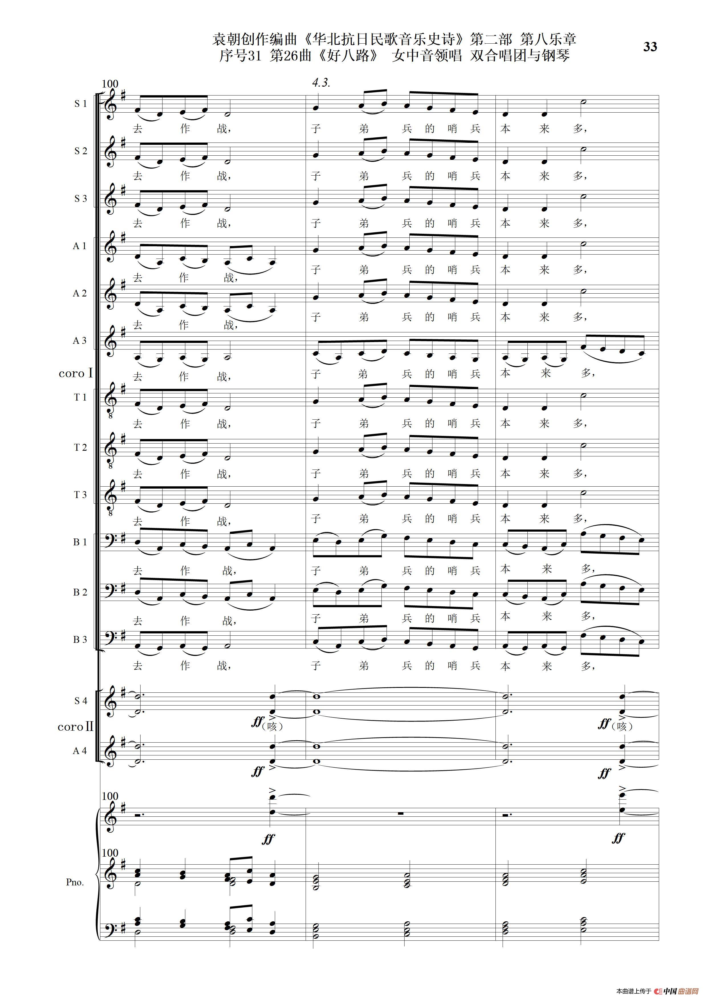 关于《序号31第26曲《好八路》双合唱团与钢琴》曲谱的评论