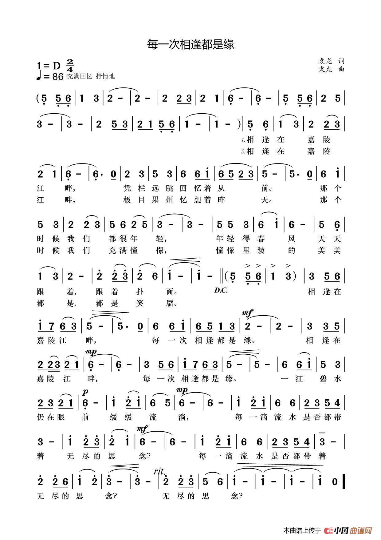 相逢在嘉陵江畔,凭栏远眺回忆着从前。那个时候我们都很年轻,年轻得春风天天跟着扑面。相逢在嘉陵江畔,每一次相逢都是缘。