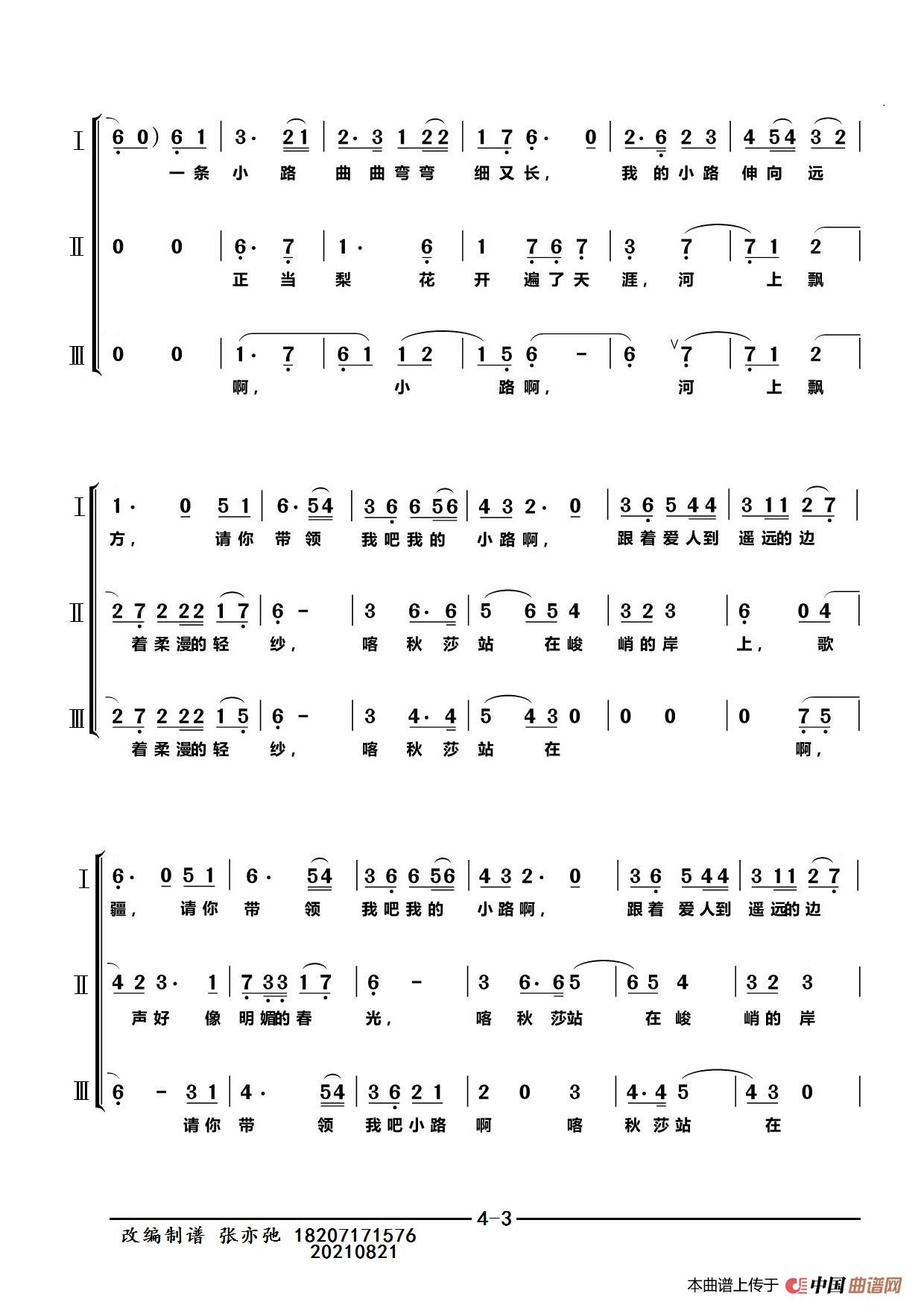 小路.喀秋莎(亦弛改编)(同声三部合唱)
