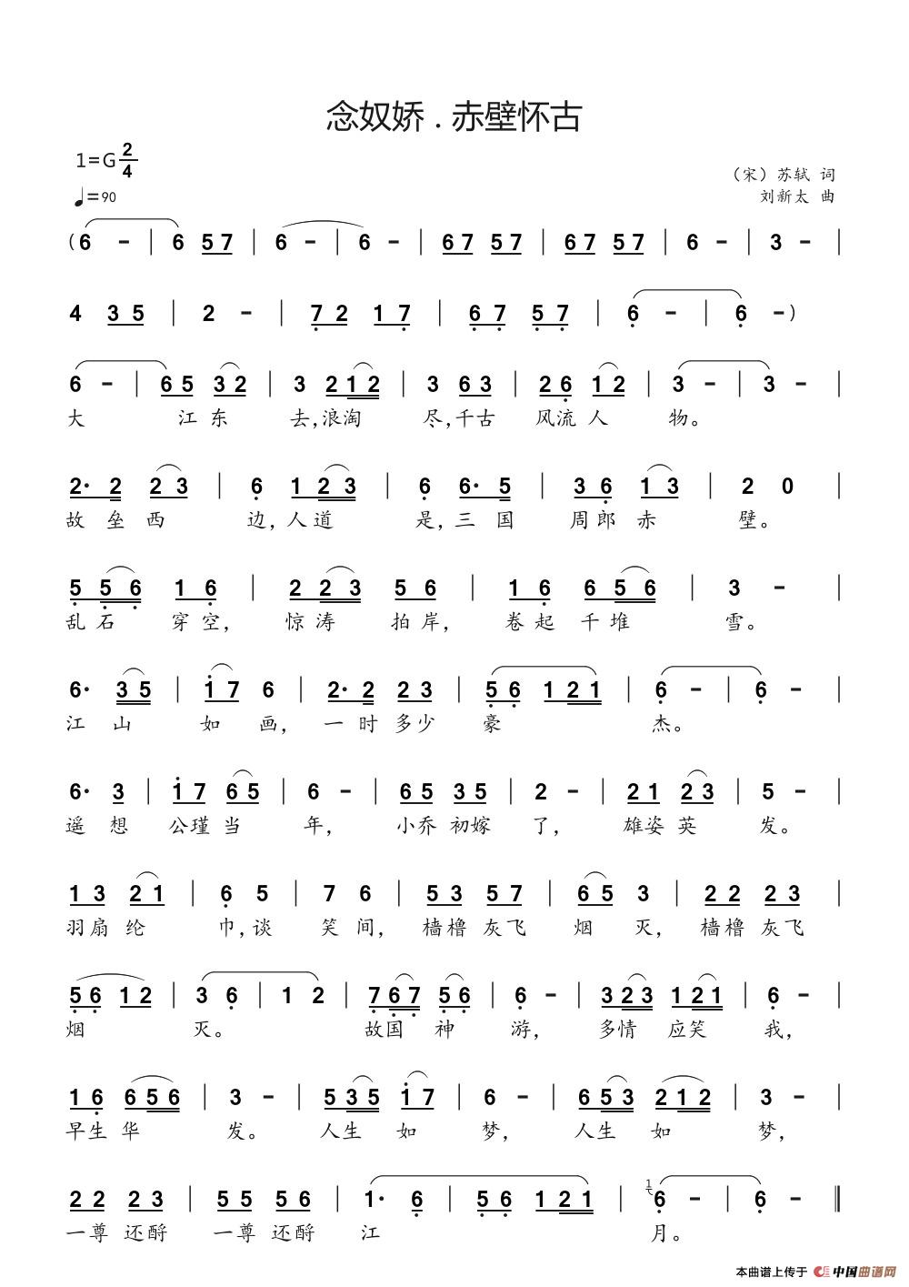 关于《念奴娇 . 赤壁怀古》曲谱的评论