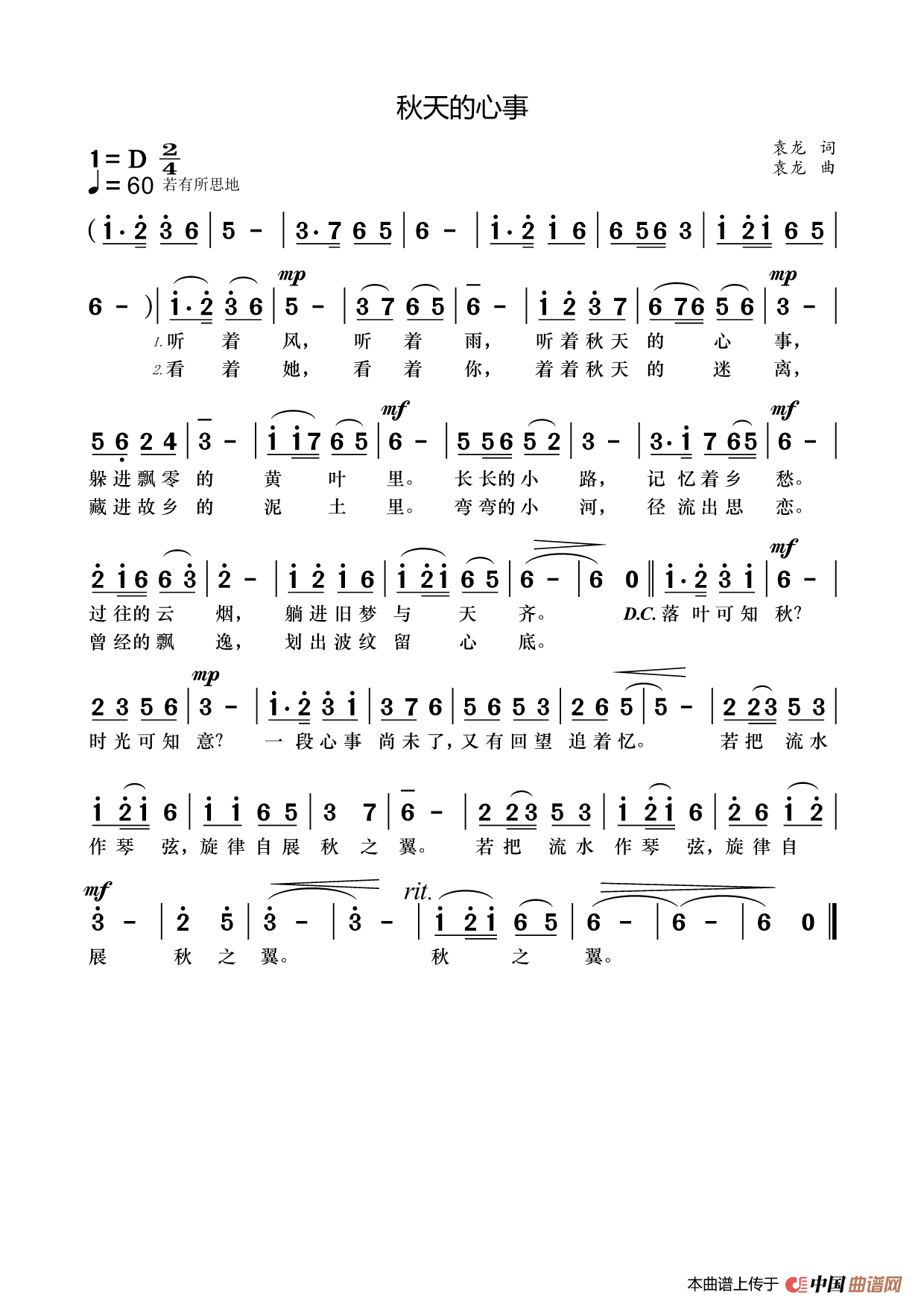 听着风,听着雨,听着秋天的心事,躲进飘零的黄叶里。听着风,听着雨,听着秋天的旋律。