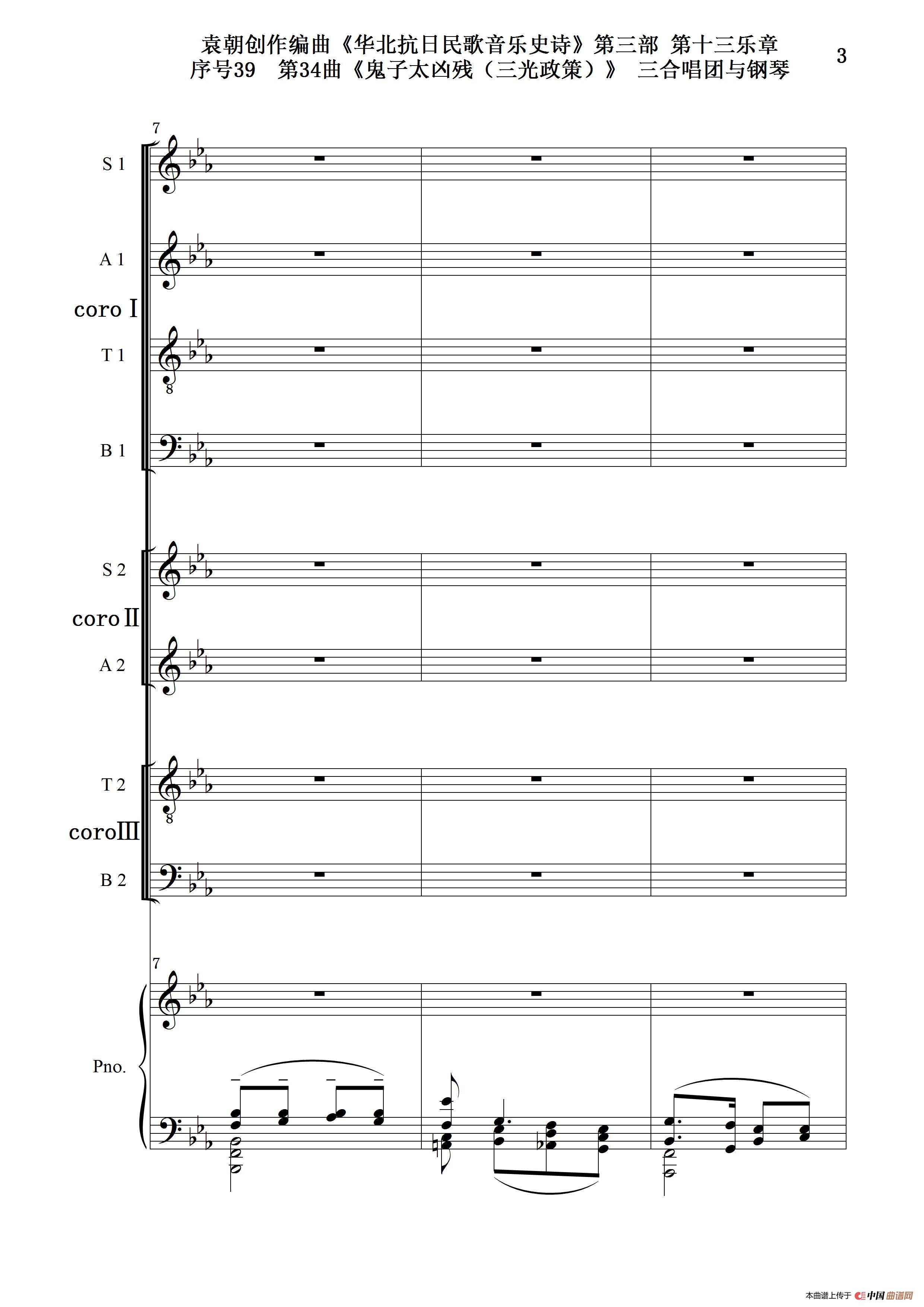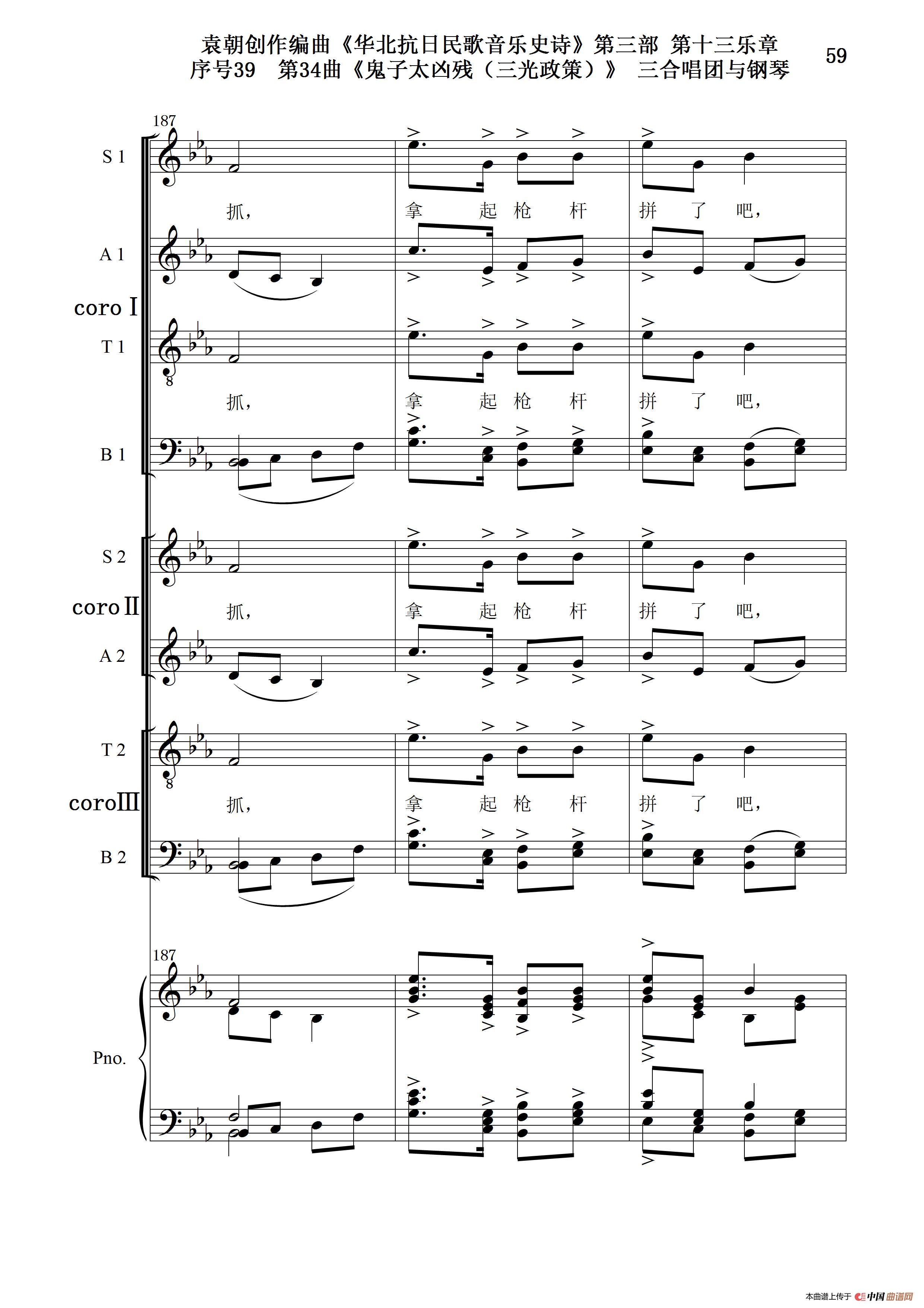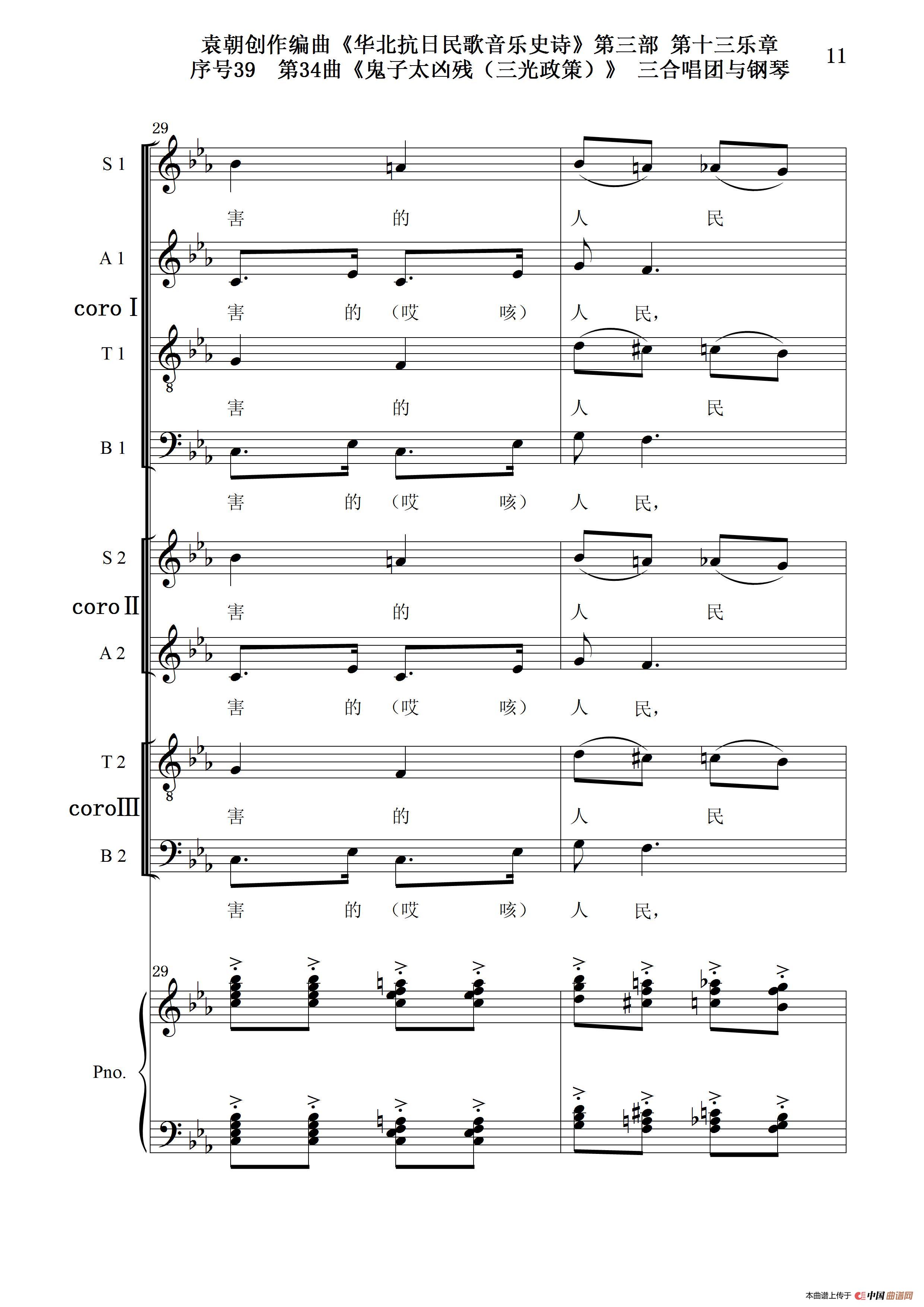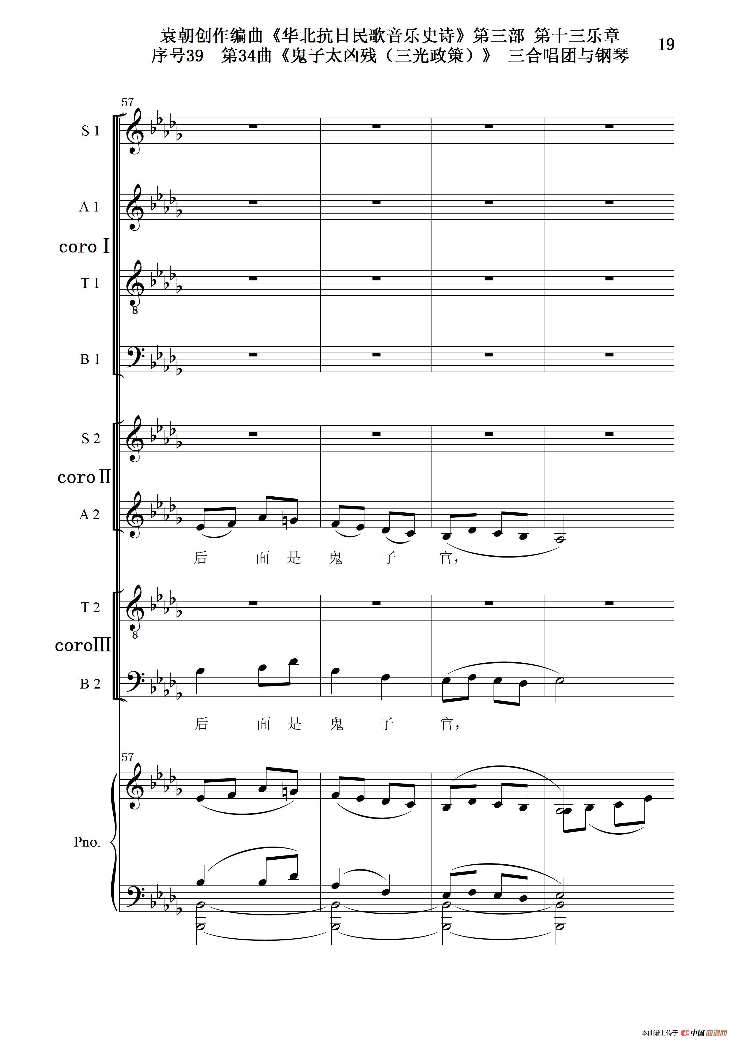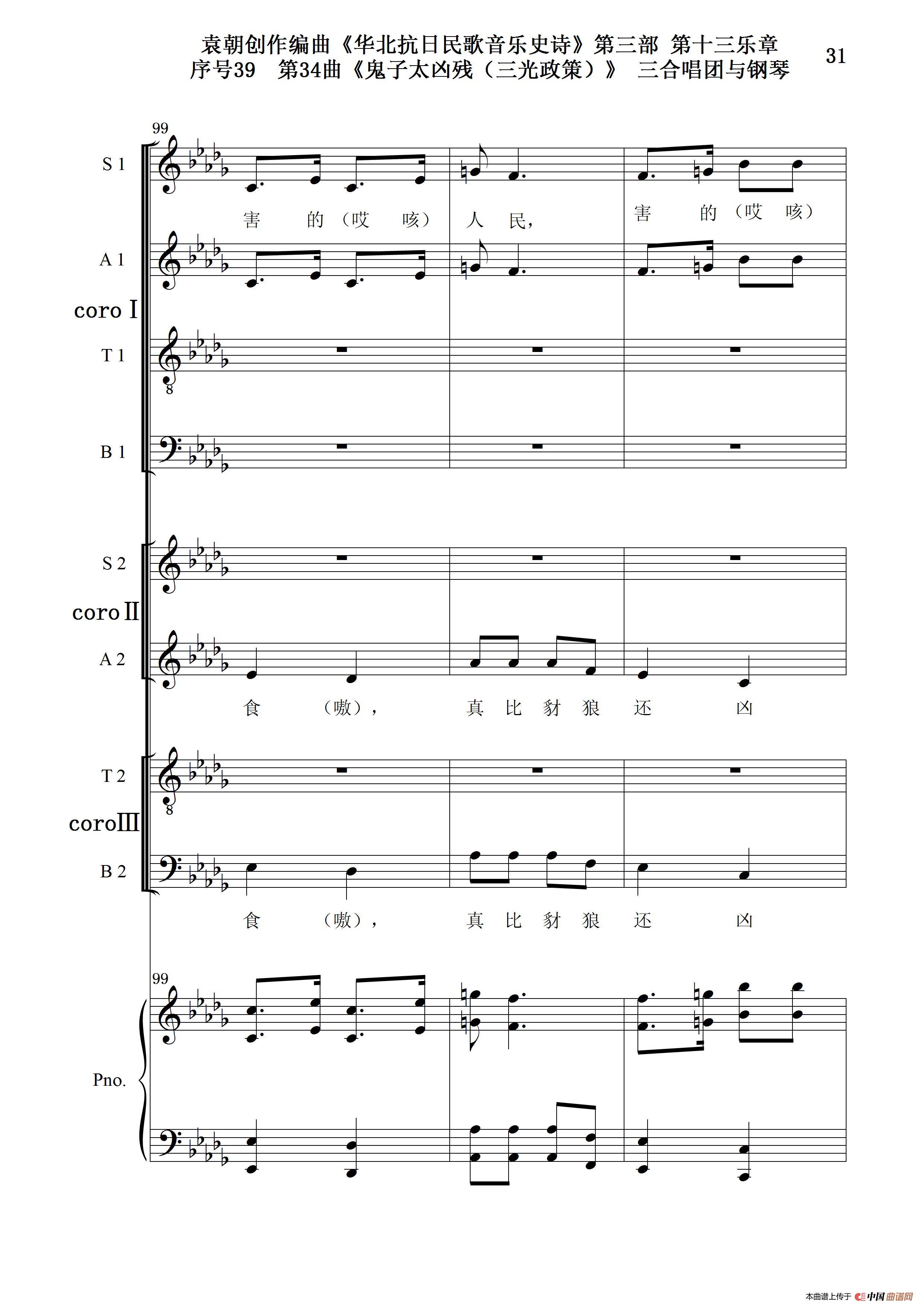 序号39第34曲《鬼子太凶残(三光政策)》三合唱团与钢琴