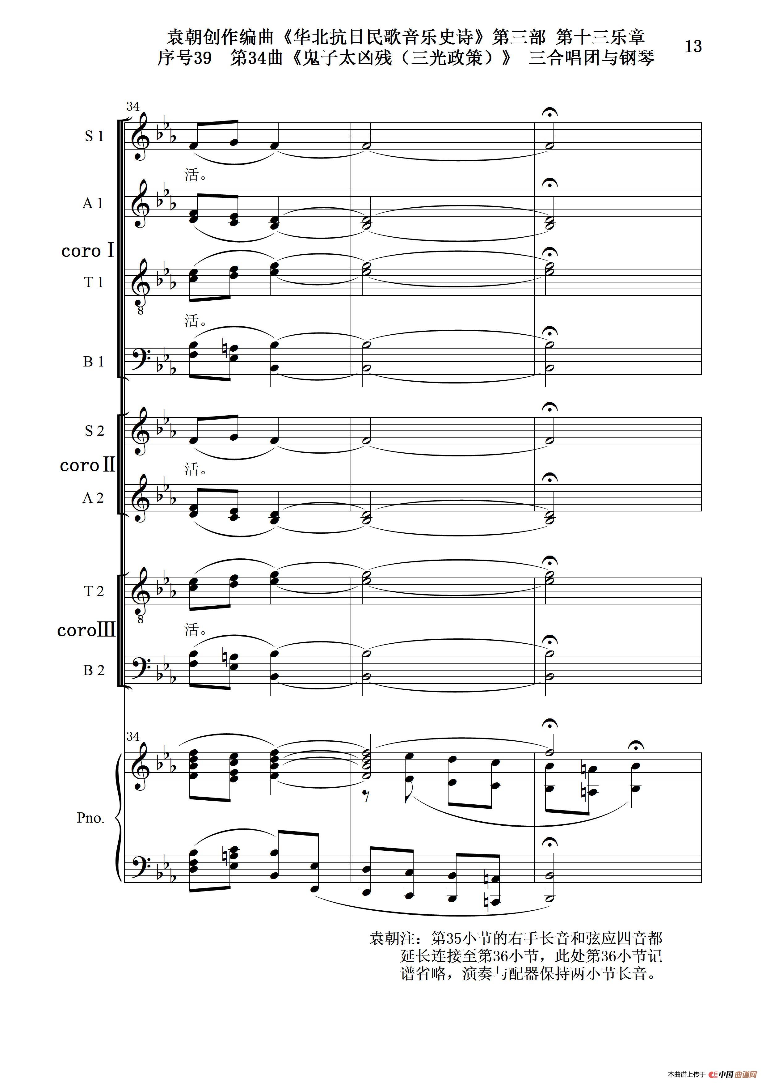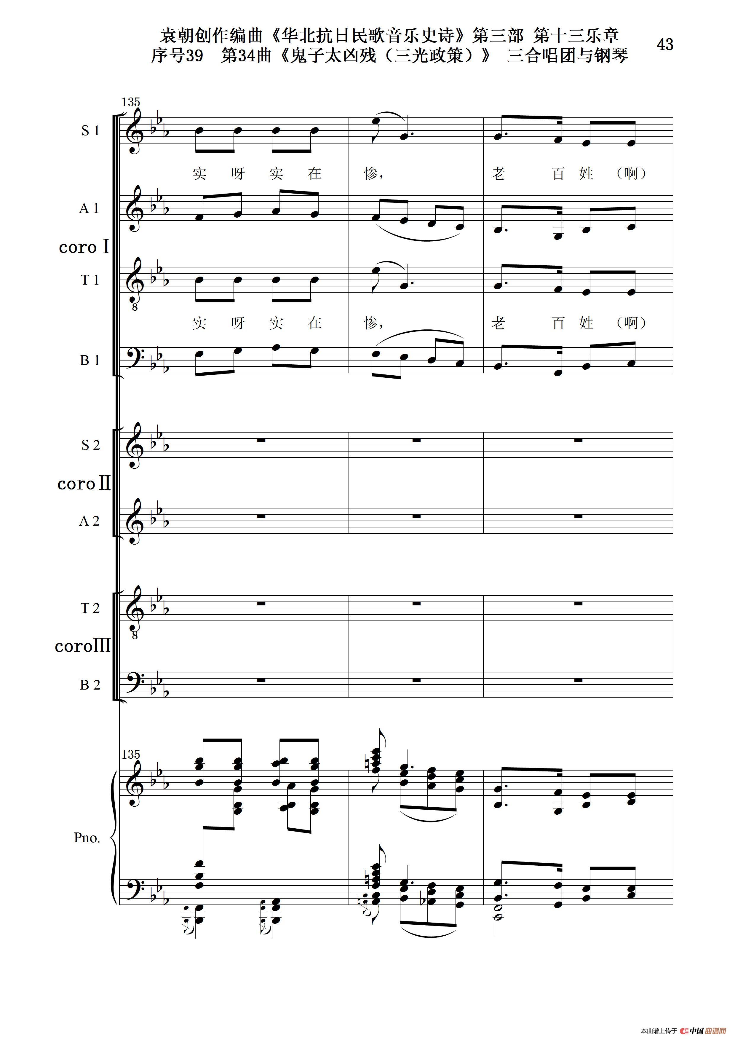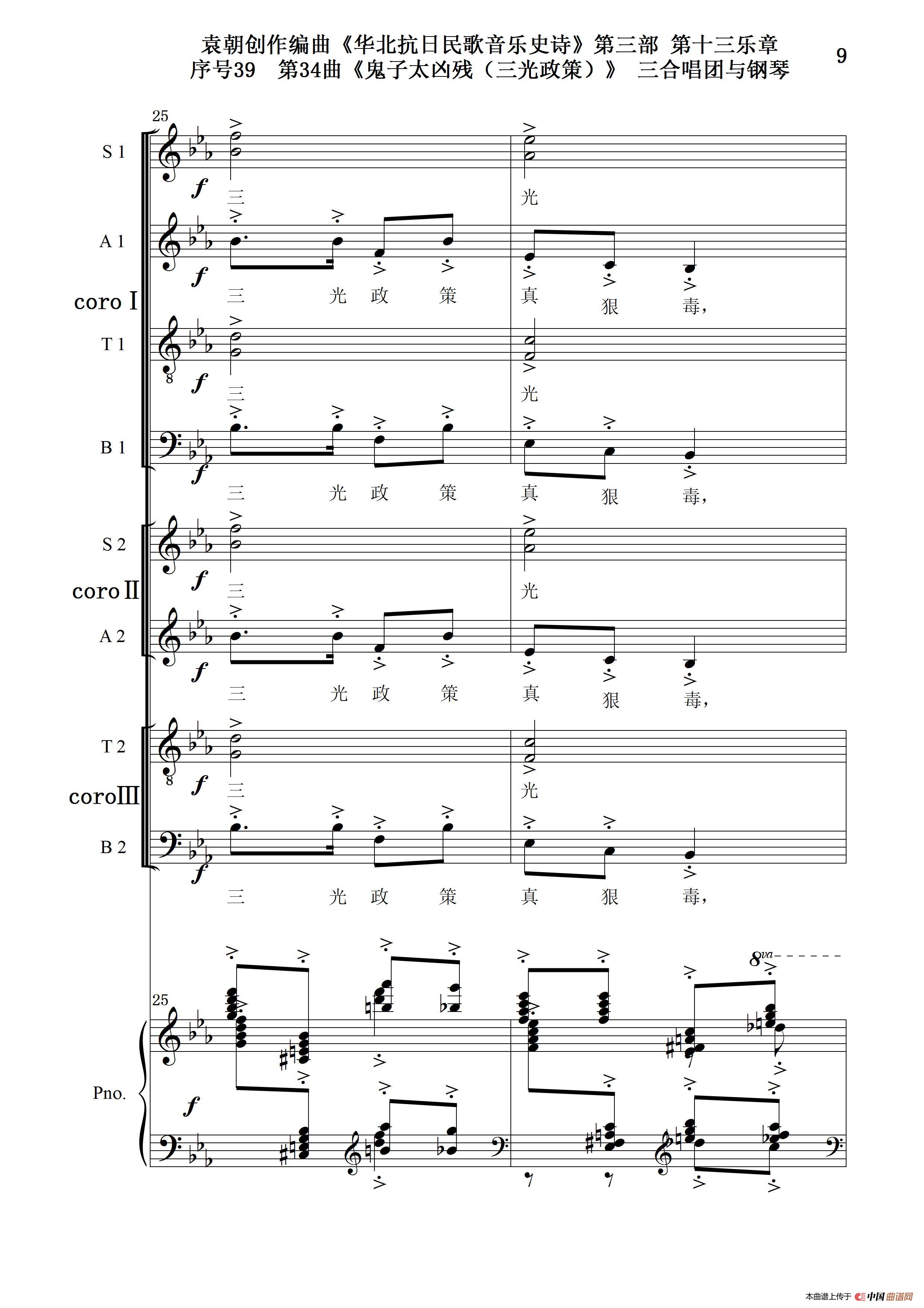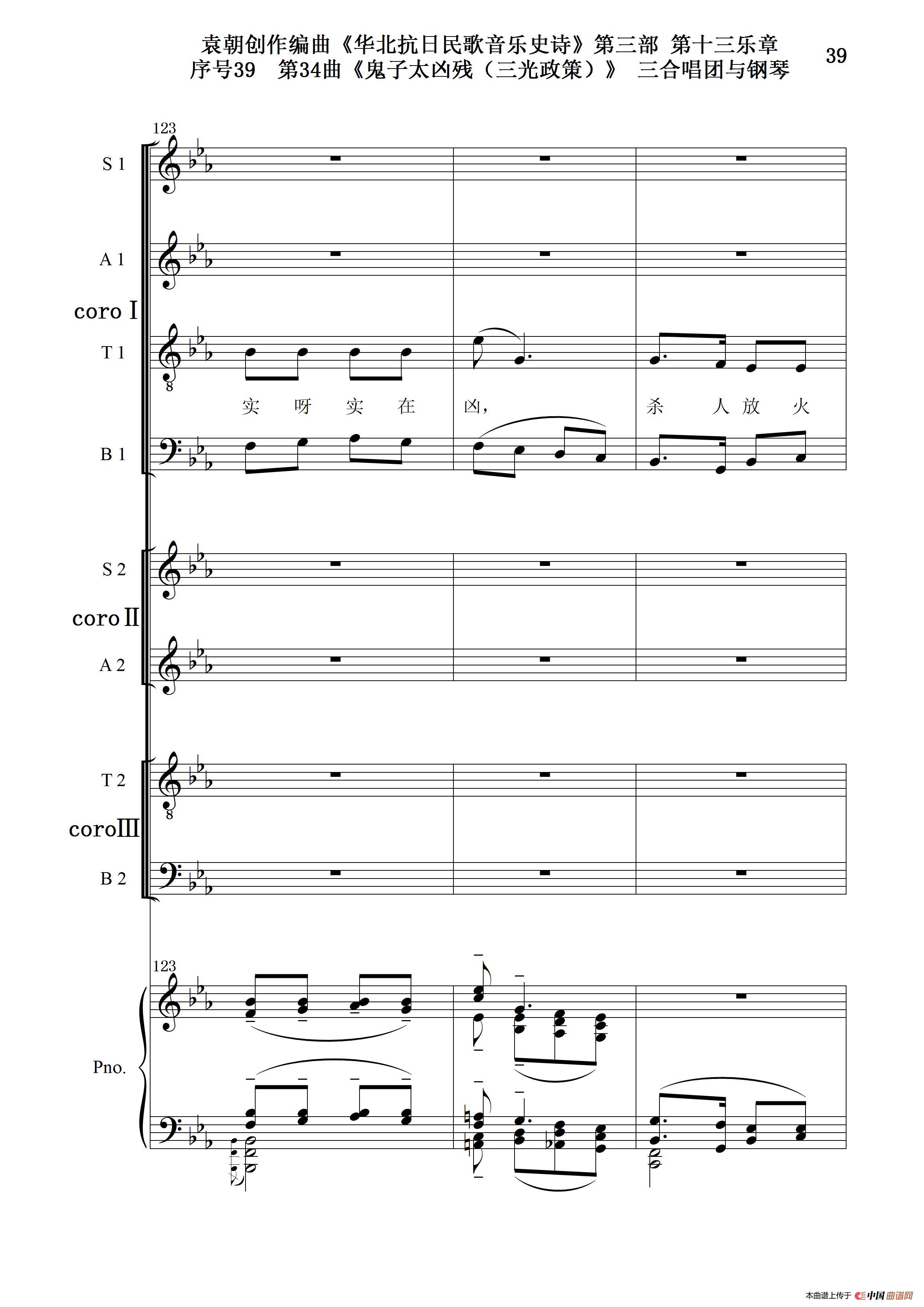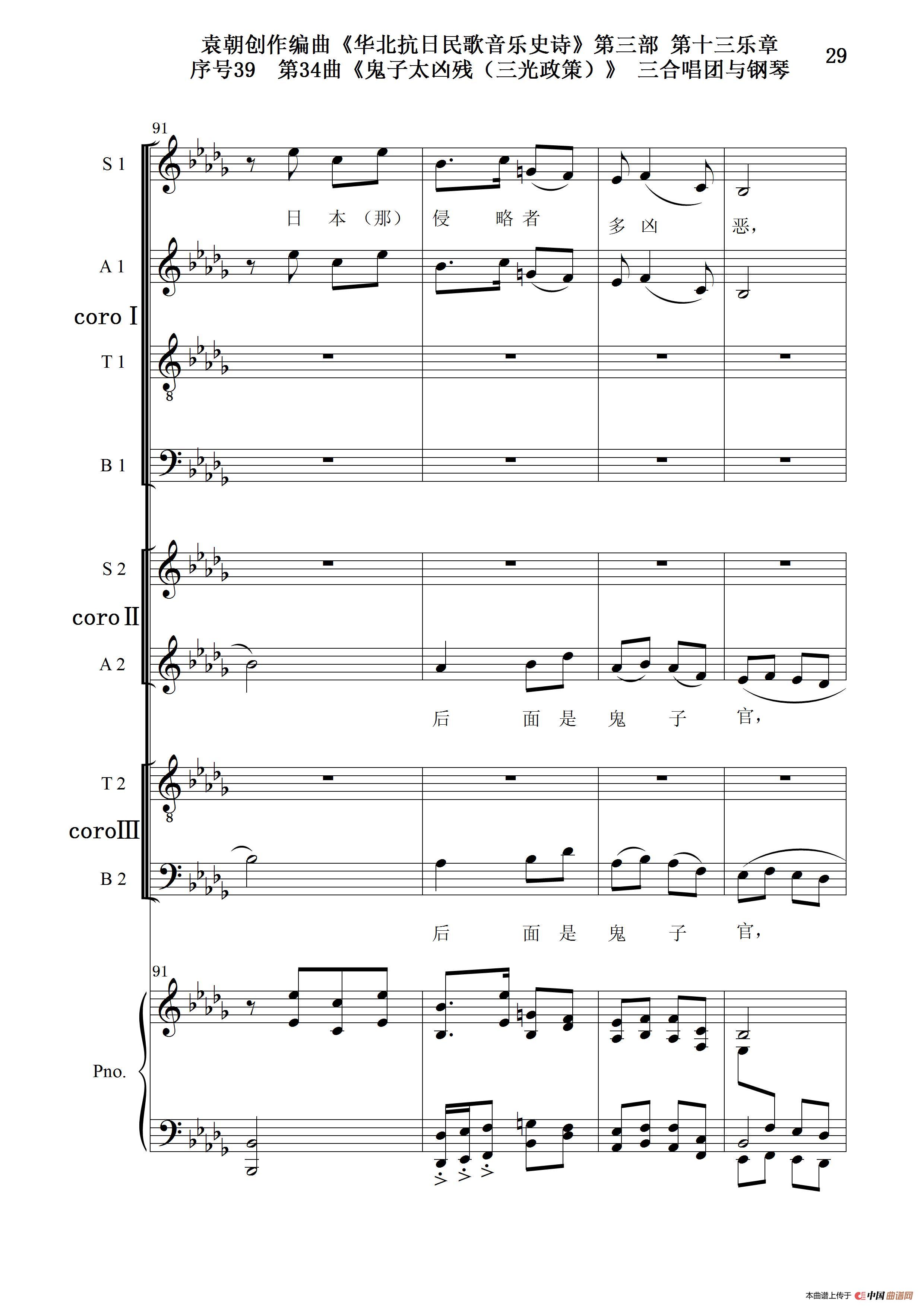 序号39第34曲《鬼子太凶残(三光政策)》三合唱团与钢琴