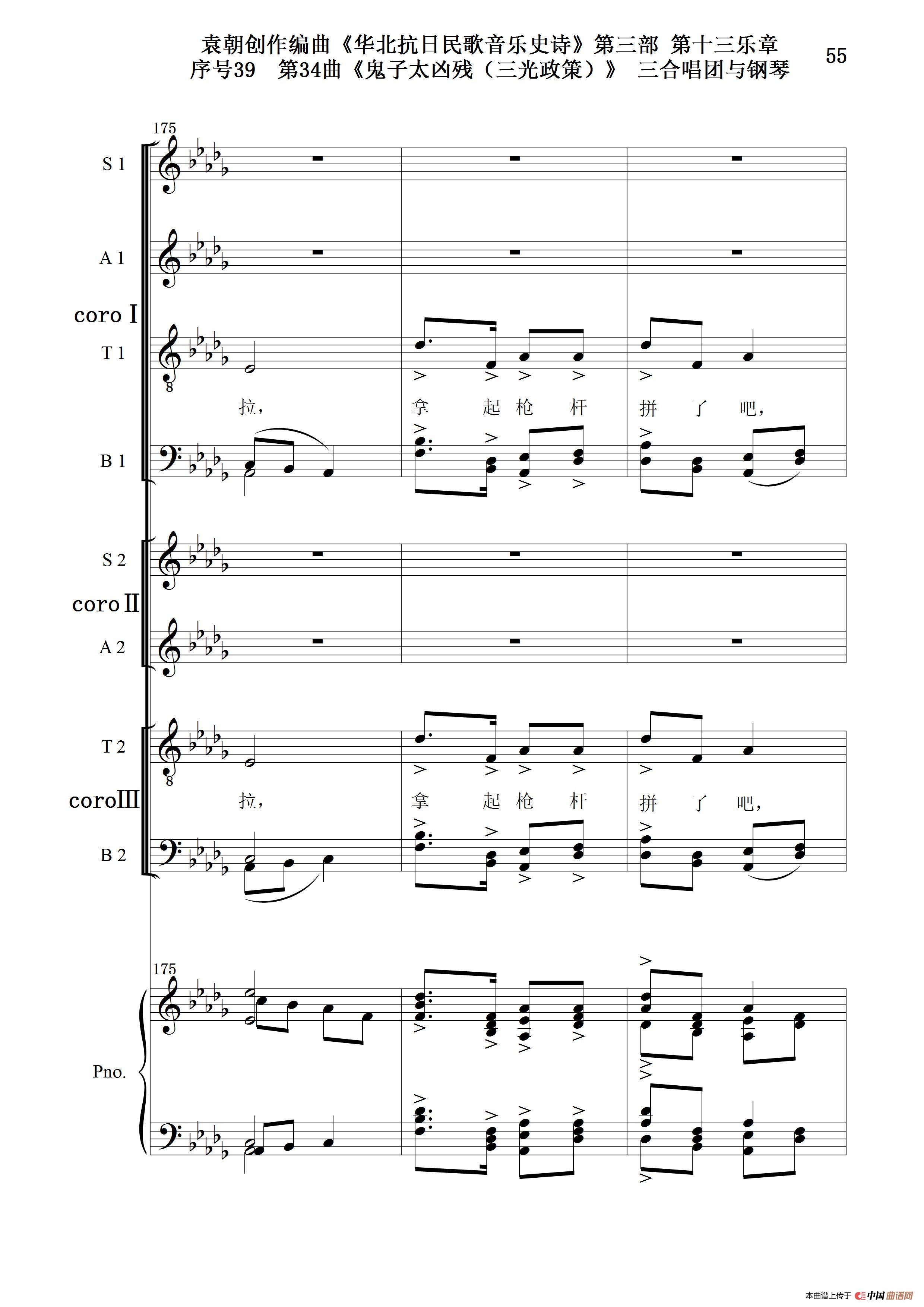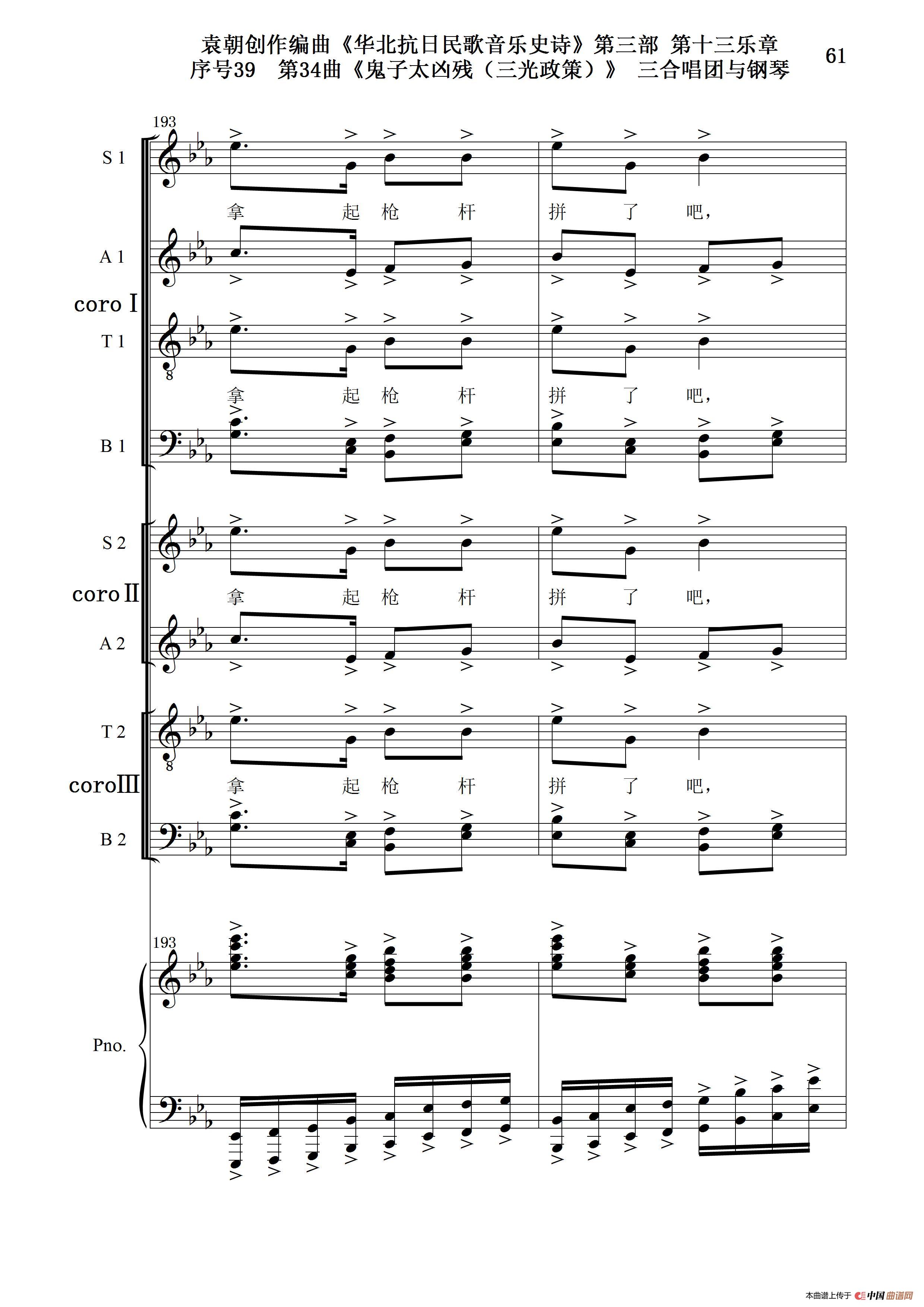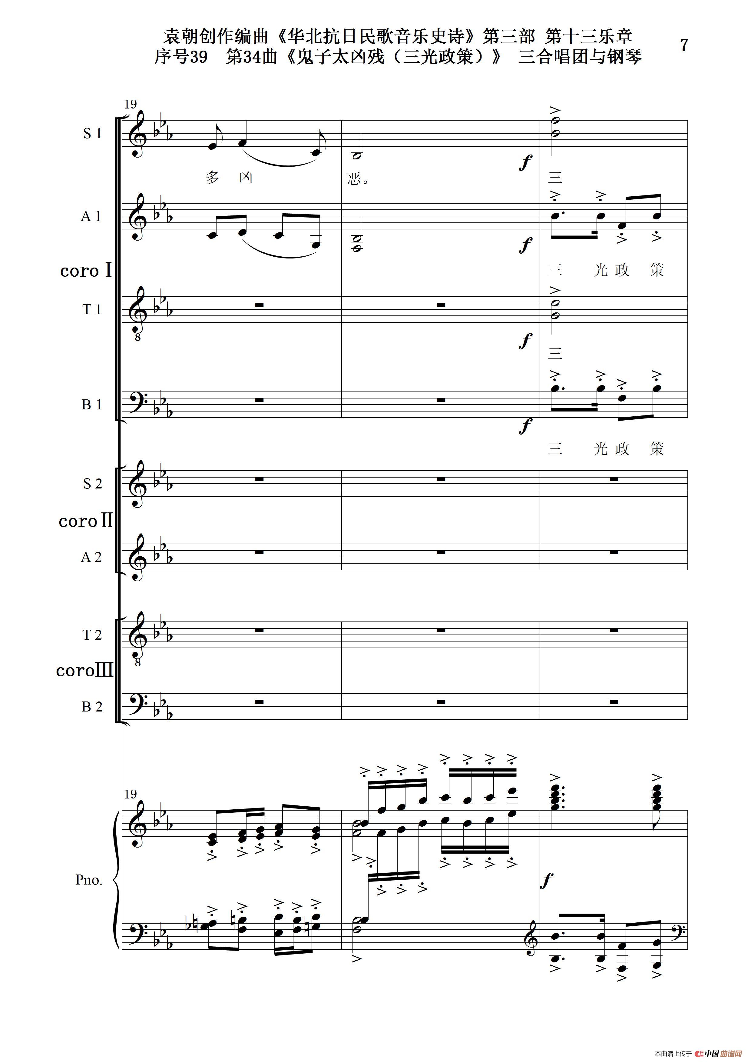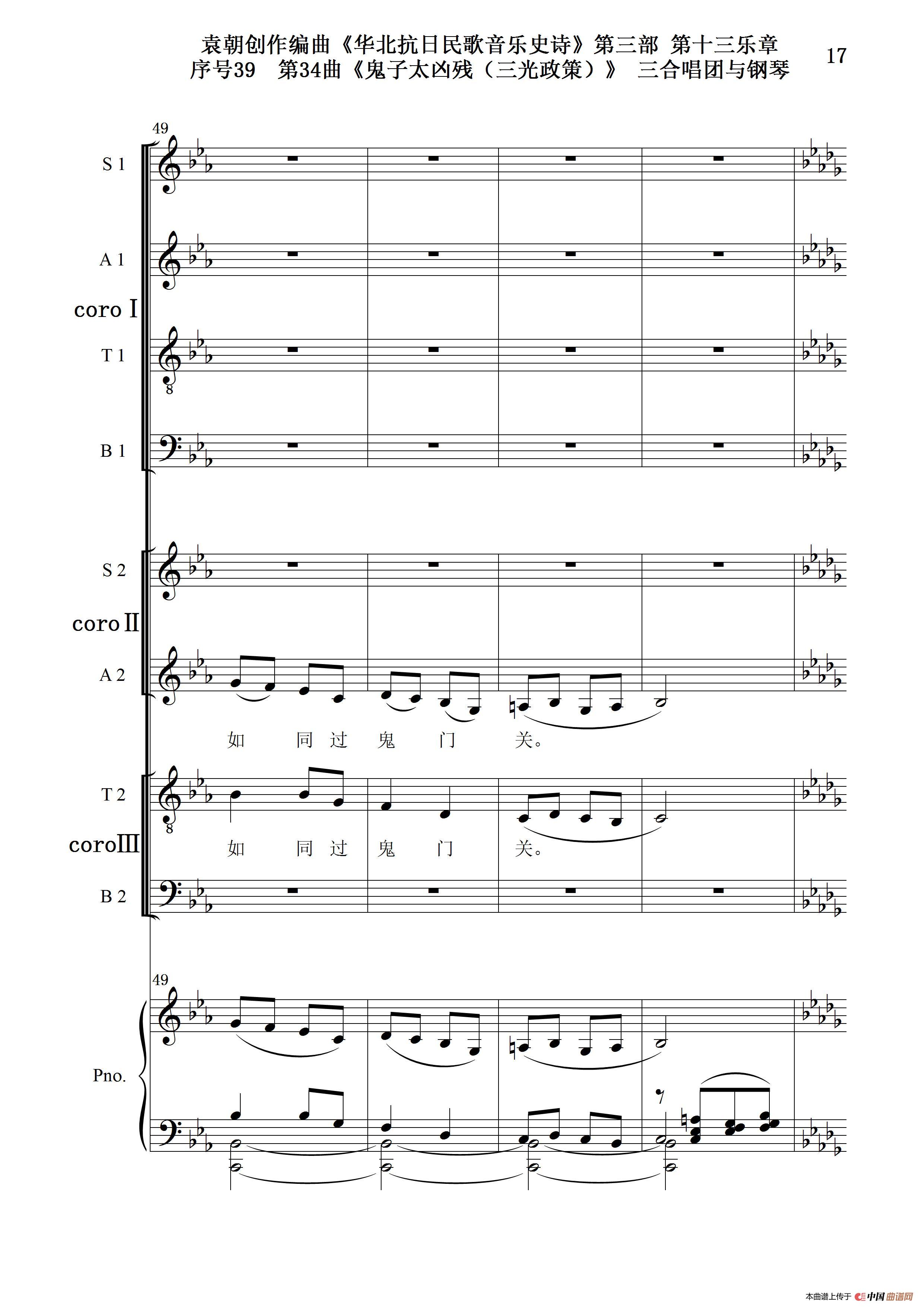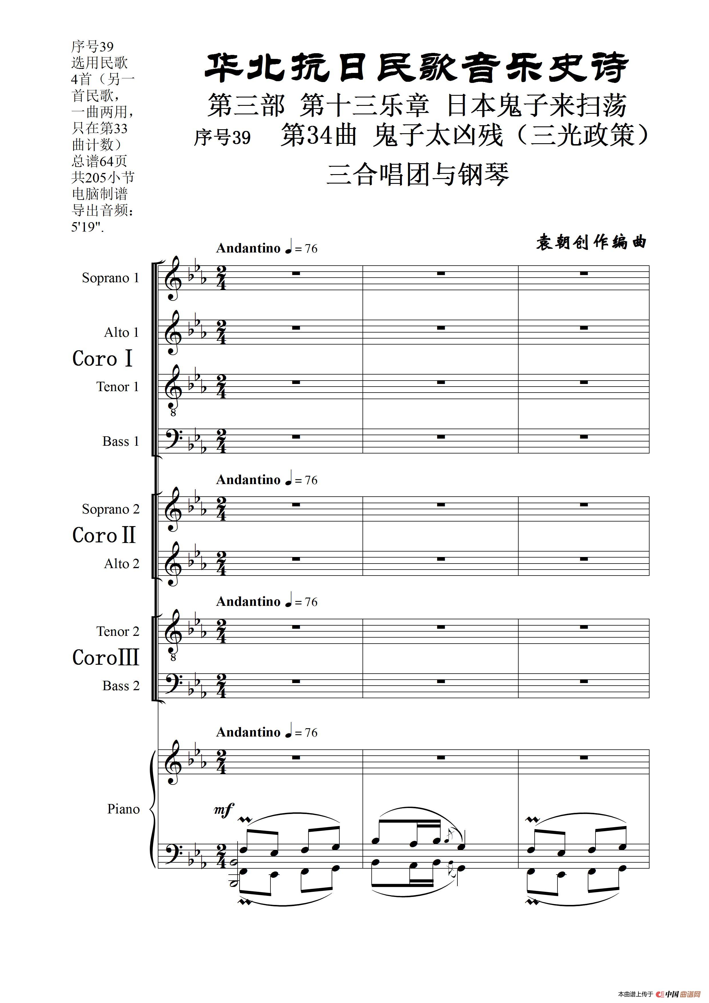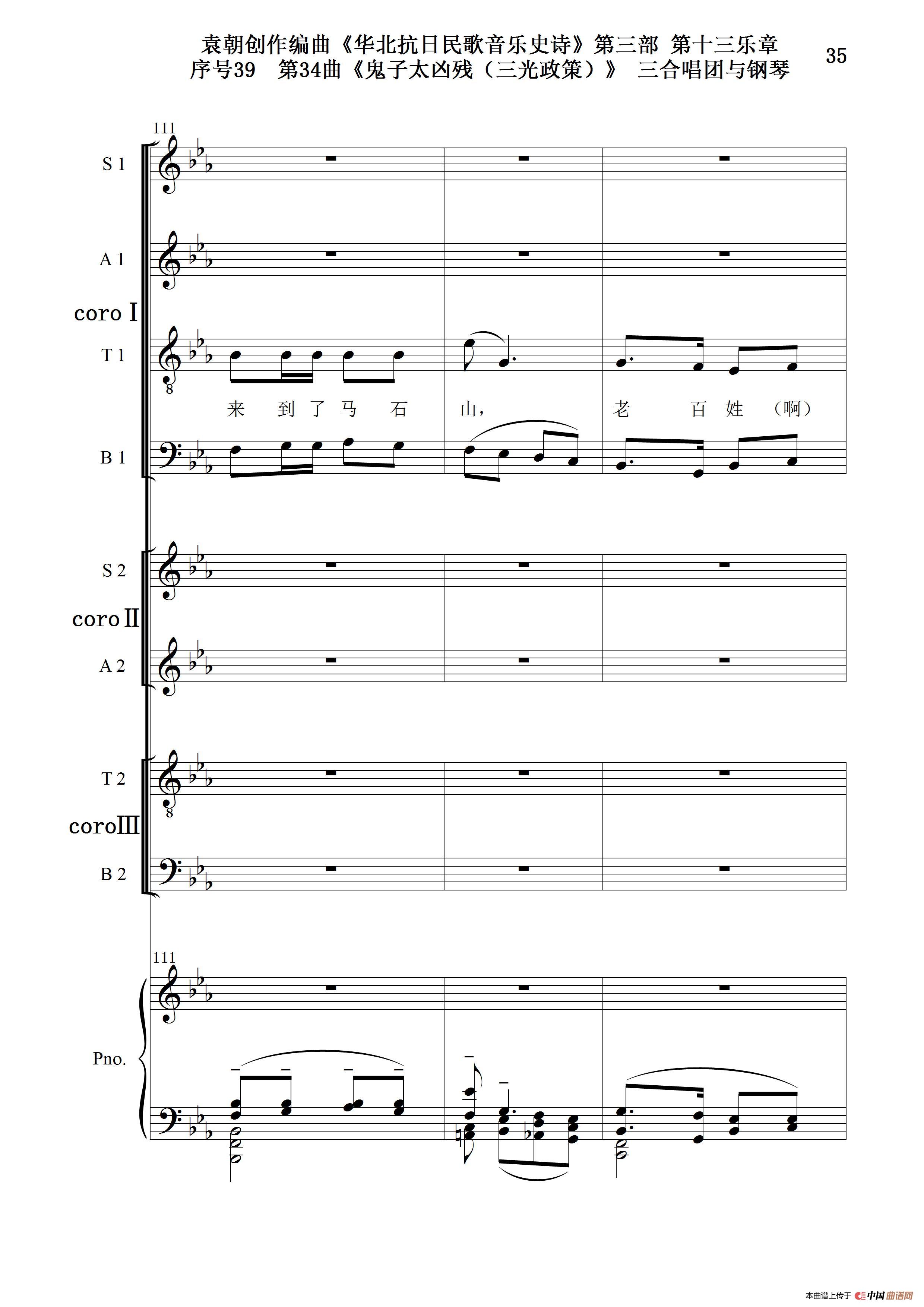 序号39第34曲《鬼子太凶残(三光政策)》三合唱团与钢琴