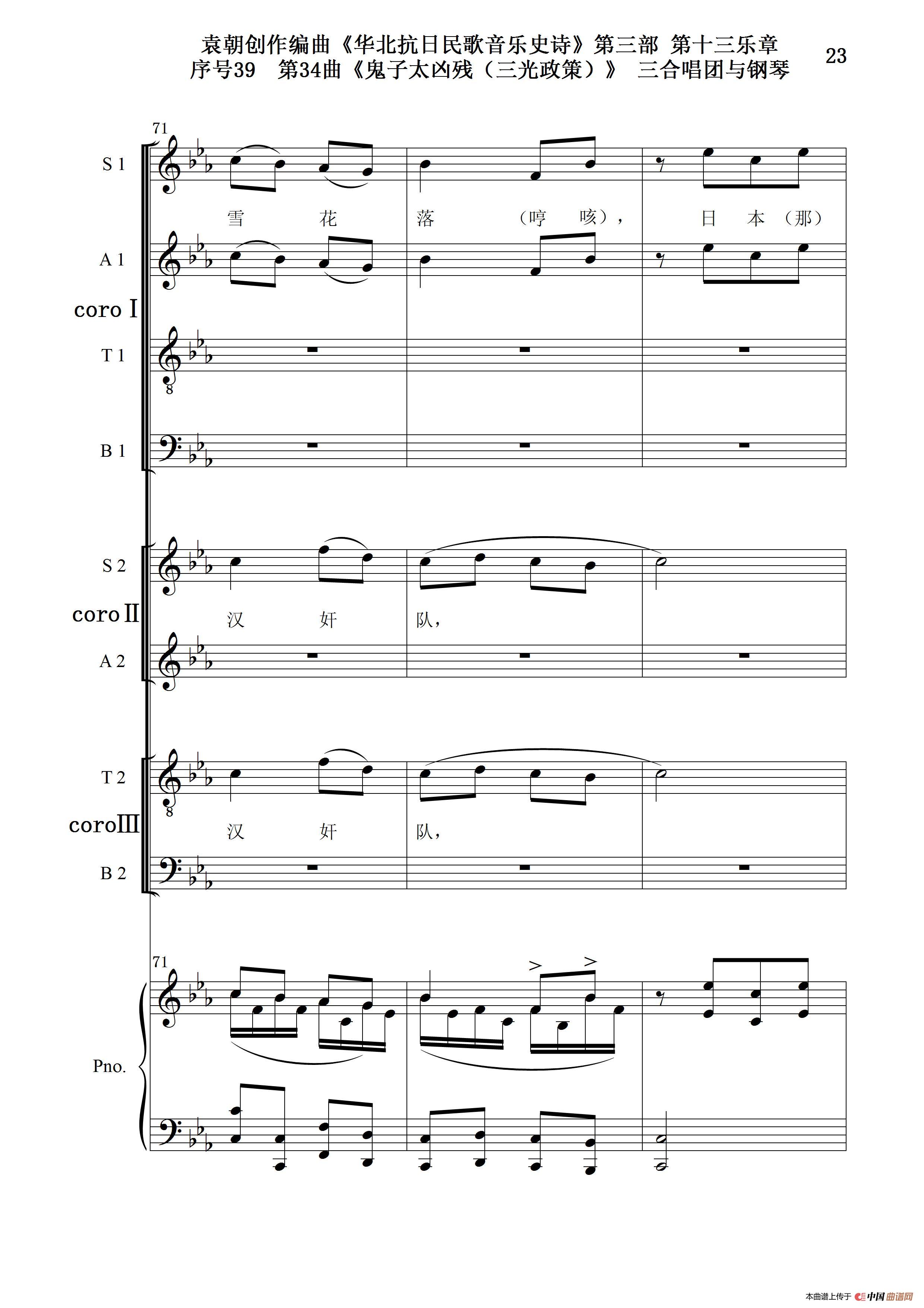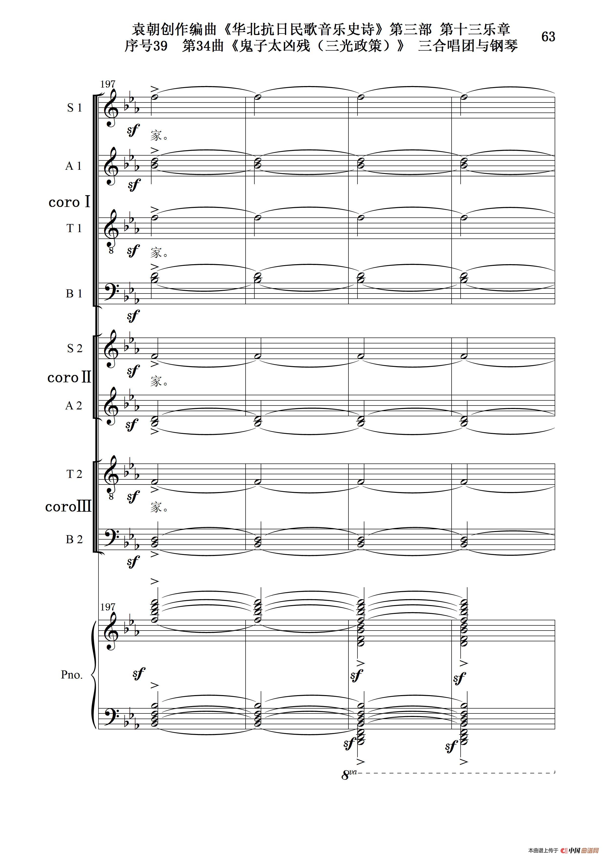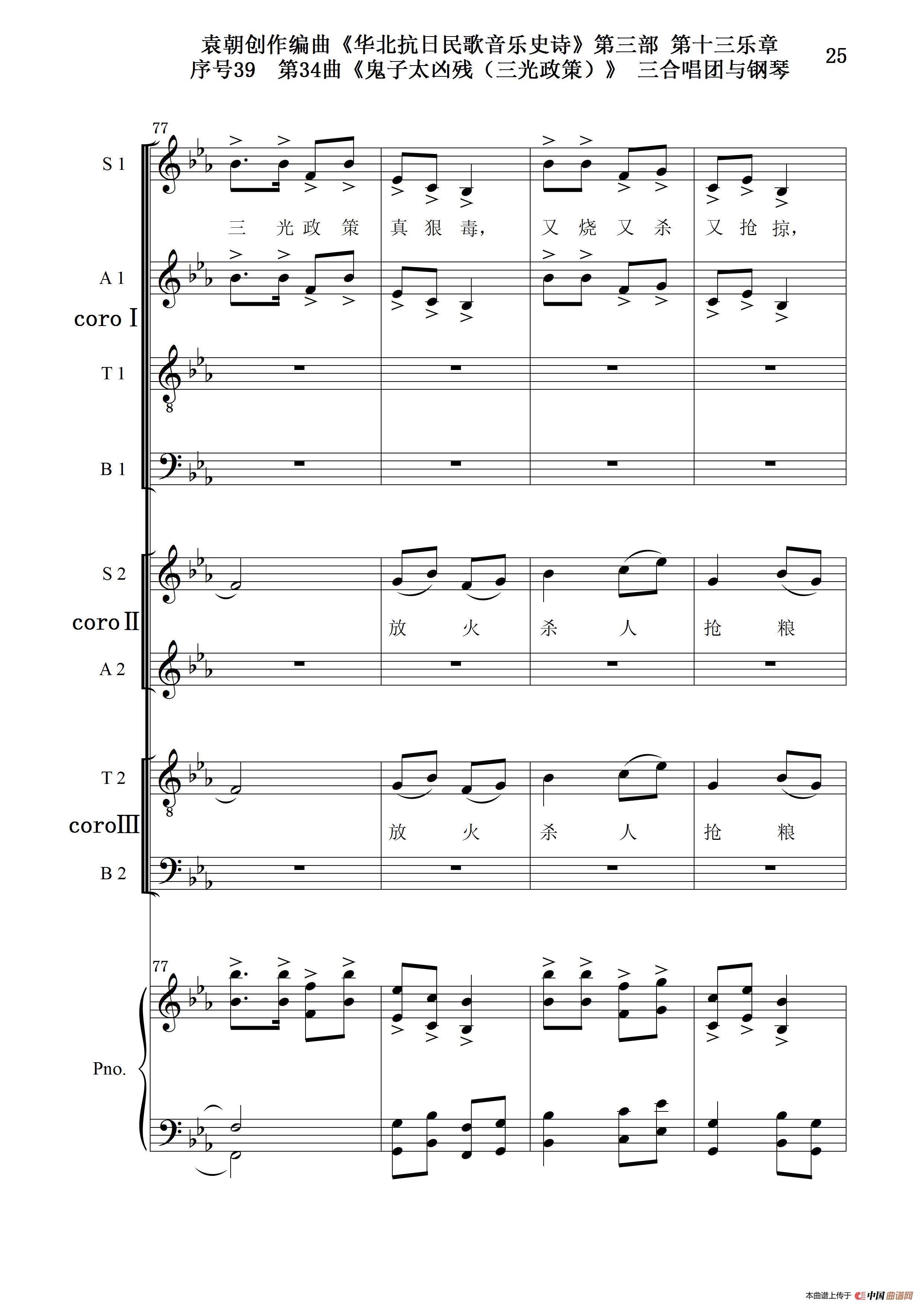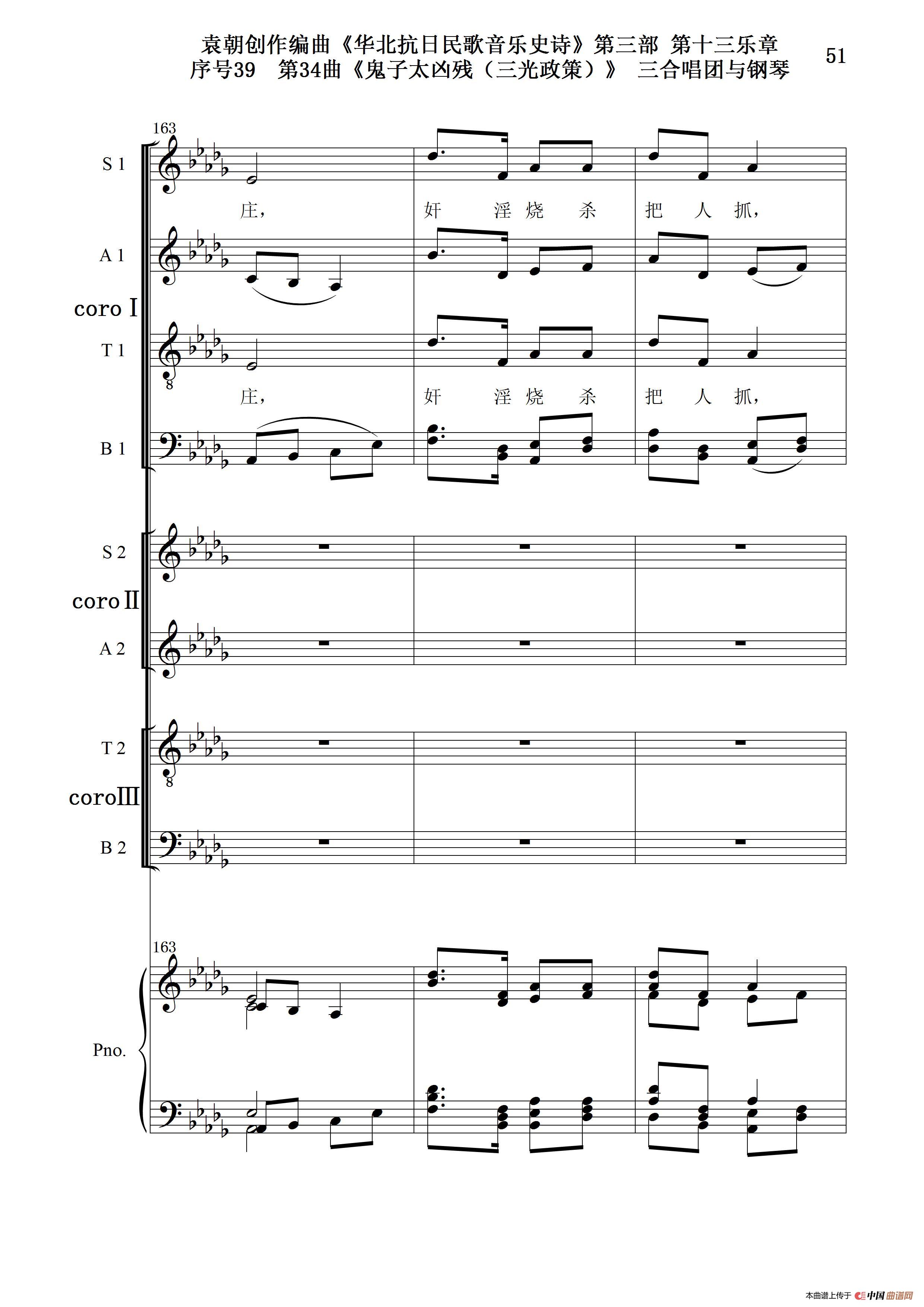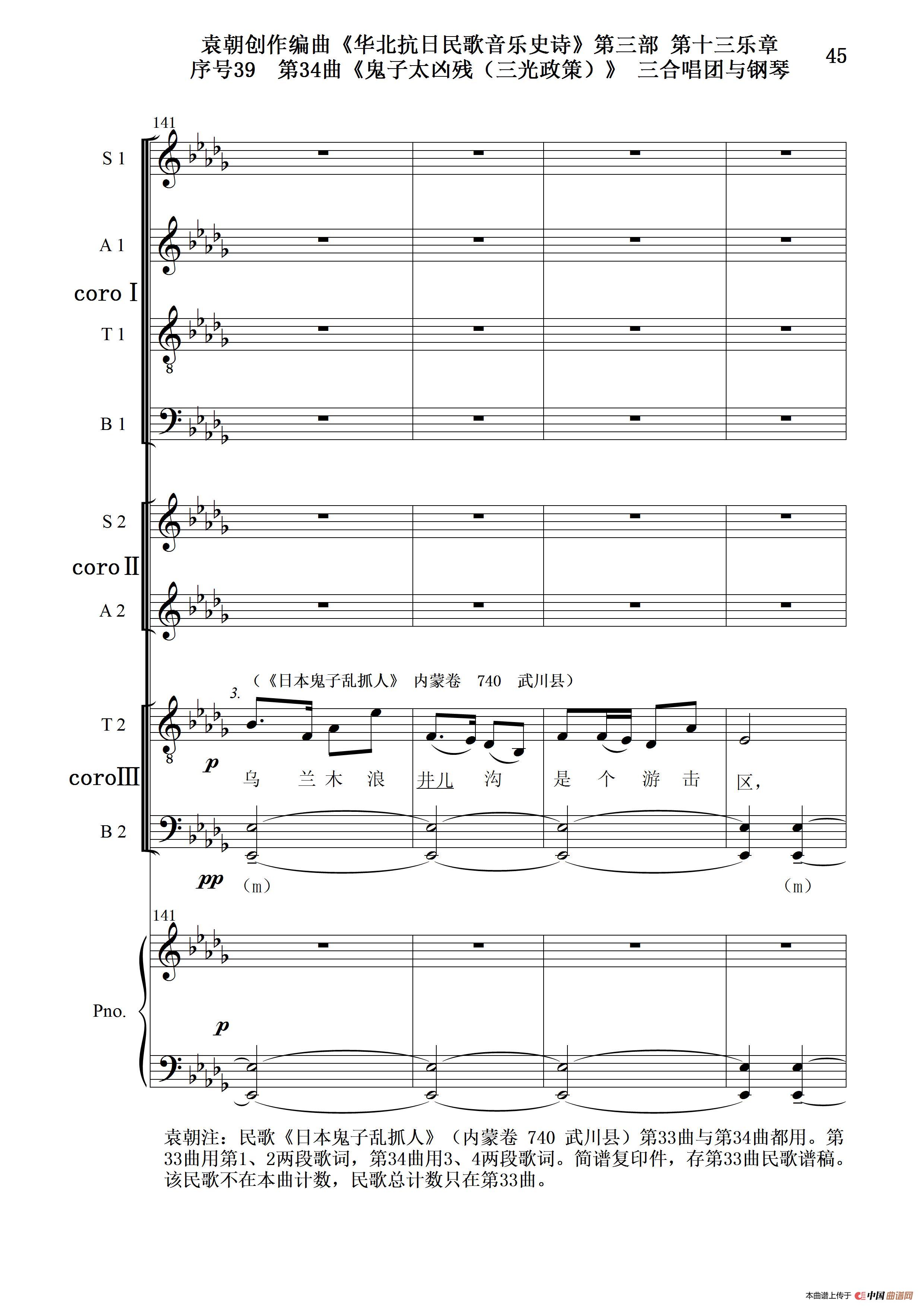序号39第34曲《鬼子太凶残(三光政策)》三合唱团与钢琴