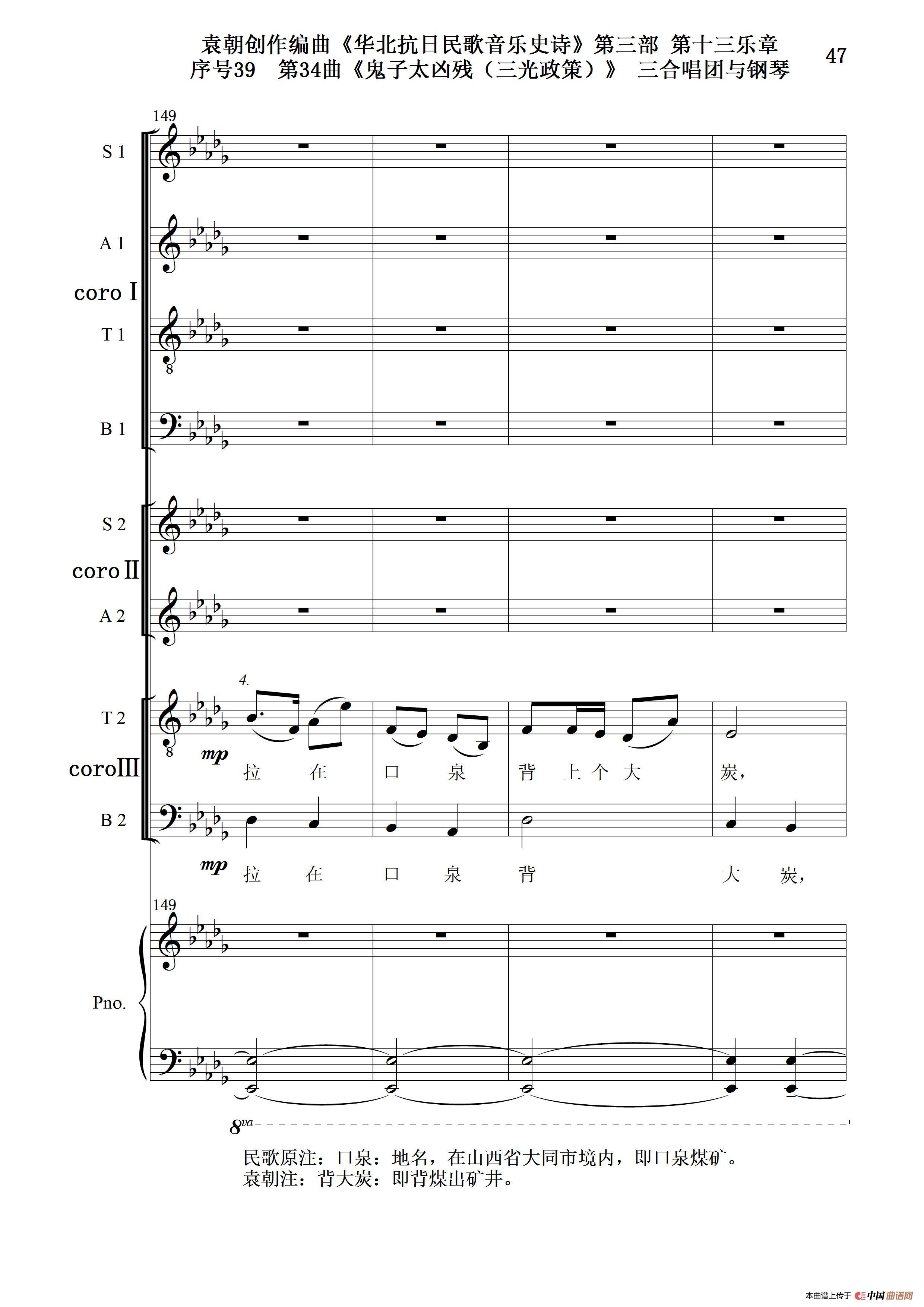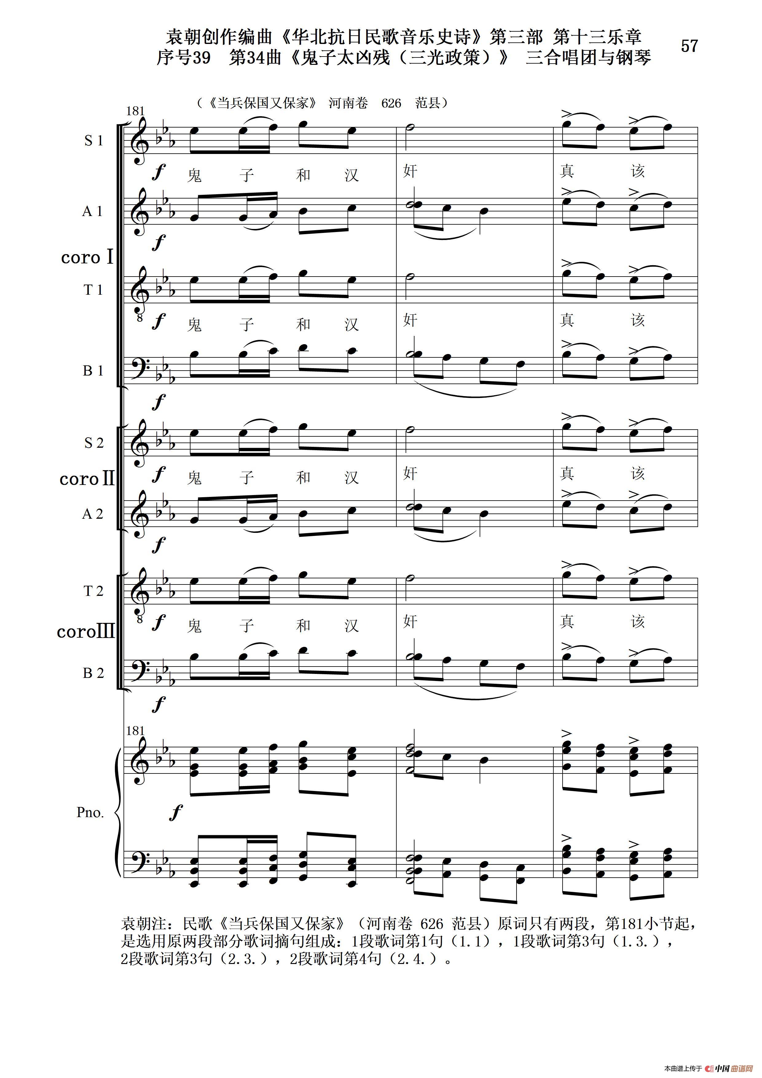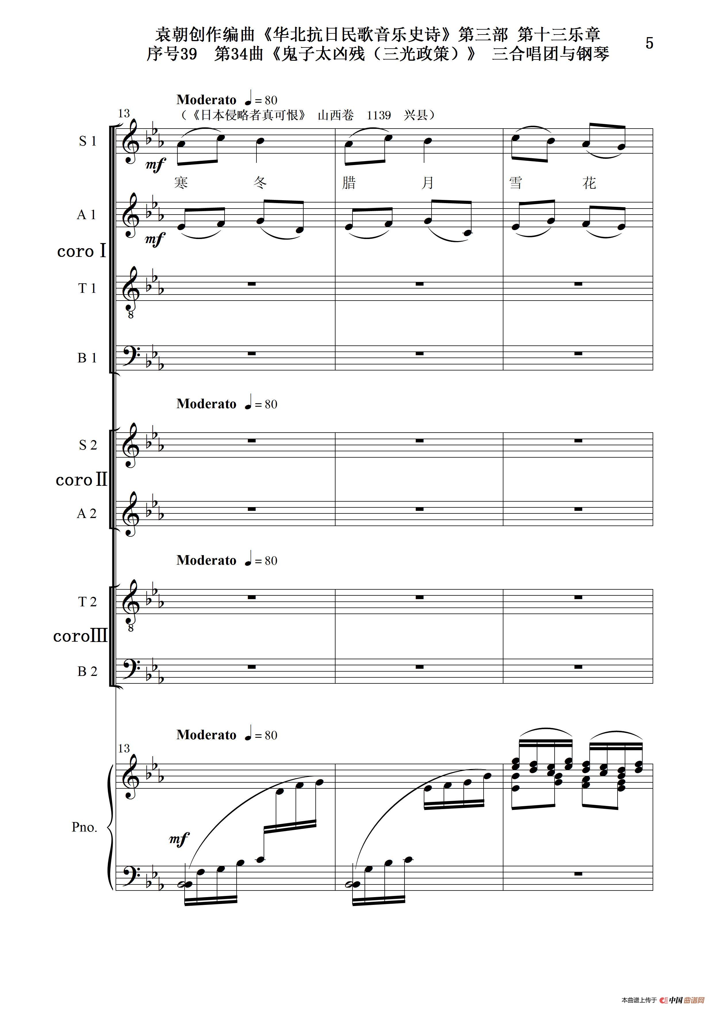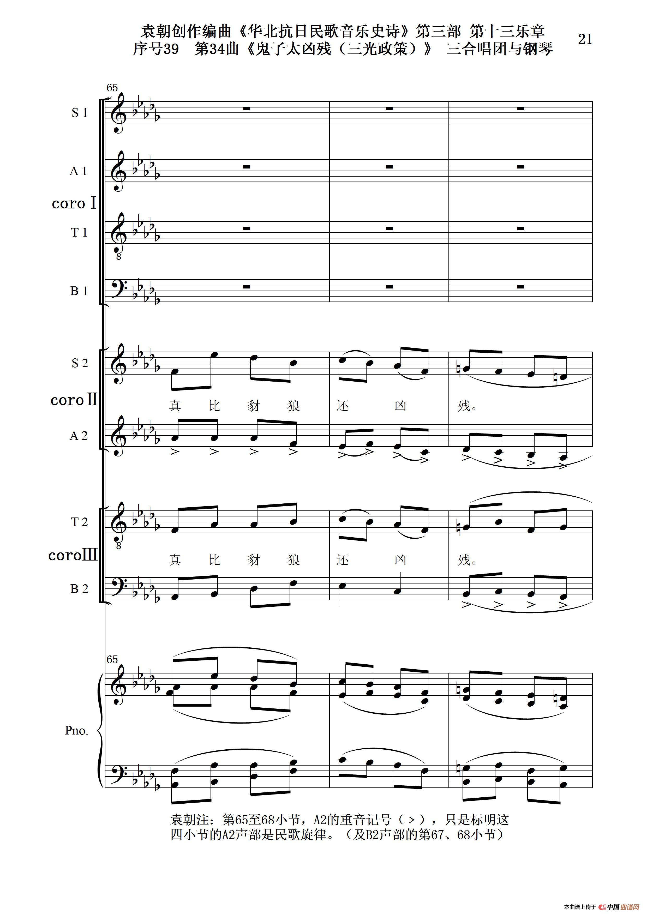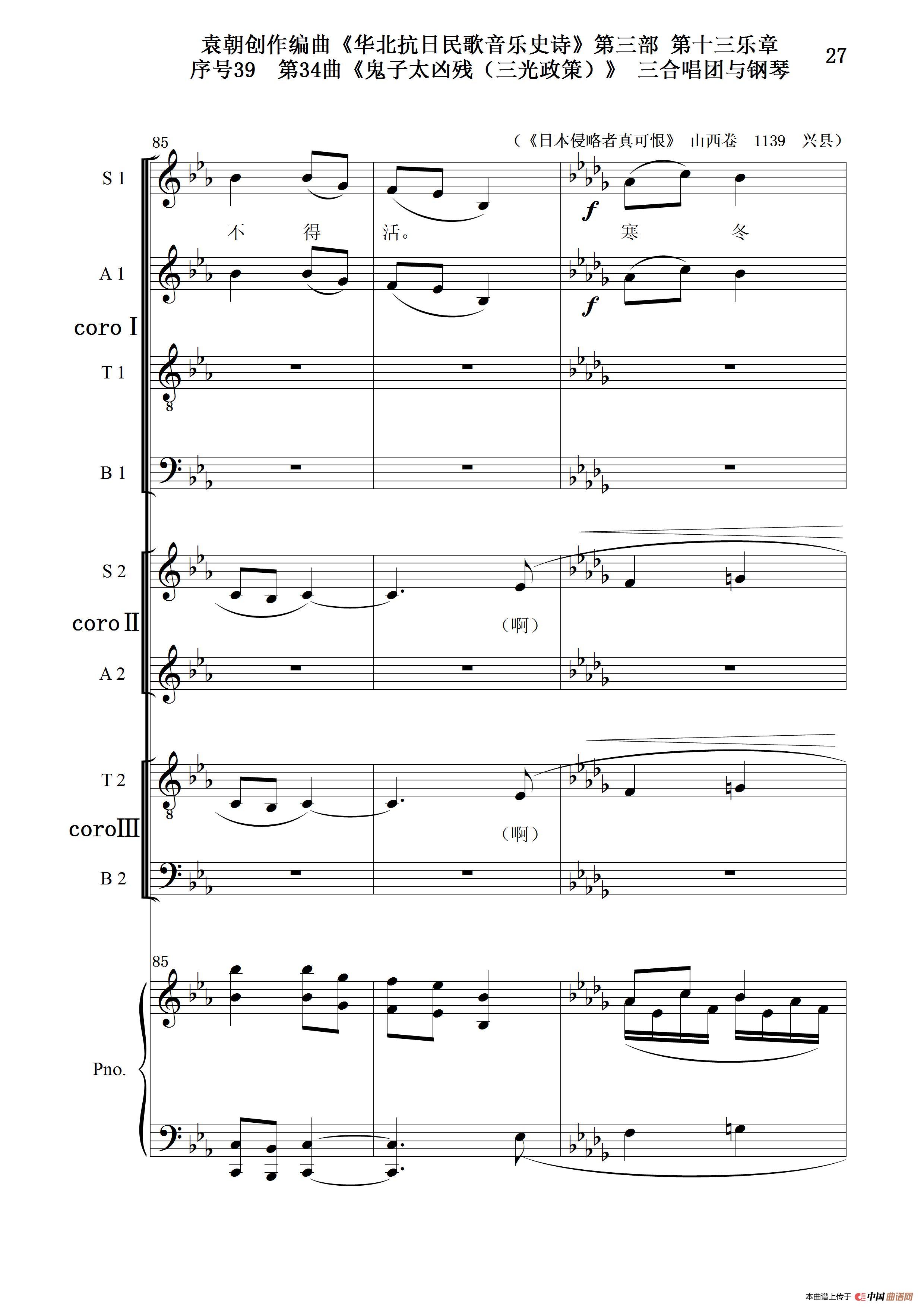 序号39第34曲《鬼子太凶残(三光政策)》三合唱团与钢琴